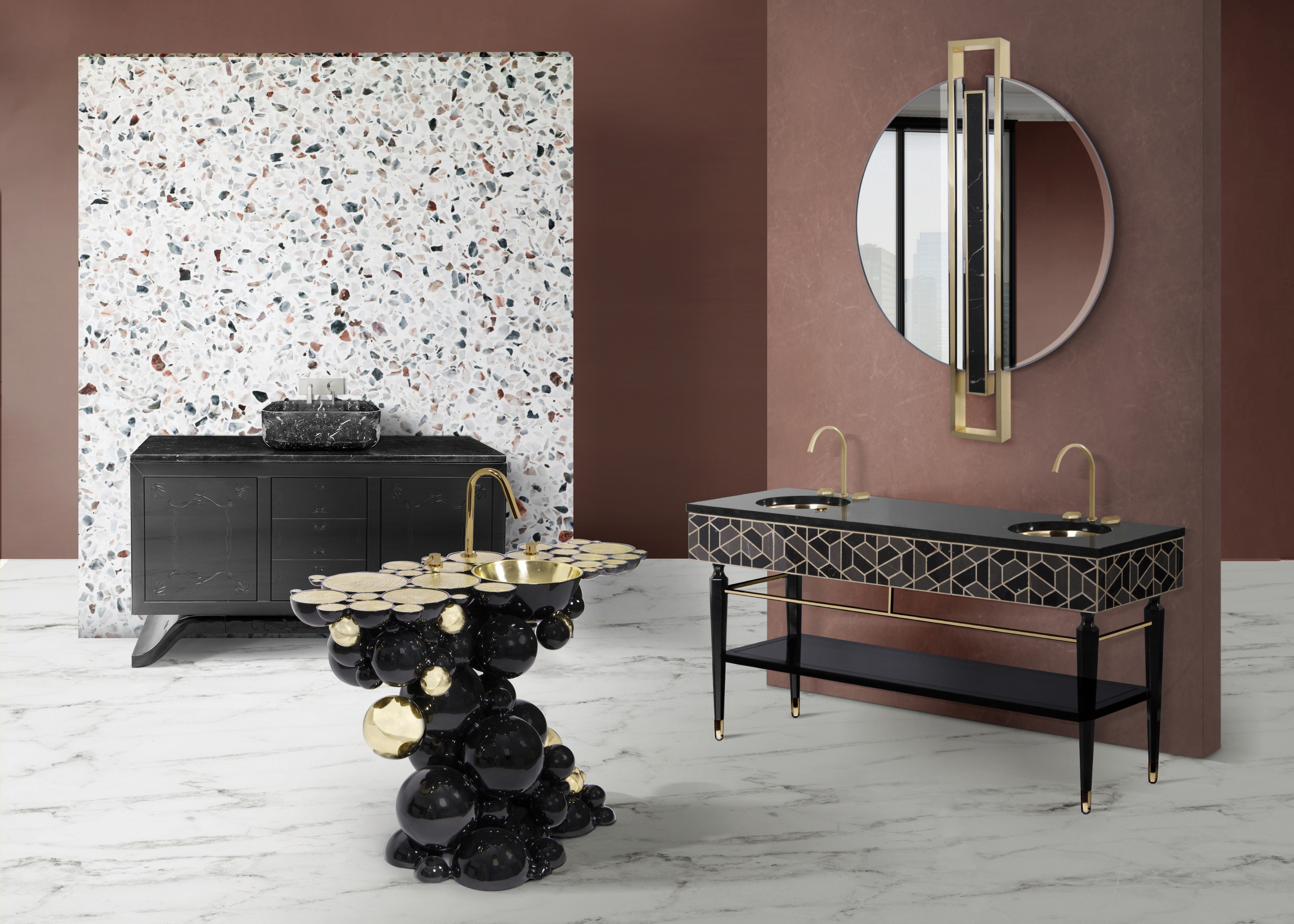 Maison Valentina represents a unique design concept in the luxury bathroom market. Made with pure love, our collection is capable of making your dreams come true. We can furnish your bathroom division with an exquisite selection of high-end bathtubs, washbasins, mirrors, lighting, and case goods made with the finest selection of materials like brass, marble, wood, glass blended with the extraordinary handwork technique of our artisans always connected to the contemporary design. We aim to offer you the same comfort and luxury that you can feel in other room divisions, keeping an exclusive and bold design.