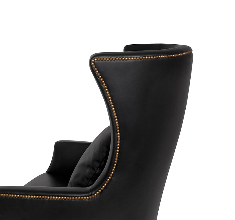 Dukono, one of Indonesia's most active volcanoes, boasts an unpredictable strength. While its darkness from the black leather resembles the solidified magma that turns into rock, the reddish tacks leave some traces of the last incandescent lava. The Dukono Armchair brings you nature through a strong but comforting experience for your bathroom interior.