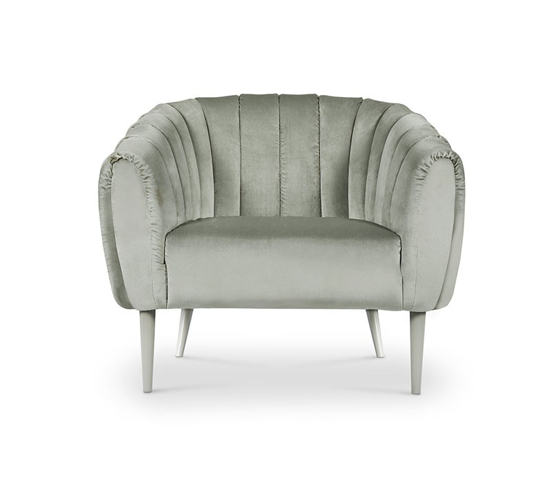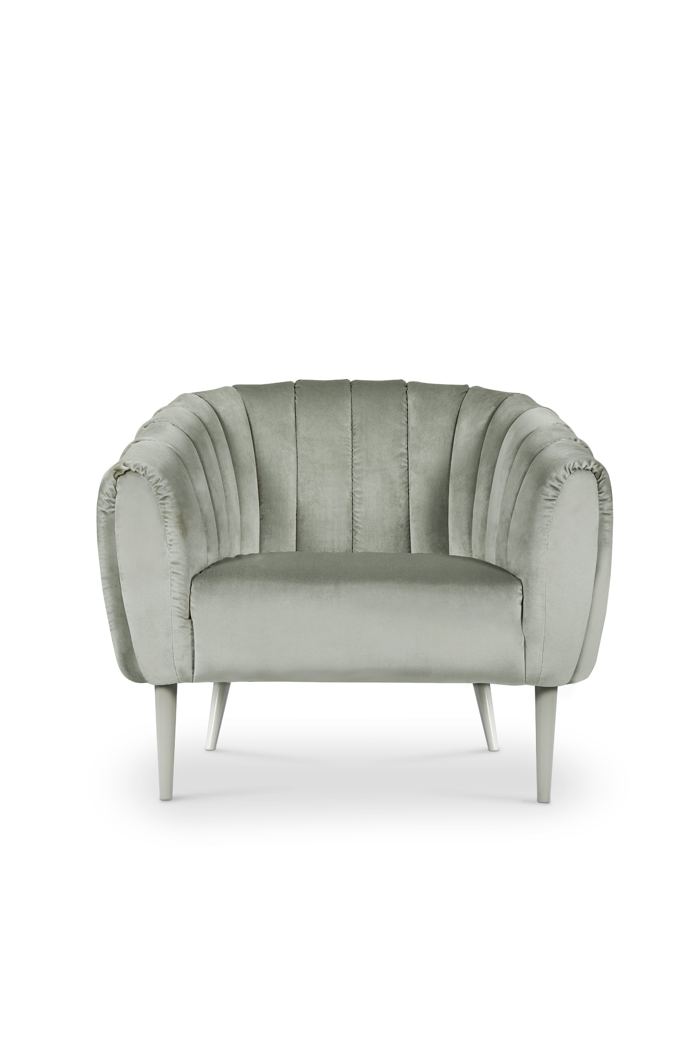 According to Greek mythology, Oreas is the God of the mountains. Oreas Armchair pays tribute to this grand and amazing mythological figure in luxurious fashion. Fully upholstered in soft grey velvet, this channel-tufted chair is the perfect addition to any modern closet or bathroom interior design.