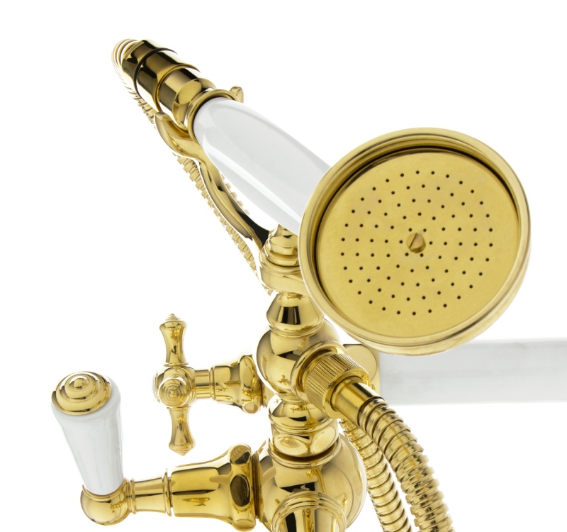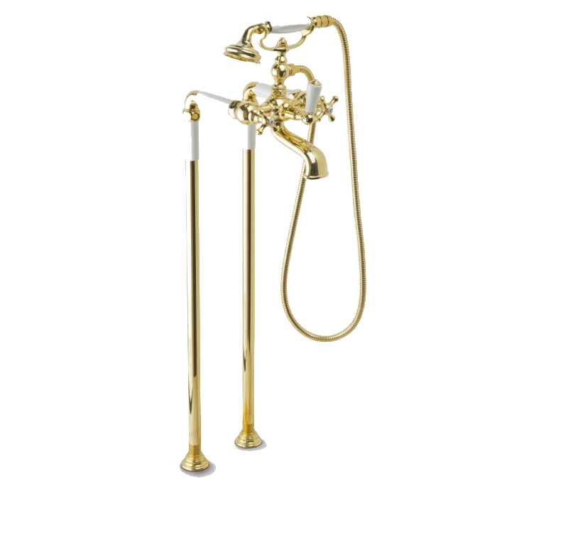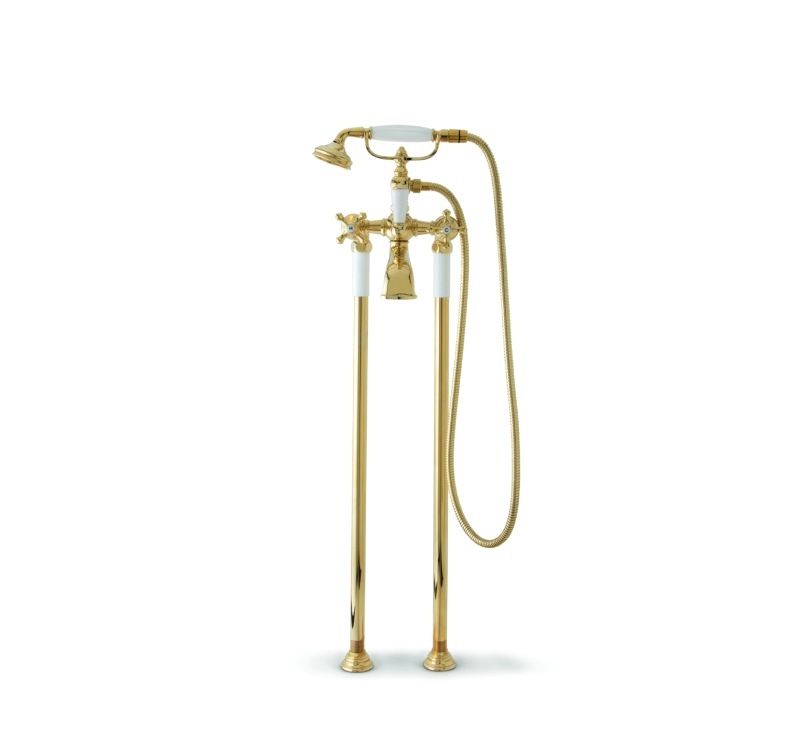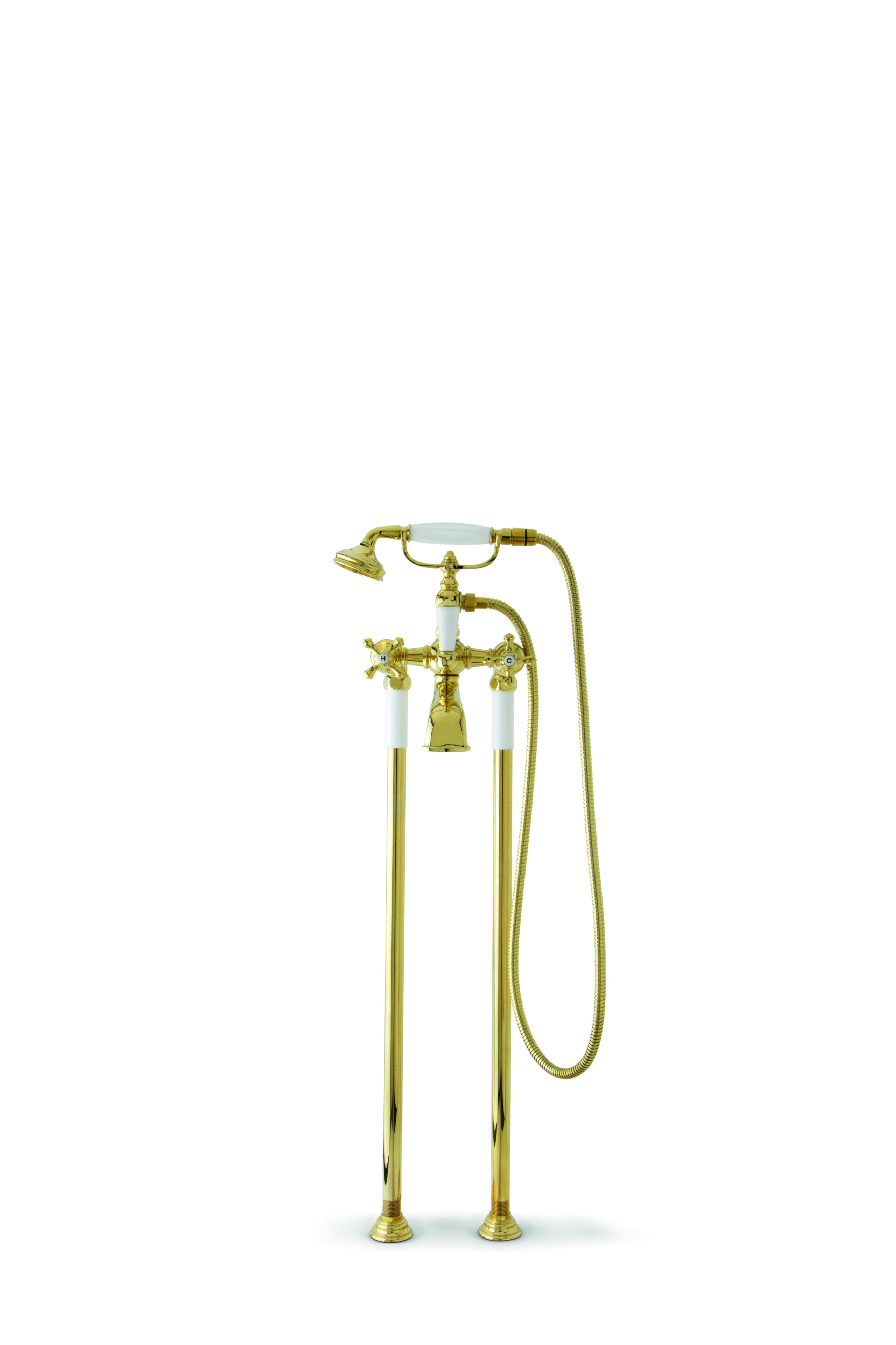 Victorian is a one of a kind bathroom tap with a hand shower included that stands for its classy look and ease of use. This floor bathroom tap is perfect for Free-Standing Tub’s that fill one's bathroom design with luxury. As being part of our ATO Collection, you can assemble our Bathroom Taps with one of our Vessel Sinks or Surfaces, choosing from many finishes to create a unique design.