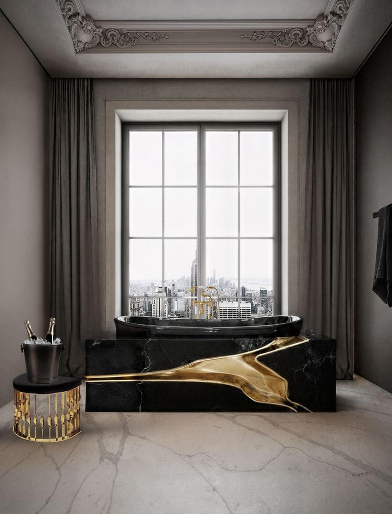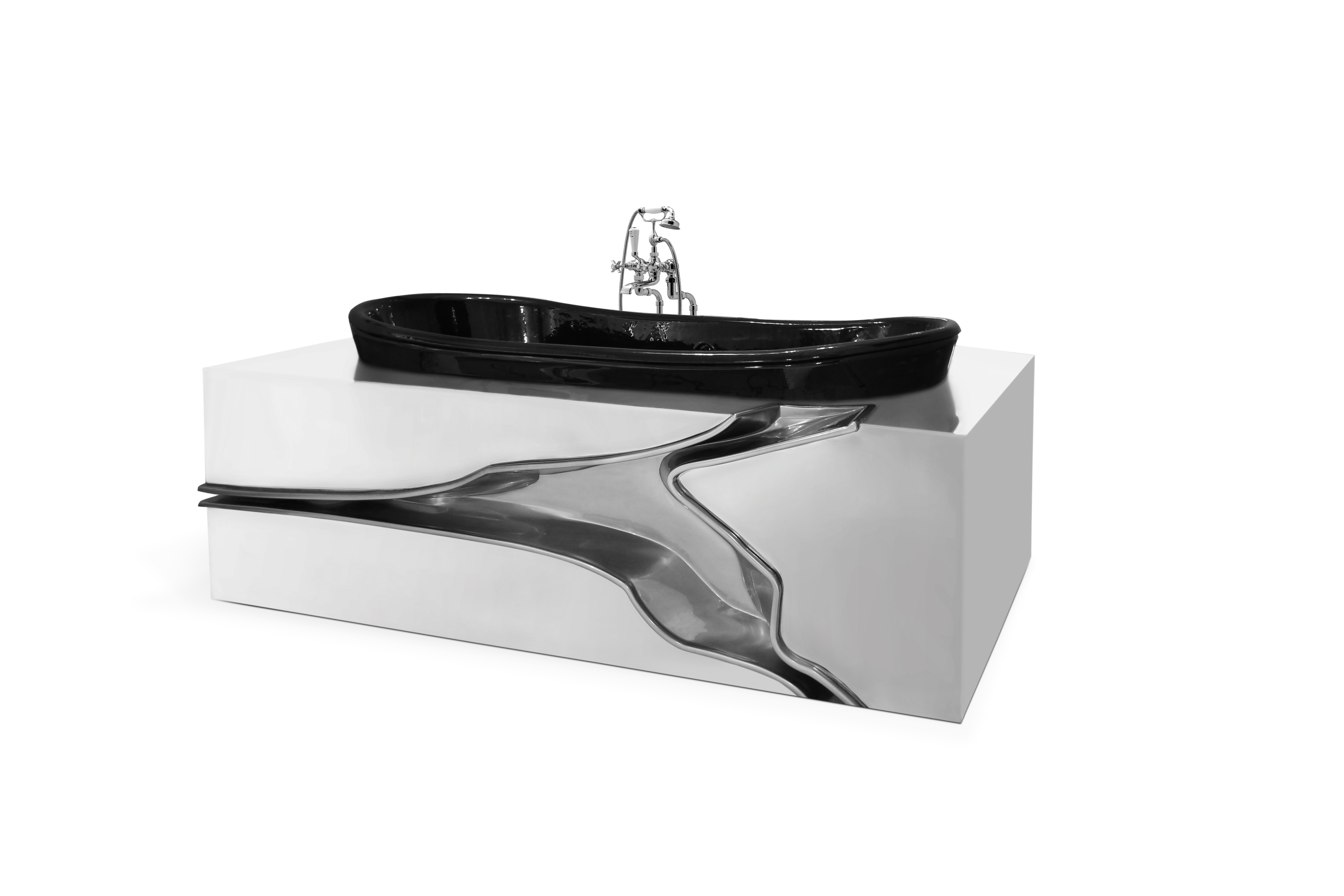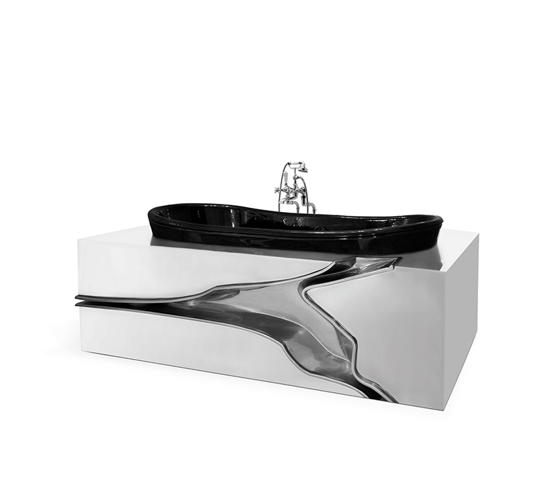 Lapiaz Bathtub is inspired in the typical karst formations produced by the dissolution of limestone rocks. This unique bathtub enhances glamorous and rich interiors with a gold-painted tear that contrast with the mirrored effect of the stainless steel. Definitely, a statement bathtub that stands out in any contemporary bathroom project.