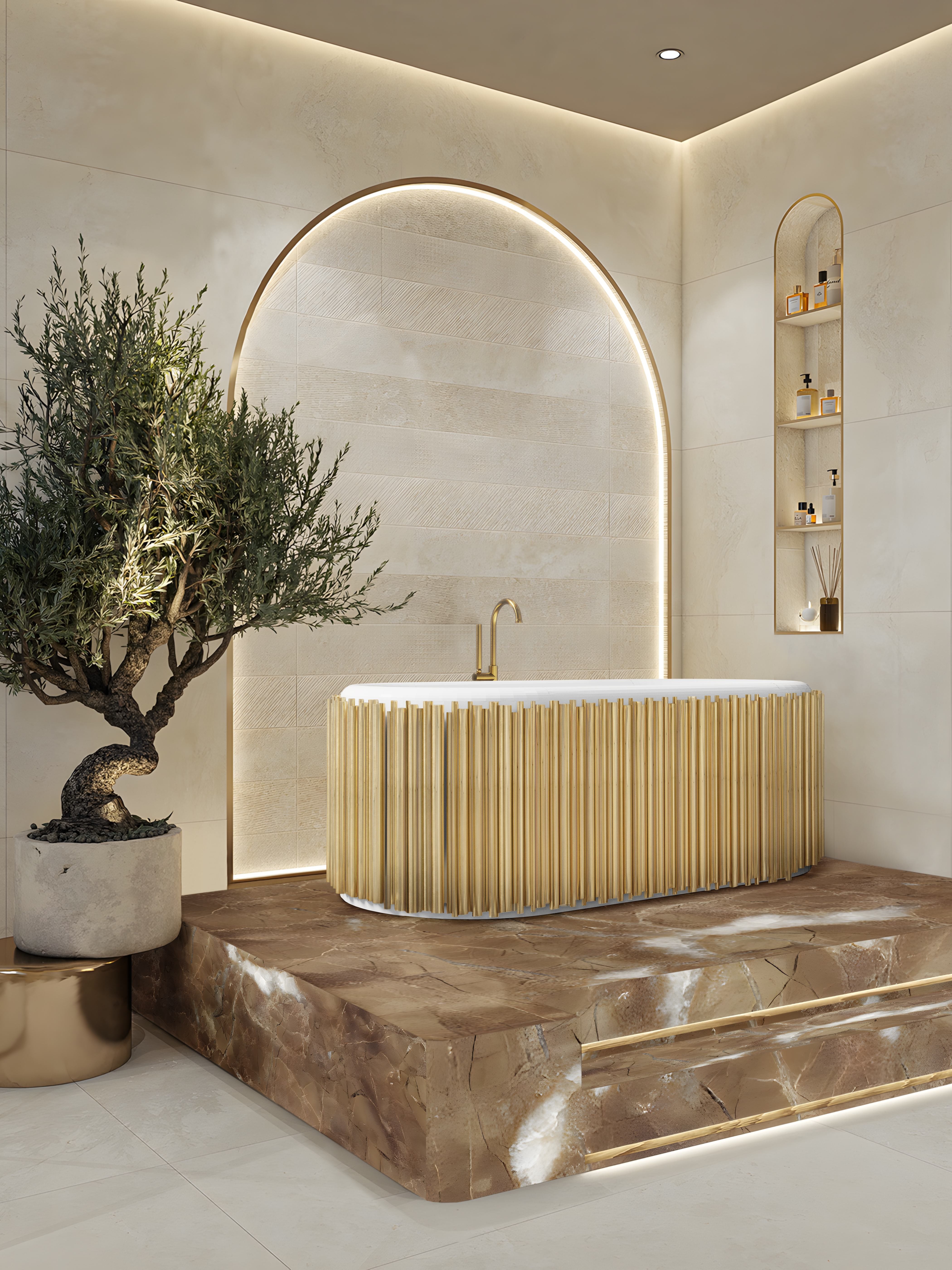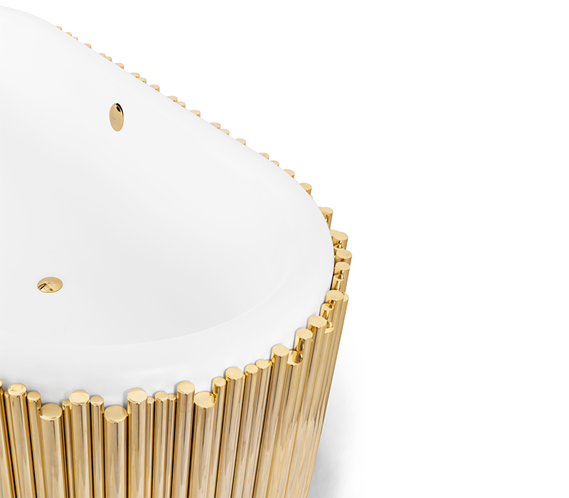 Maison Valentina created this wonderful bathtub to recreate the unique symphonies that generate strong relaxing feelings in all of us. The gold-plated brass tubes stand out in this oval-shaped design, giving it the elegant yet luxurious look you are searching for. The tub is finished with white enamel, giving it a clean look that is perfect for any luxury bathroom project.