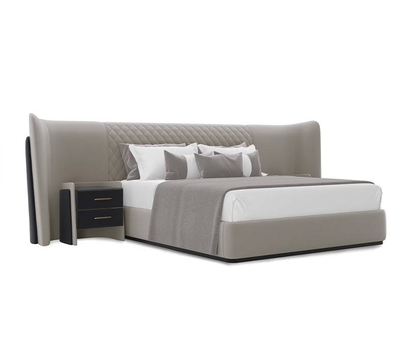 Create your private retreat with Charla XL Bed. Made with timeless lines and a modern twist, this unique design will be the focal point of your bedroom. Made with grey & black leather and manual expertise, this bed is an impressive statement with one of a kind details.