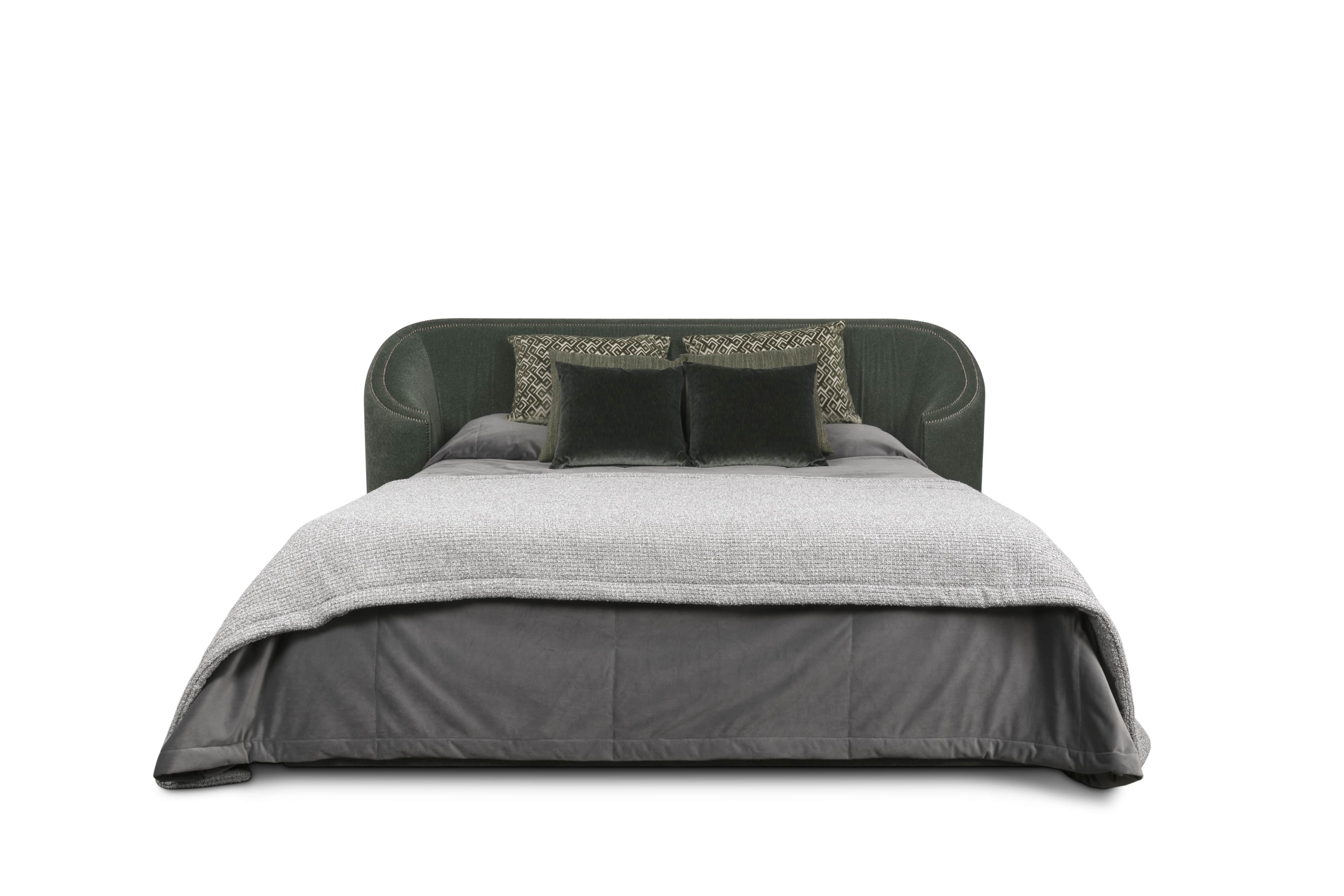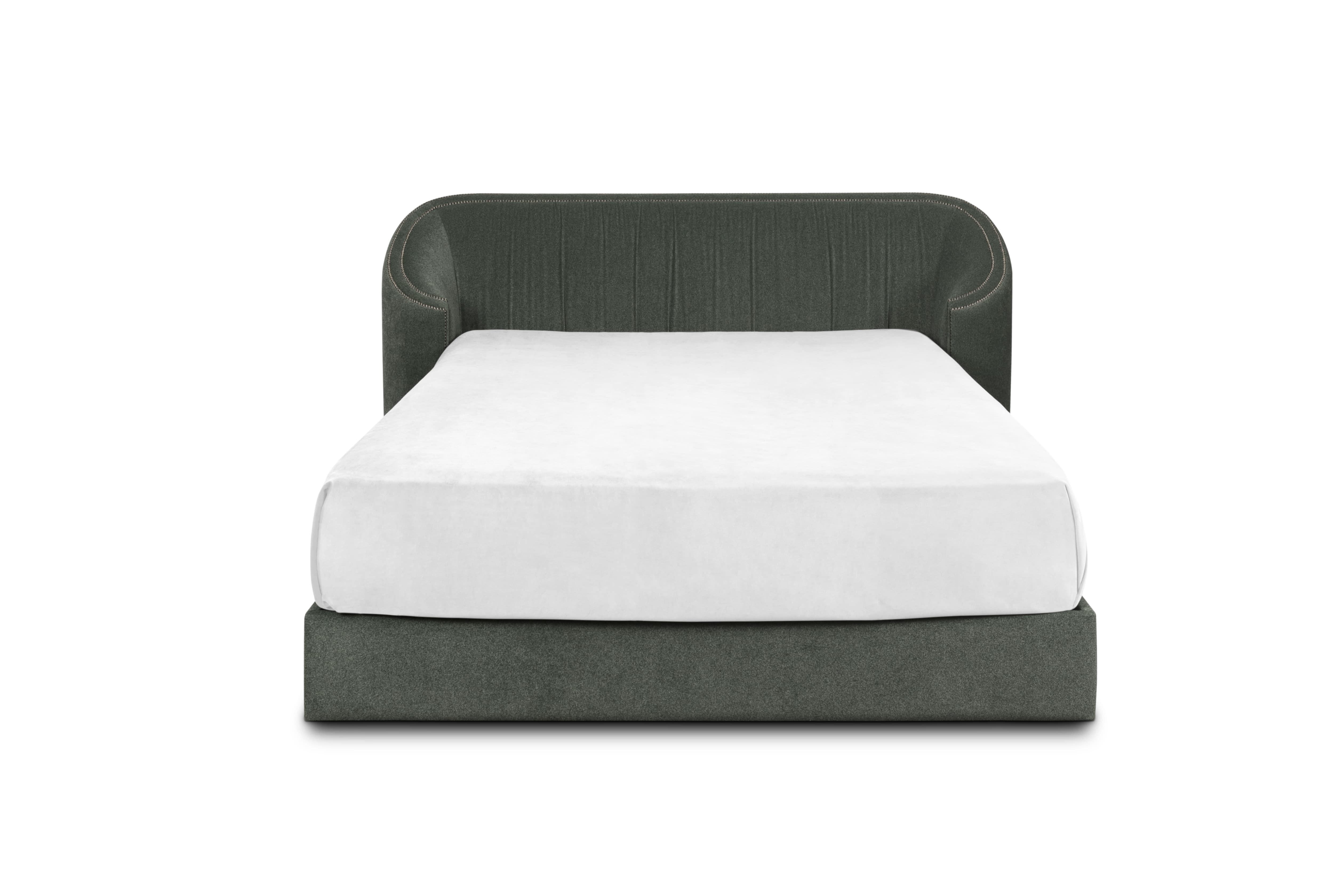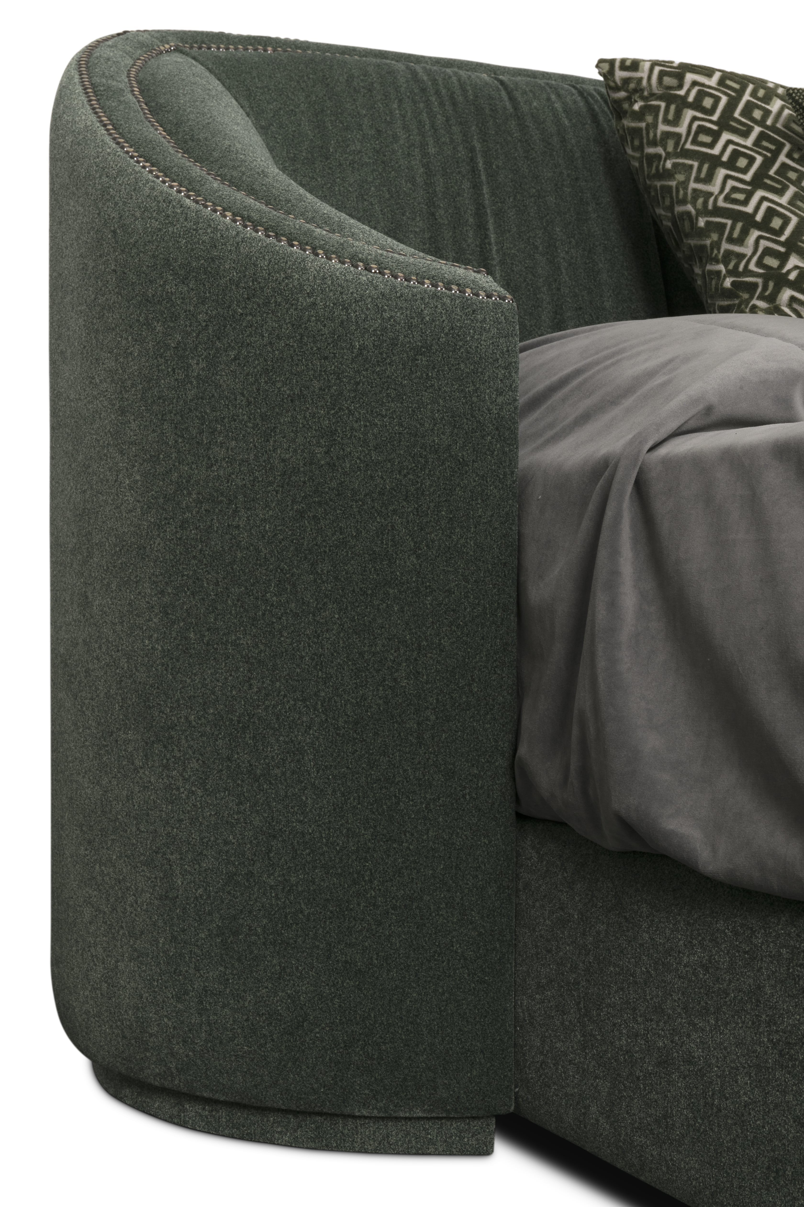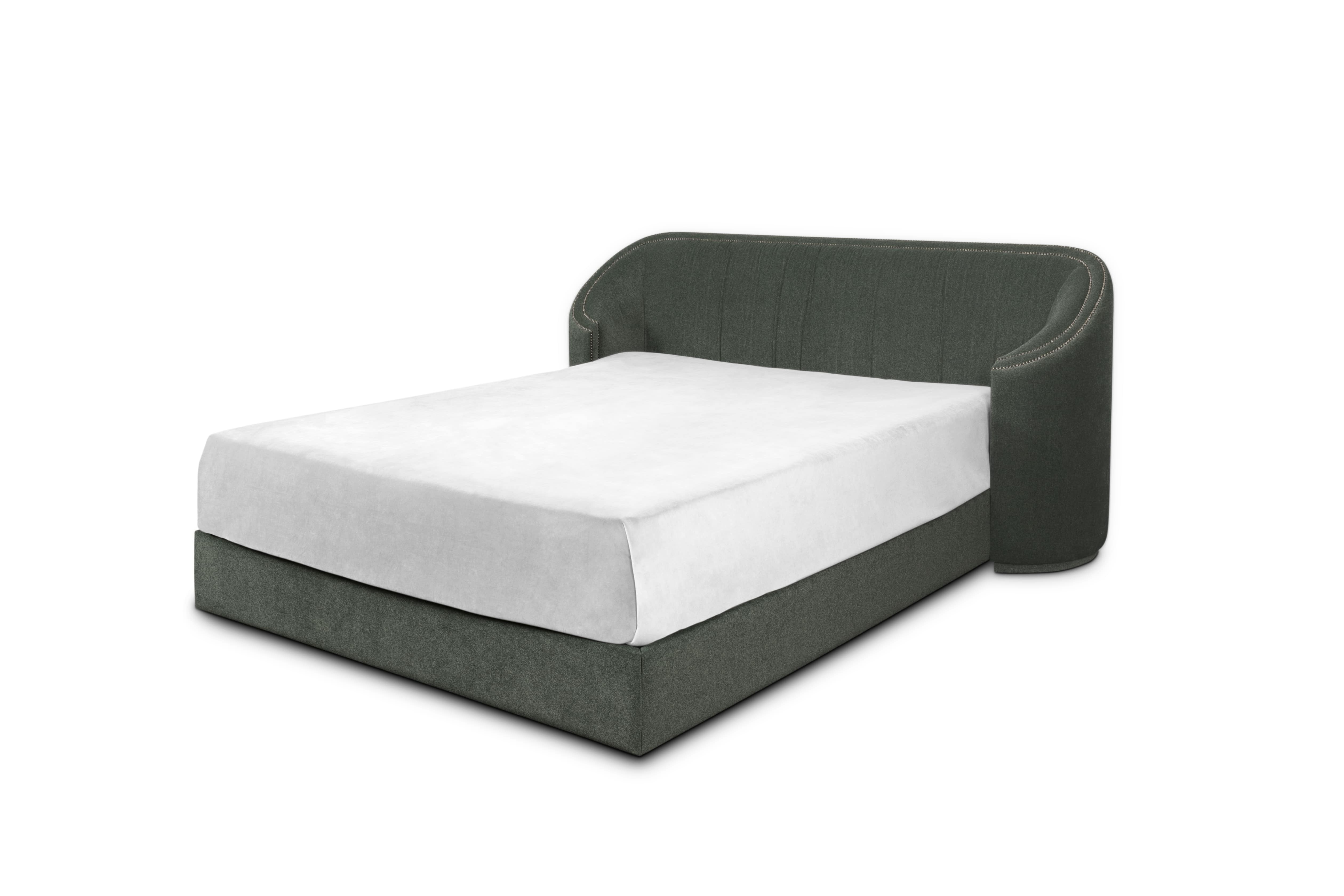 Often called the “Land of Castles”, Wales has some of the most impressive monuments of the Middle Ages. Wales Bed pays tribute to the country’s history. Fully upholstered in velvet and with nails on its headboard, this modern velvet bed brings comfort and luxury to any bedroom.