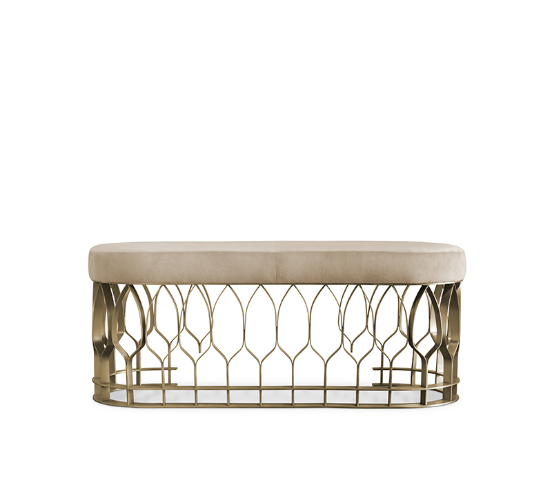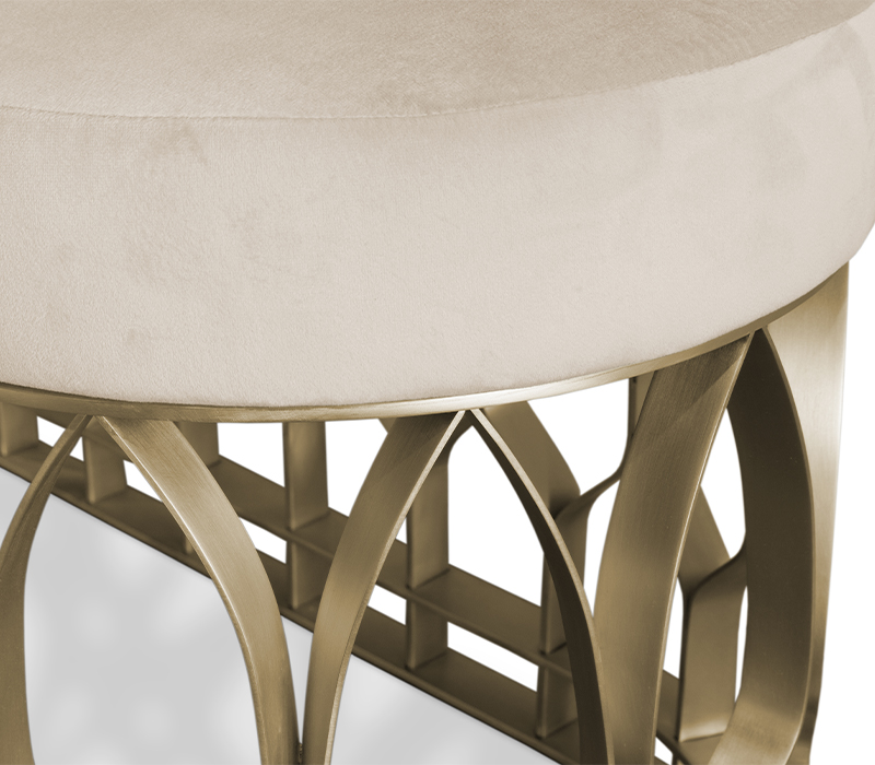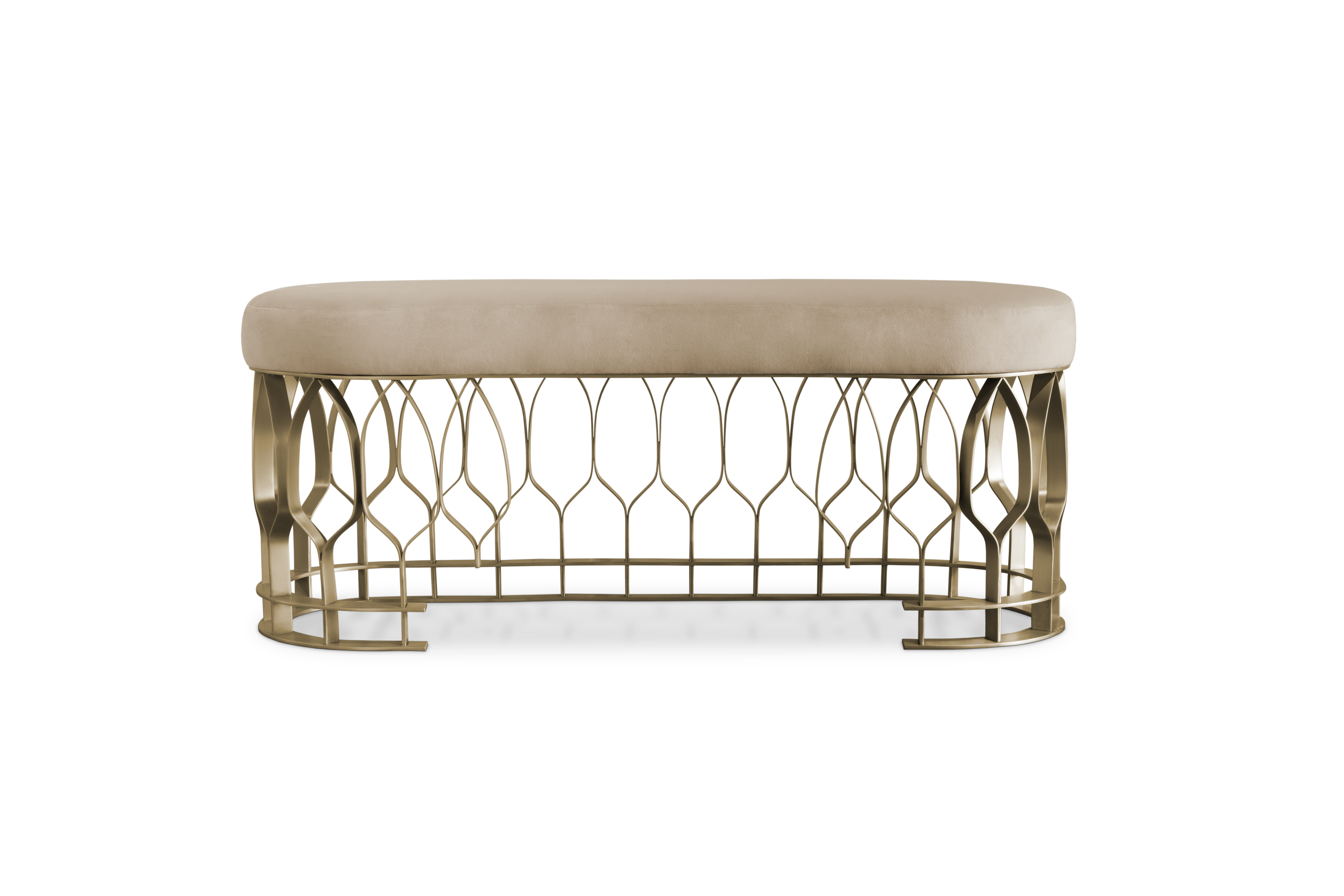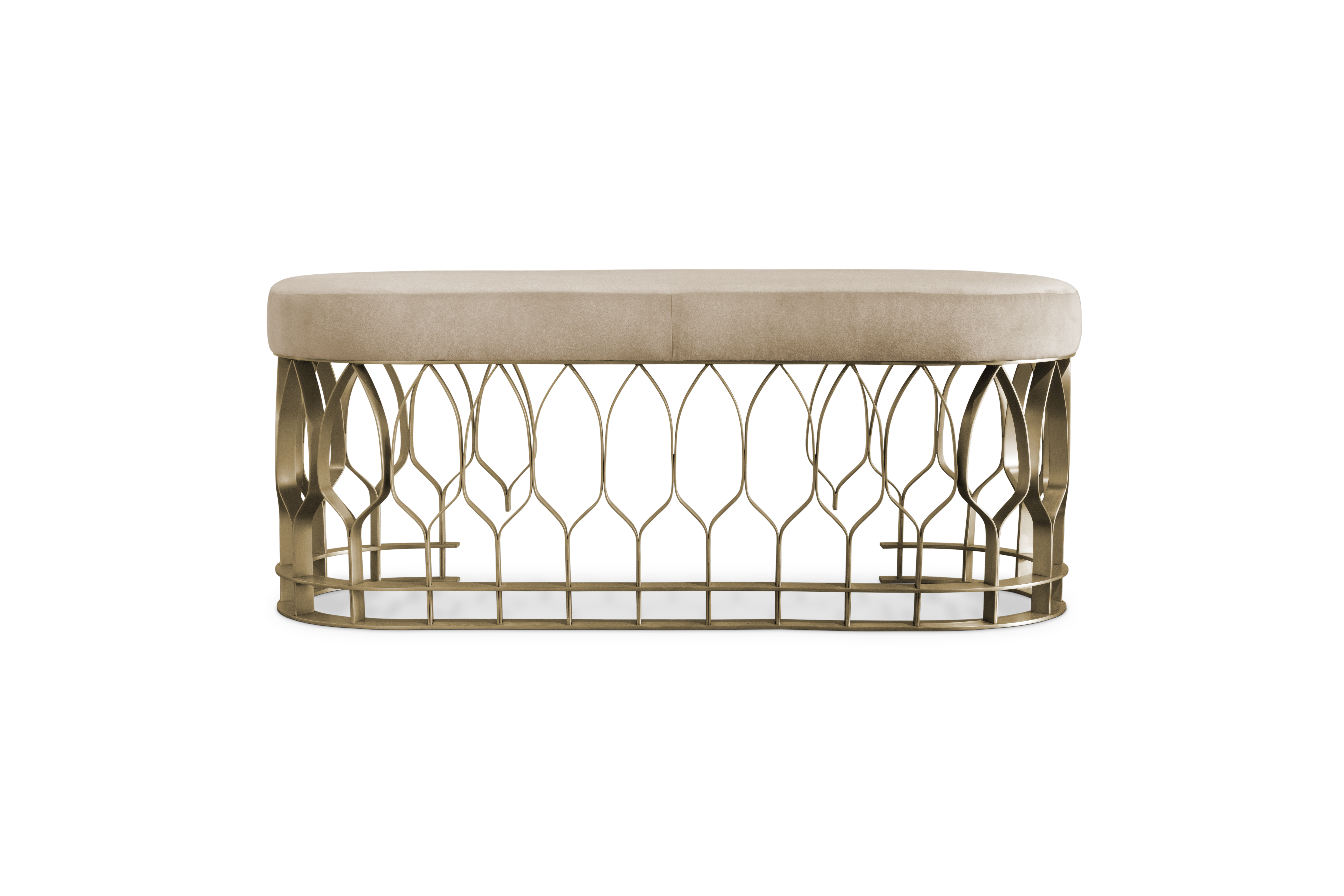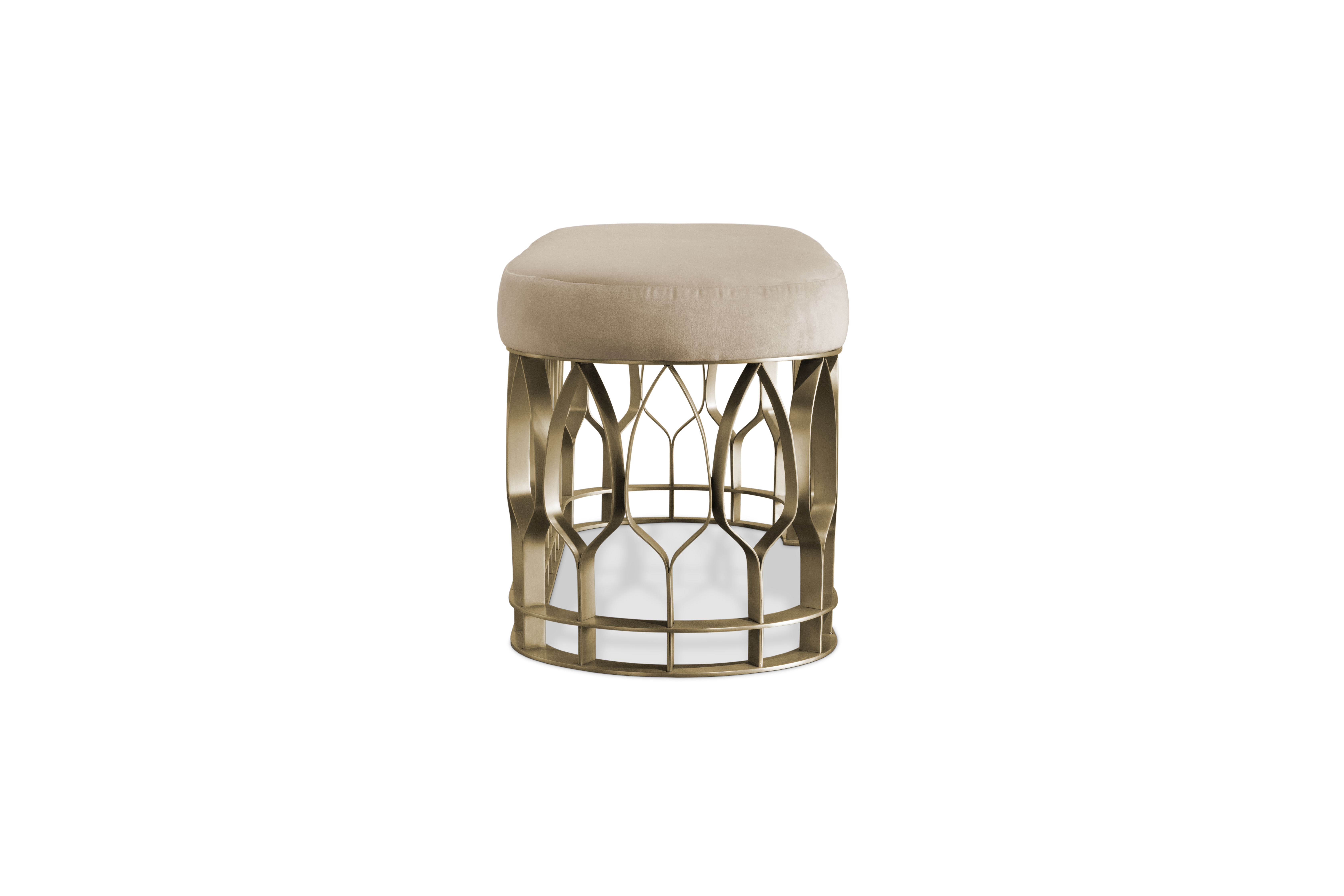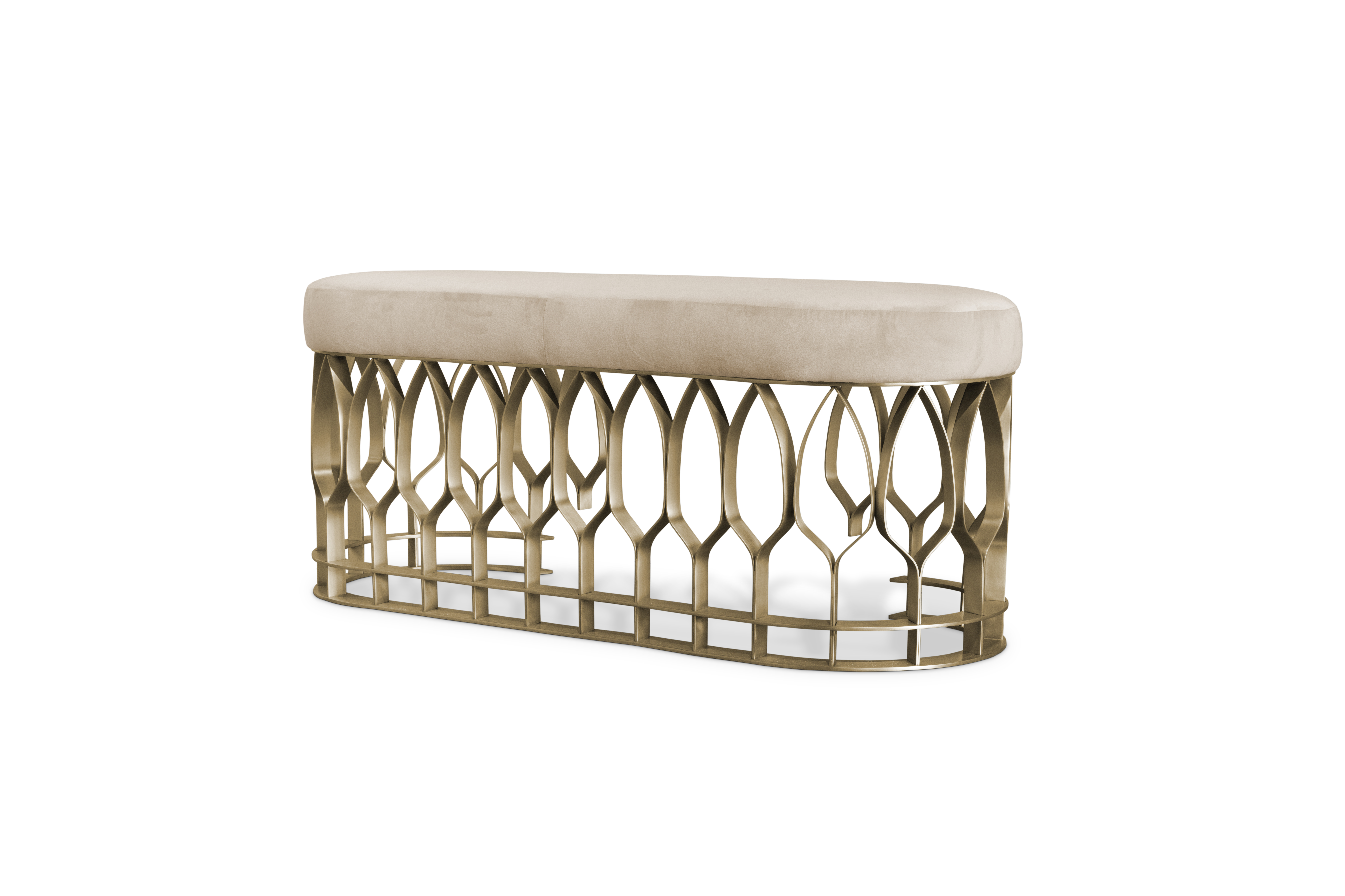Mosques are not only centers of spiritual worship but also stunning examples of architecture. Drawing inspiration from their grandeur, the Mecca Bench epitomizes opulent comfort and timeless design, aiming to redefine luxury seating. Its base features columns of brushed brass matte, mirroring the majestic architectural heritage of these sacred sites. This elegant foundation, crafted in the same style as all Mecca Collection pieces, ensures visual coherence and is topped with a sumptuous velvet cushion for ultimate comfort and luxury. Much like its source of inspiration, the Mecca Bench harmoniously blends tradition and modernity, creating a visual masterpiece that elevates any space.