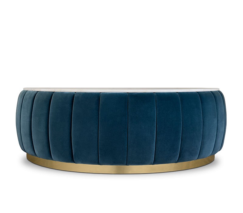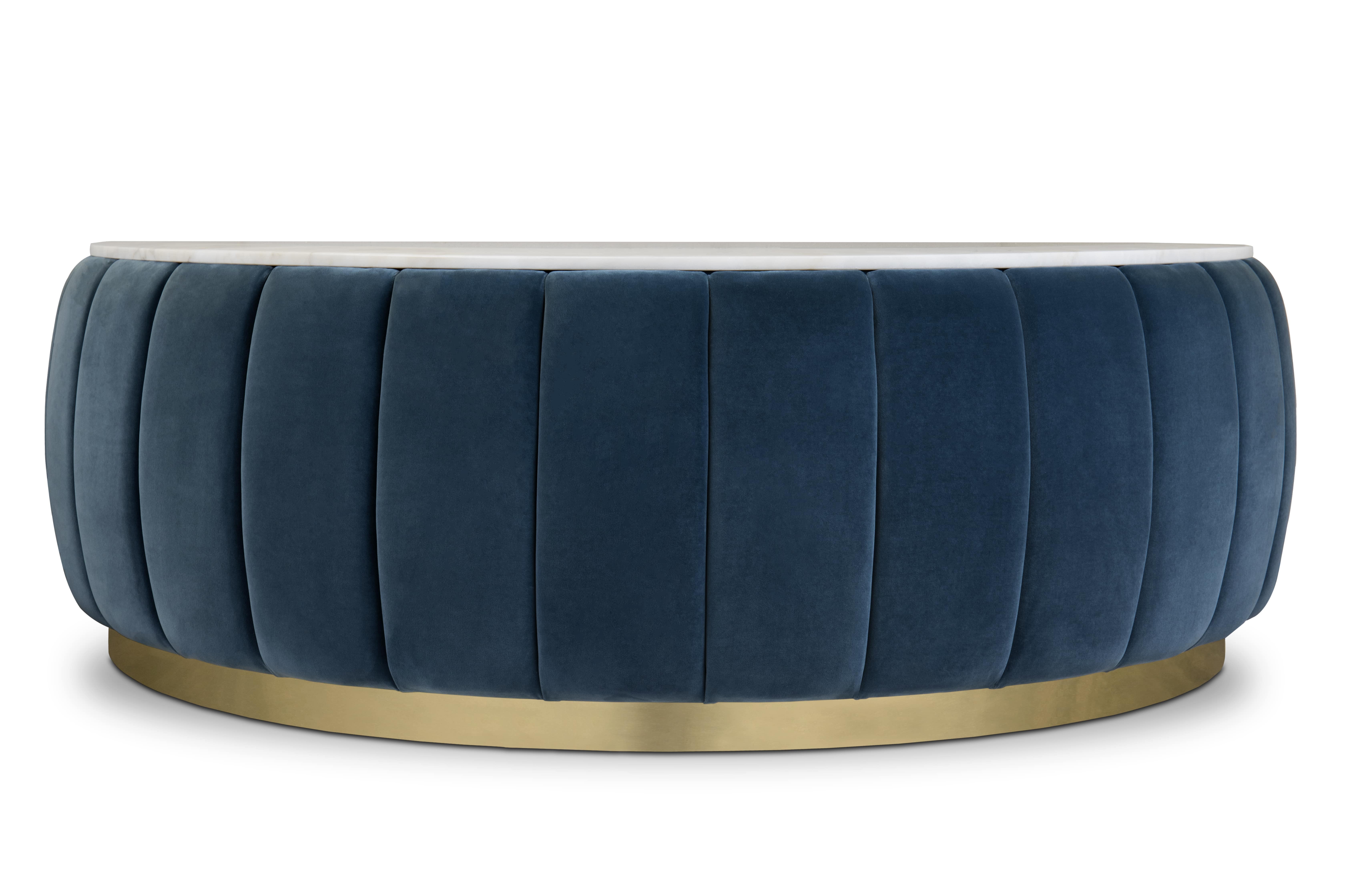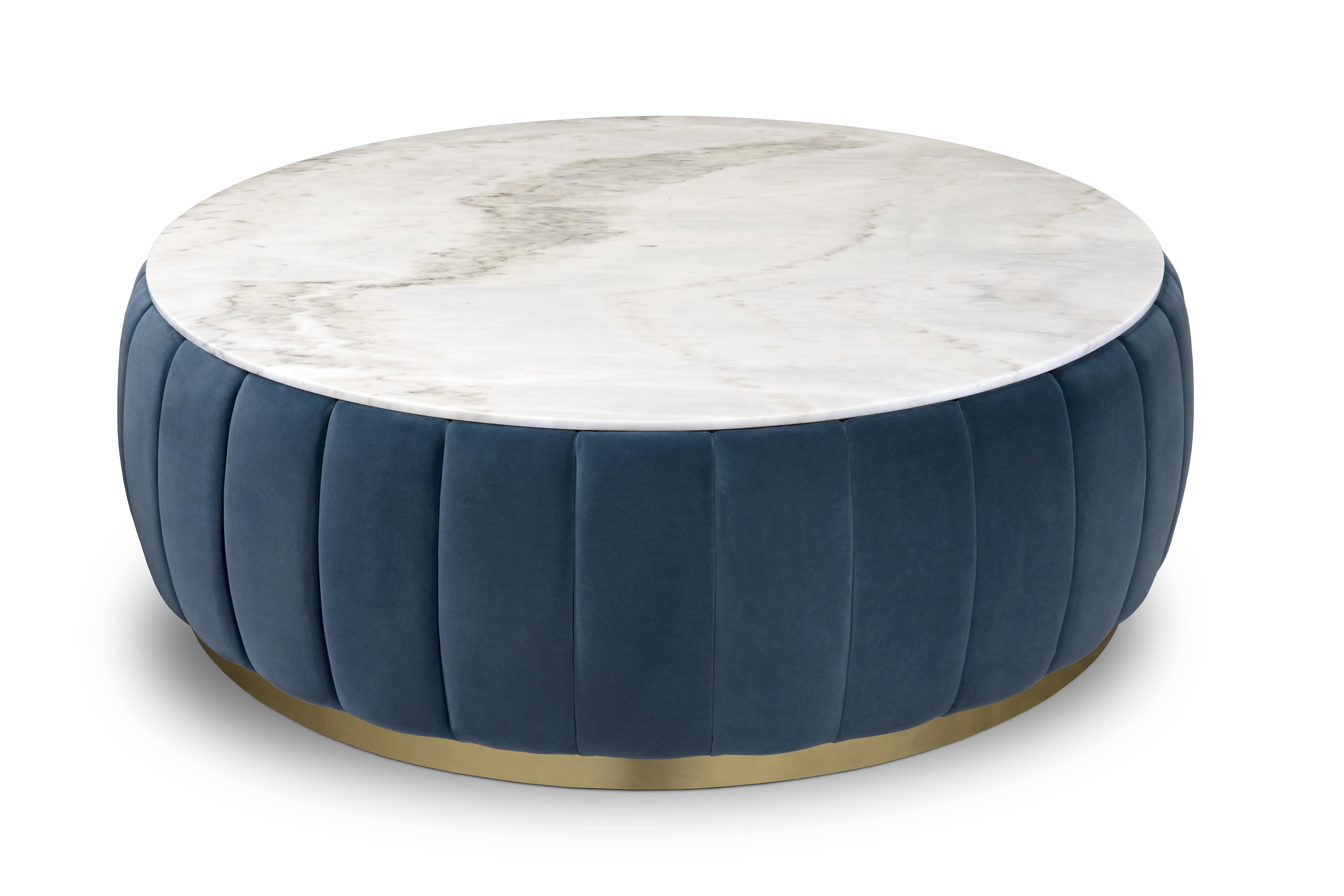 The Florence center table is the perfect choice to add some extra textural experiences to your interior design, thanks to its unique craftsmanship techniques. With a polished brass base, the structure of this unique mid-century modern piece is entirely made of wood and later upholstered in a beautiful high-quality fabric awarding an unusual yet sophisticated look to your home design.