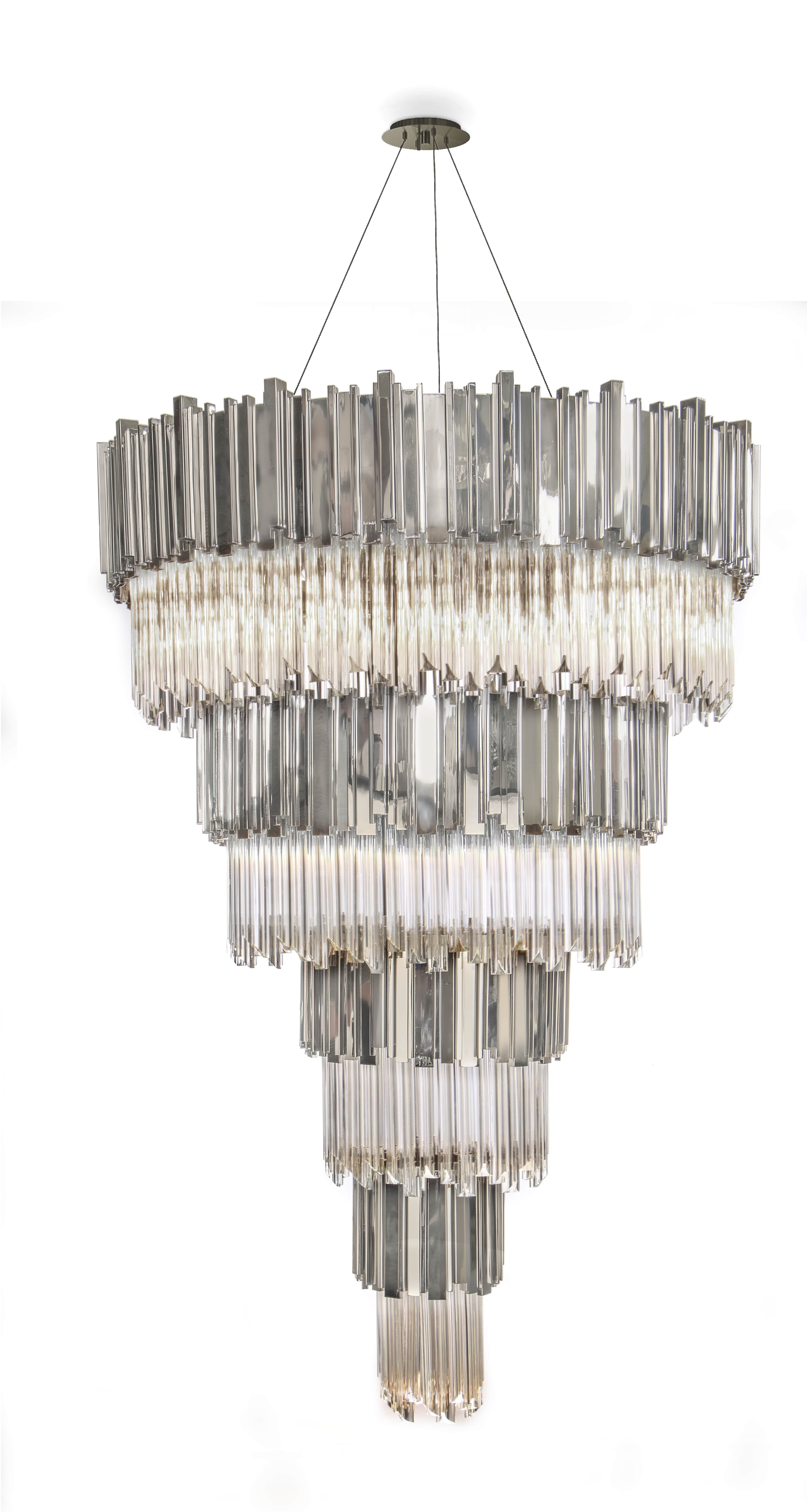 Our Empire Chandelier is inspired by the stunning architecture of The Empire State Building. It’s a masterpiece with an extravagant shape, capable of transforming every space into a stunning scenario. Due to its vigorous personality it creates an exclusive atmosphere.