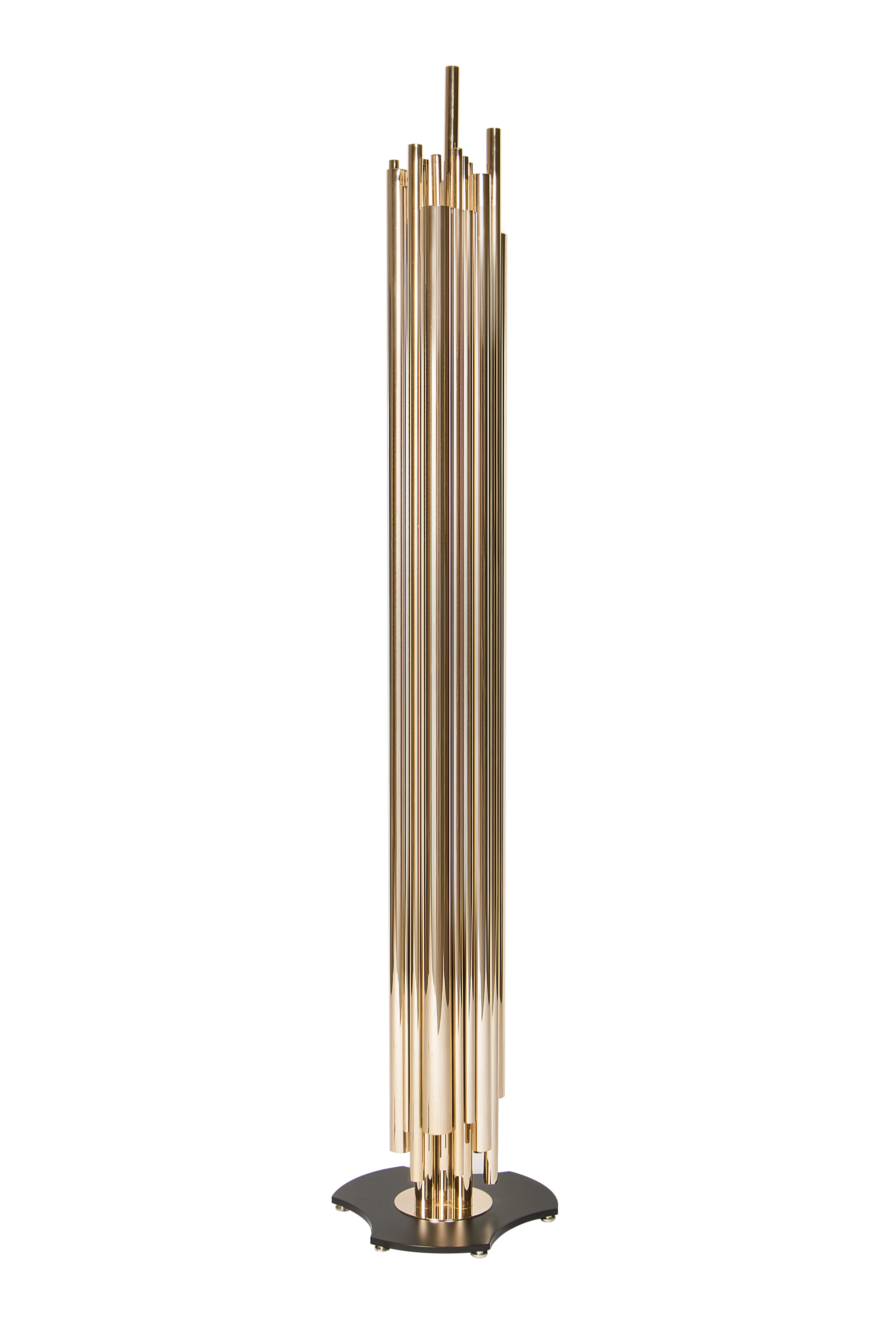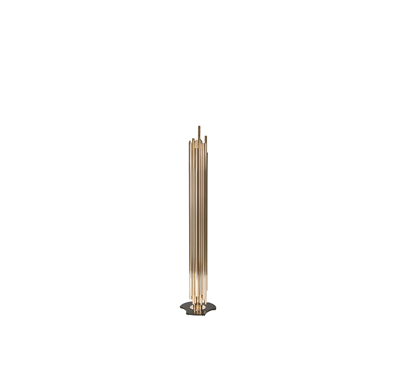 Dave Brubeck was the inspiration for one of DelightFULL’s more luxurious floor lamps. The art deco floor lamp represents in every single detail the way the jazz pianist musician blended very demanding rhythmic structures with improvisation in expressive and accessible ways. Therefore, in this lighting design, you can find asymmetrical gold plated tubes in order to attribute a contemporary lighting effect. However, you can customize this modern floor light, since it is available a wide range of finishes: gold, nickel or copper plated, brushed brass or nickel, aged brass or any RAL lacquered color of your choosing.