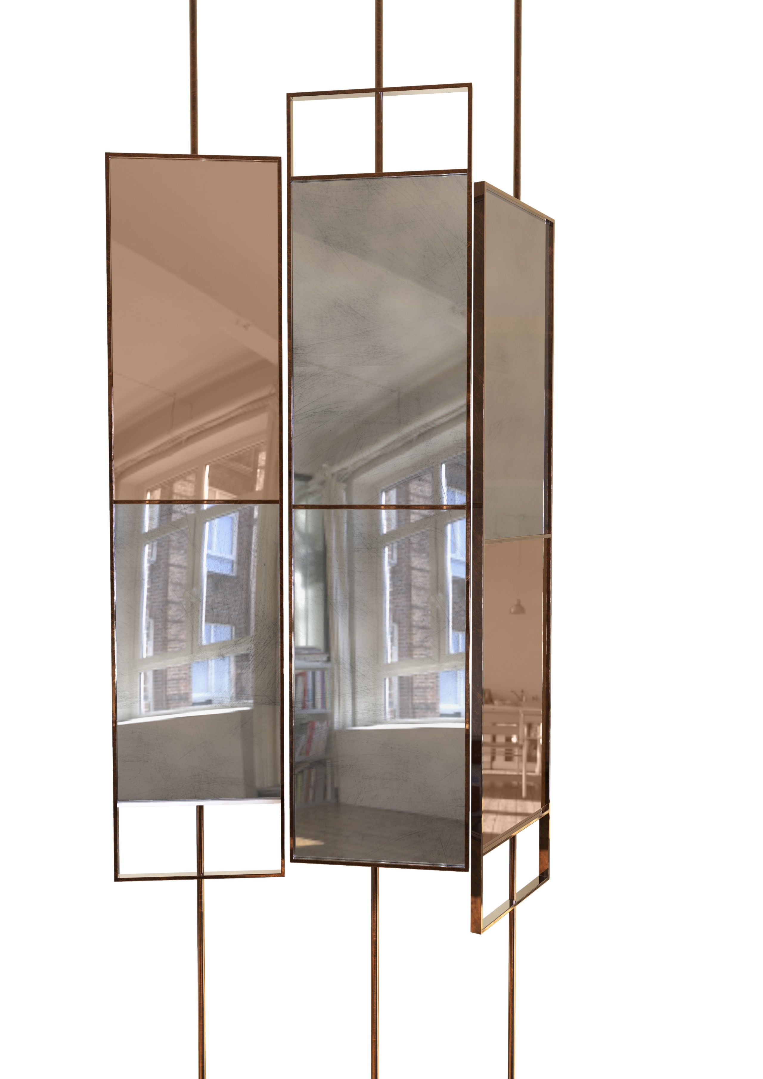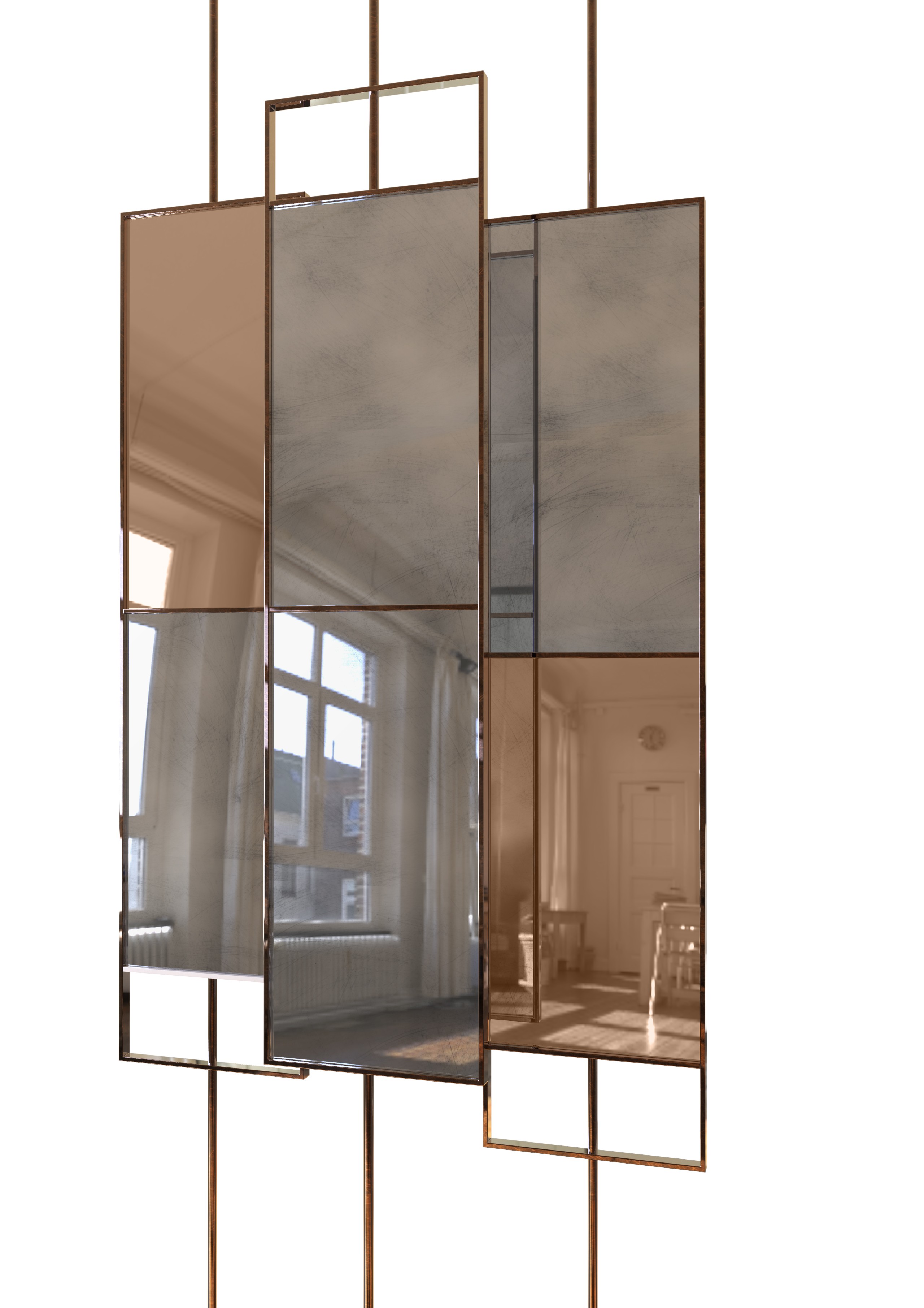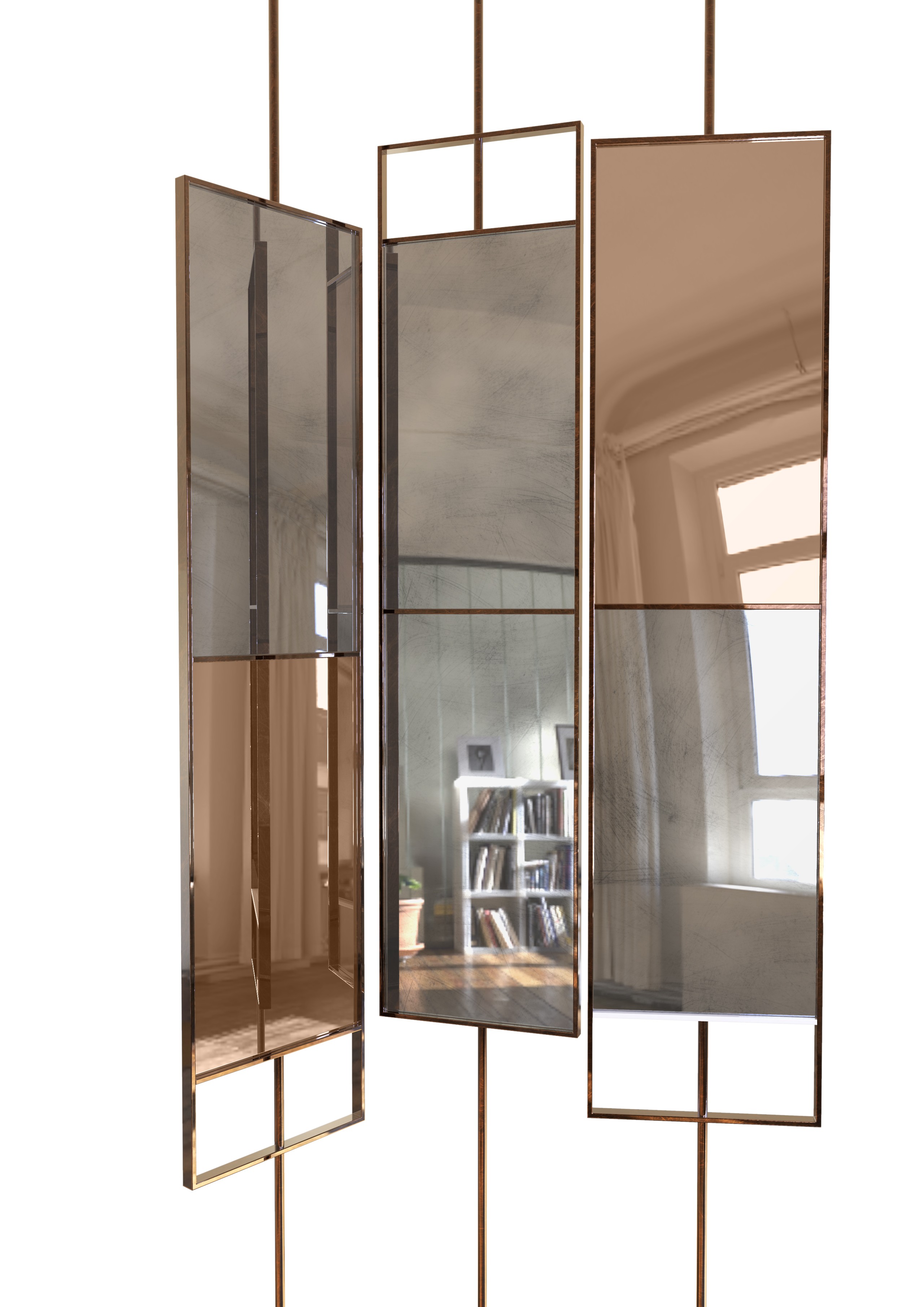 This tall mirror creates incredible luxurious and unique feelings of peacefulness in any bathroom design. It features balanced and clean designed mirrors on both sides, and adaptability with swivel panels for a different experience each time. Sharp straight lines for a modern appeal and bronze mirror finish for that subtle, yet pronounced, luxury.