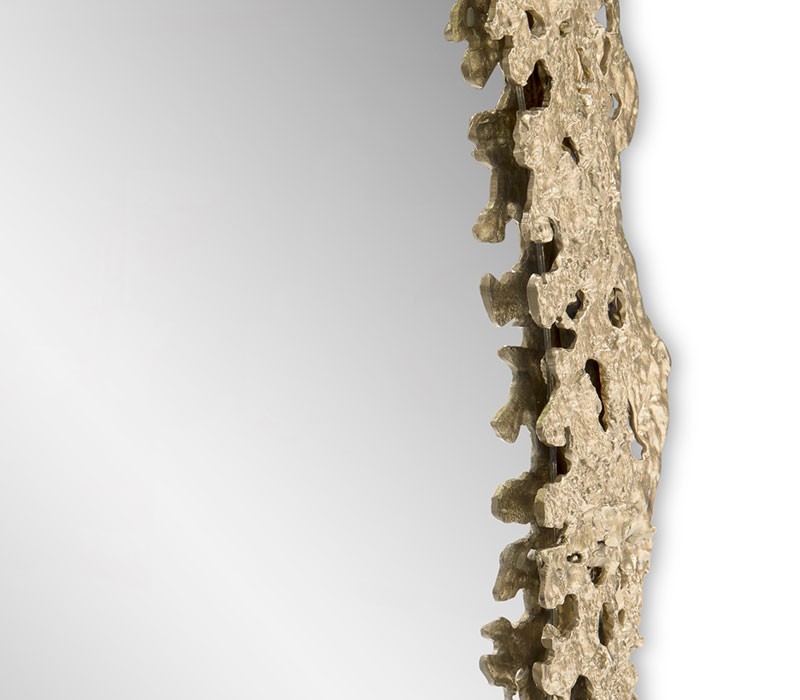 Nature in its rawest form flows through this charismatic furniture piece as lava flows from a volcano eruption. Moulded by casted brass and flat mirror, Cay round mirror embodies nature’s ultimate scream. Allow yourself to hear the call, feeling its strength and reflecting it into your urban lifestyle.