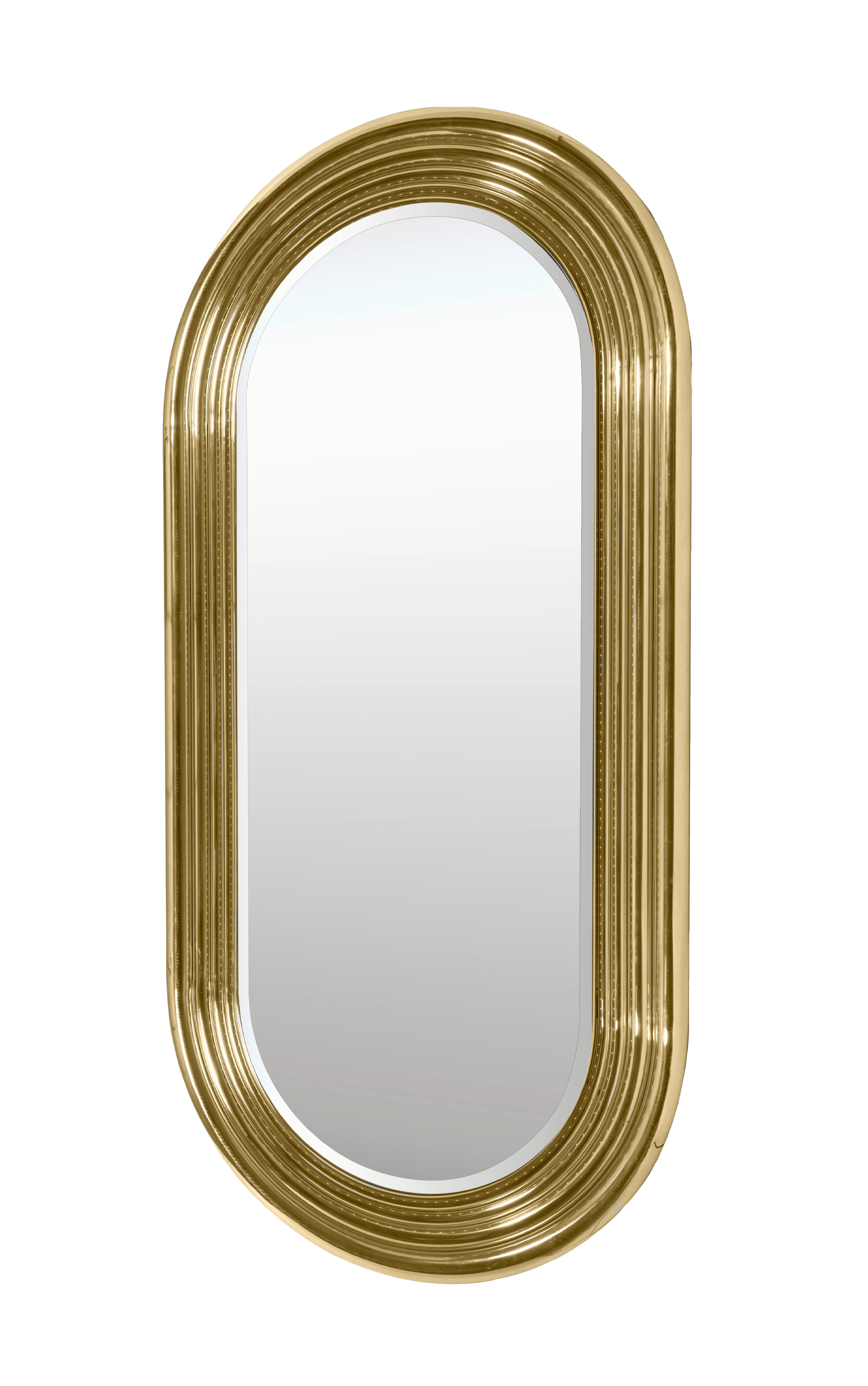 Colosseum is a rounded oblong mirror that was inspired in the most iconic buildings in Ancient Rome, because of its concentric shape and unique features and the grandeur of its nature. It features a wondrous frame produced in polished brass and accentuated by a unique LED strip around its entire body, providing intense glamorous for your bathroom interior design.