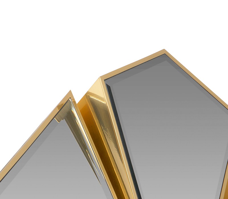 This intricate mirror with a gold frame is the perfect statement piece to adorn any wall, especially if it's your luxury bathroom wall! With its intricate design, this mirror is bound to leave all jaws on the floor with its amazing array of materials and its unique concept, having been made resemble a shattered mirror that has been glued back together with gold.