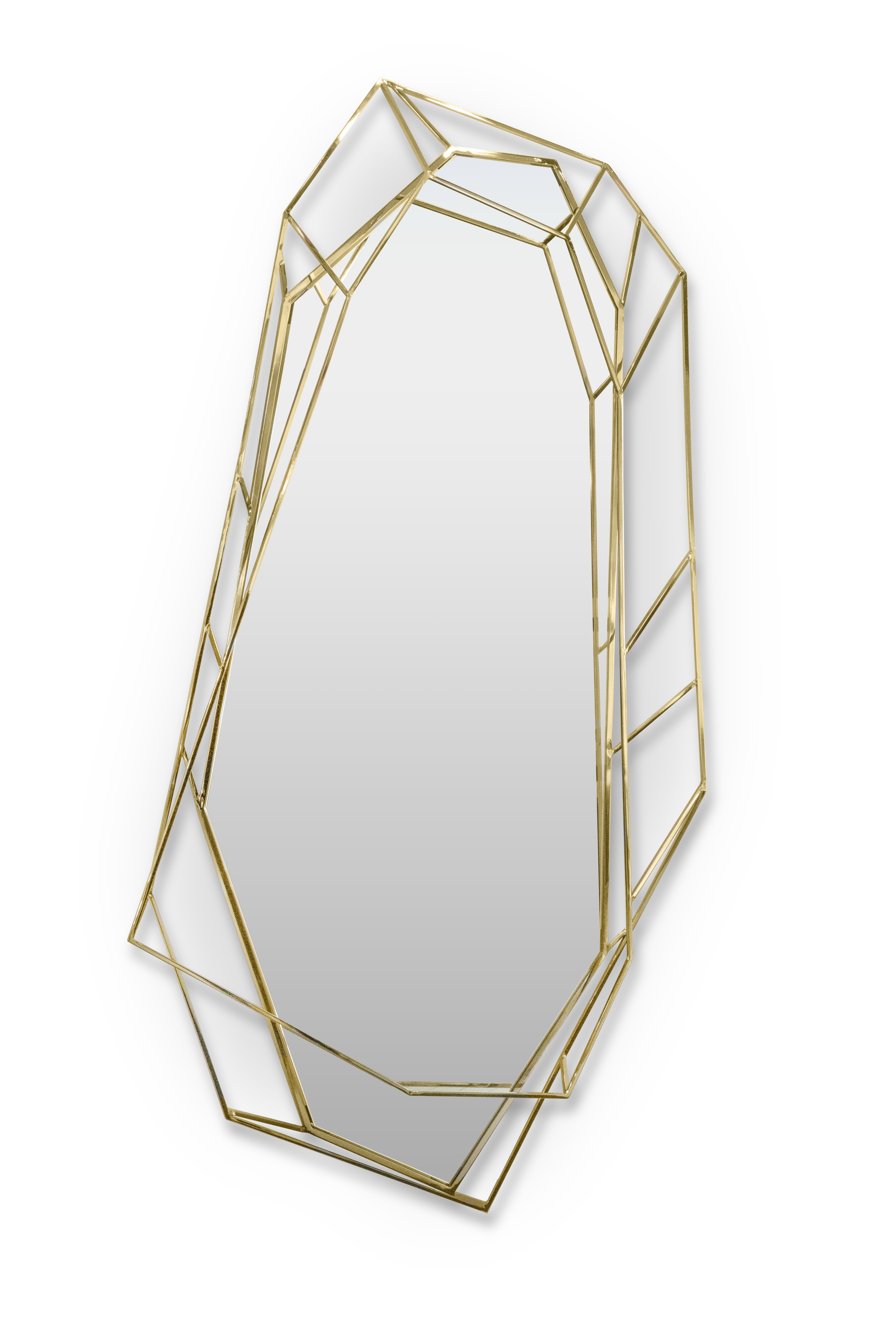 Crafted in a polished brass structure, the Diamond Big Mirror is produced to achieve a sleek design, merging geometry and design in the same object. Perfect for any lush bathroom set, this incredible item was made so that one can see it shine and elegance alongside a modern or contemporary design that will leave many jaws on the floor.