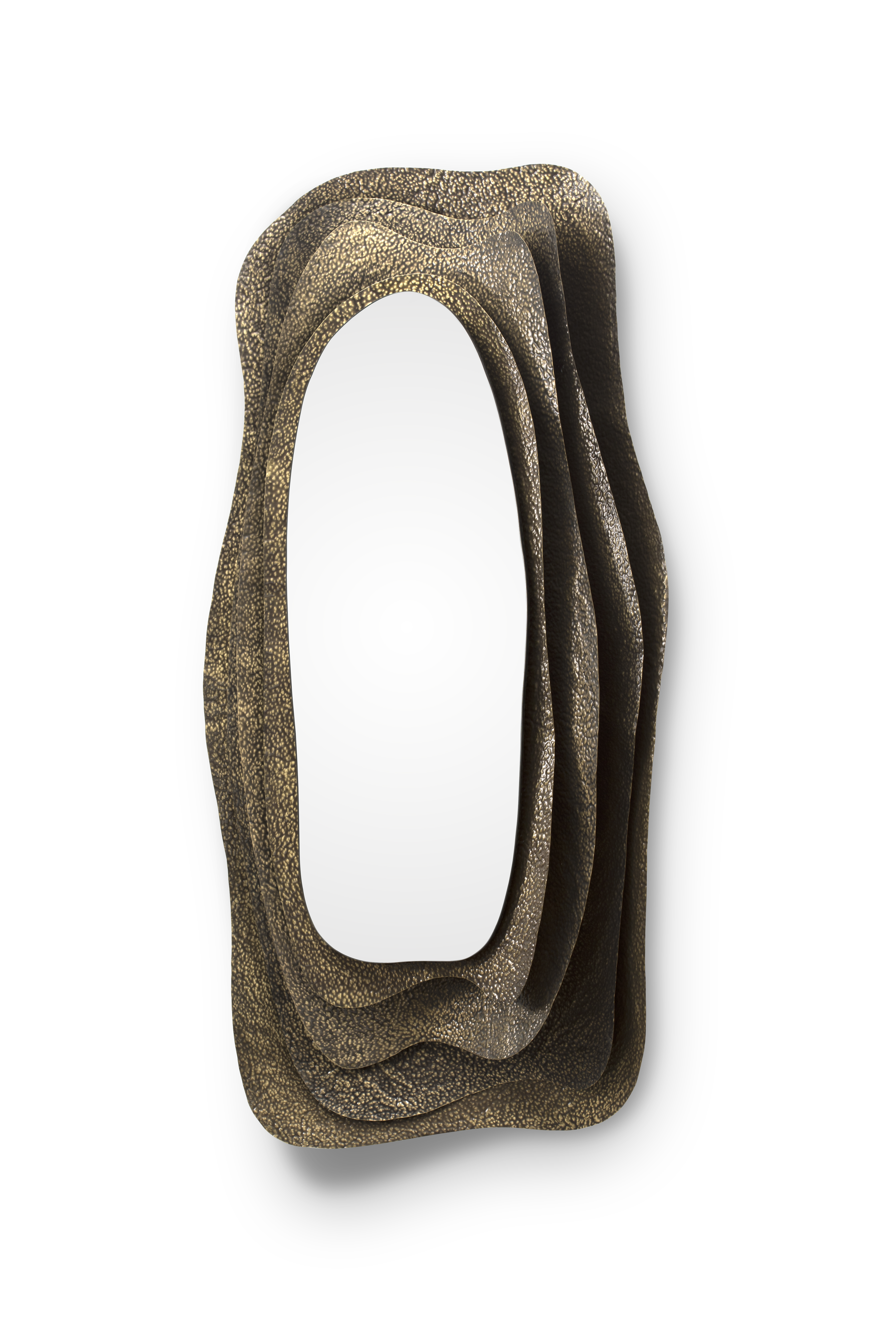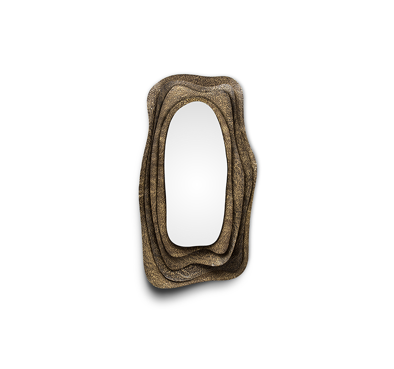 With origins in Japan, Kumi is an oyster with undeniable beauty. Kumi Mirror pays tribute to its allure through its glossy hammered aged brass, proving functionality and beauty can perfectly coexist. This decorative wall mirror is a treasure coveted by many and the most amazing and unique item to improve your home bathroom design.