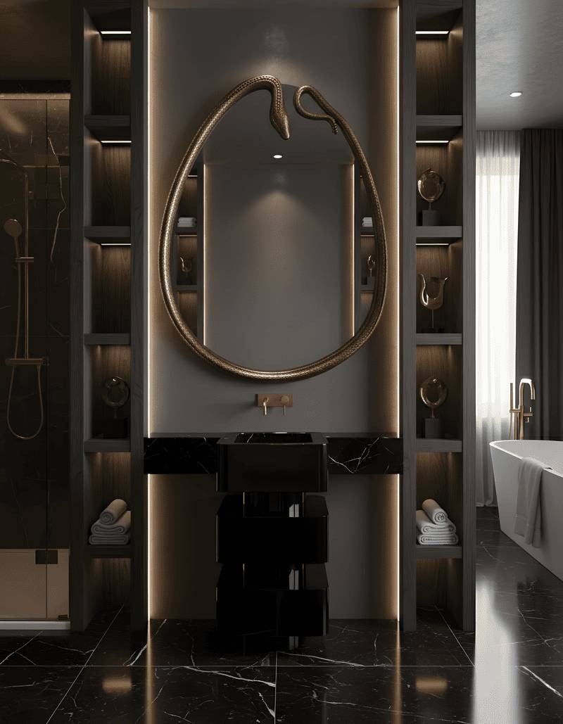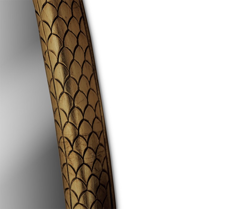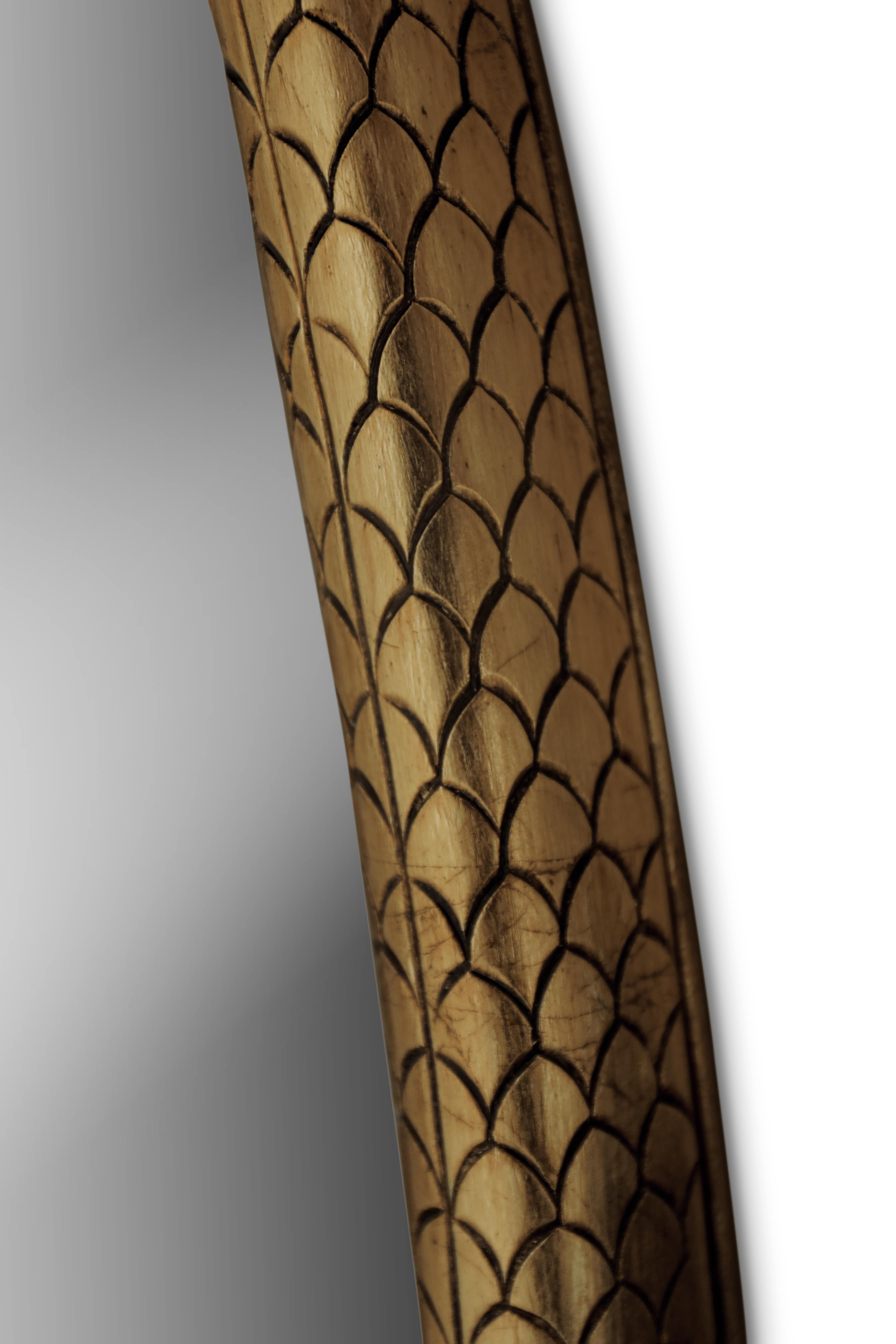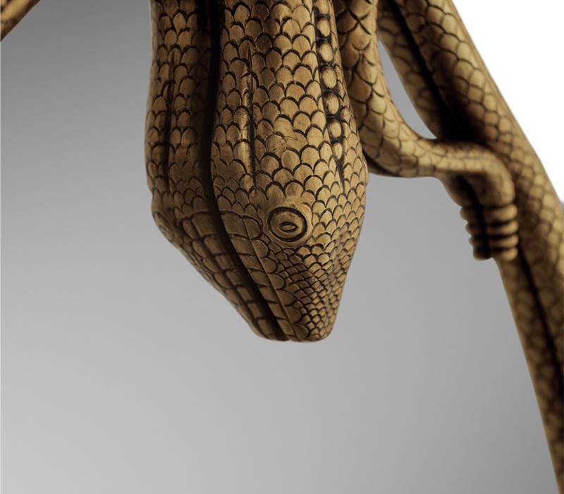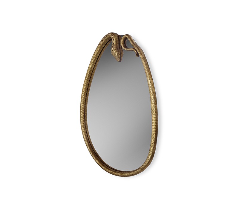 Be transformed as you gaze into the Serpentine's pear-shaped mirror. Framed in a coiled serpent form made of hand-carved wood, this mirror is the perfect way to add a touch of exoticism to any interior setting.