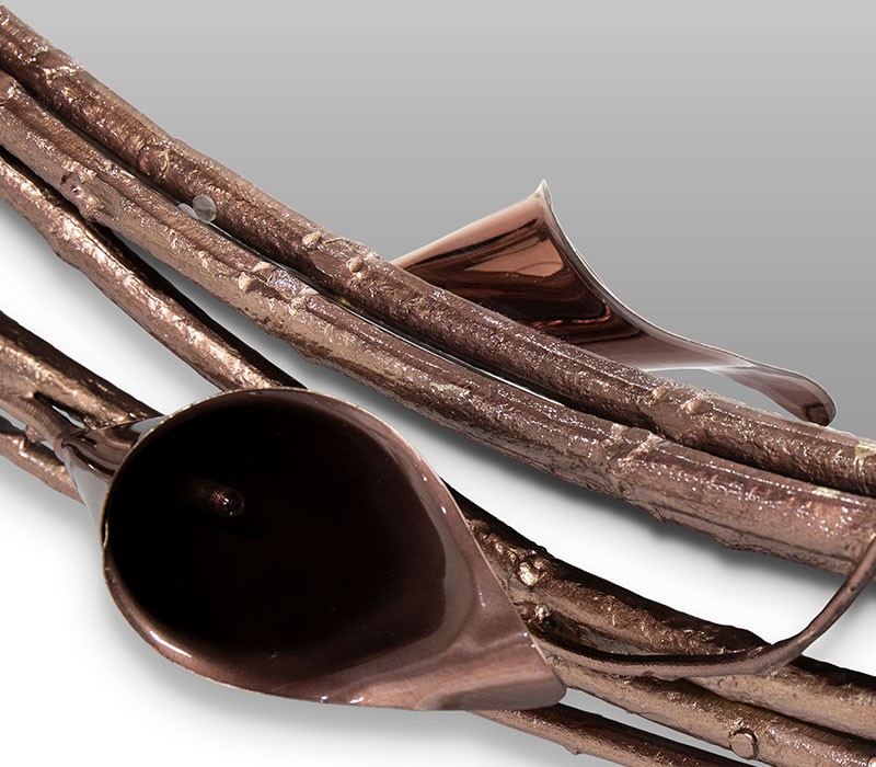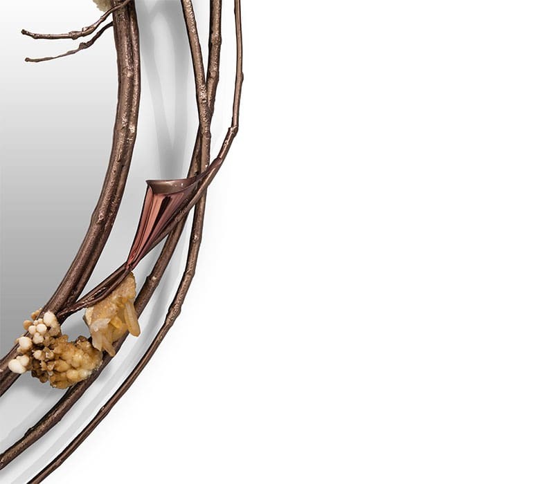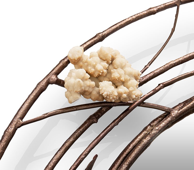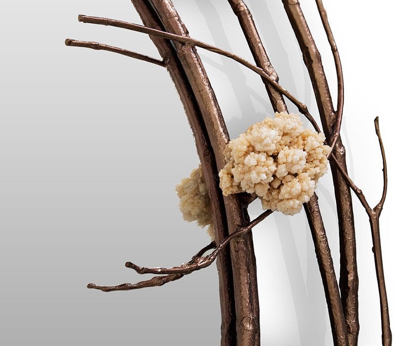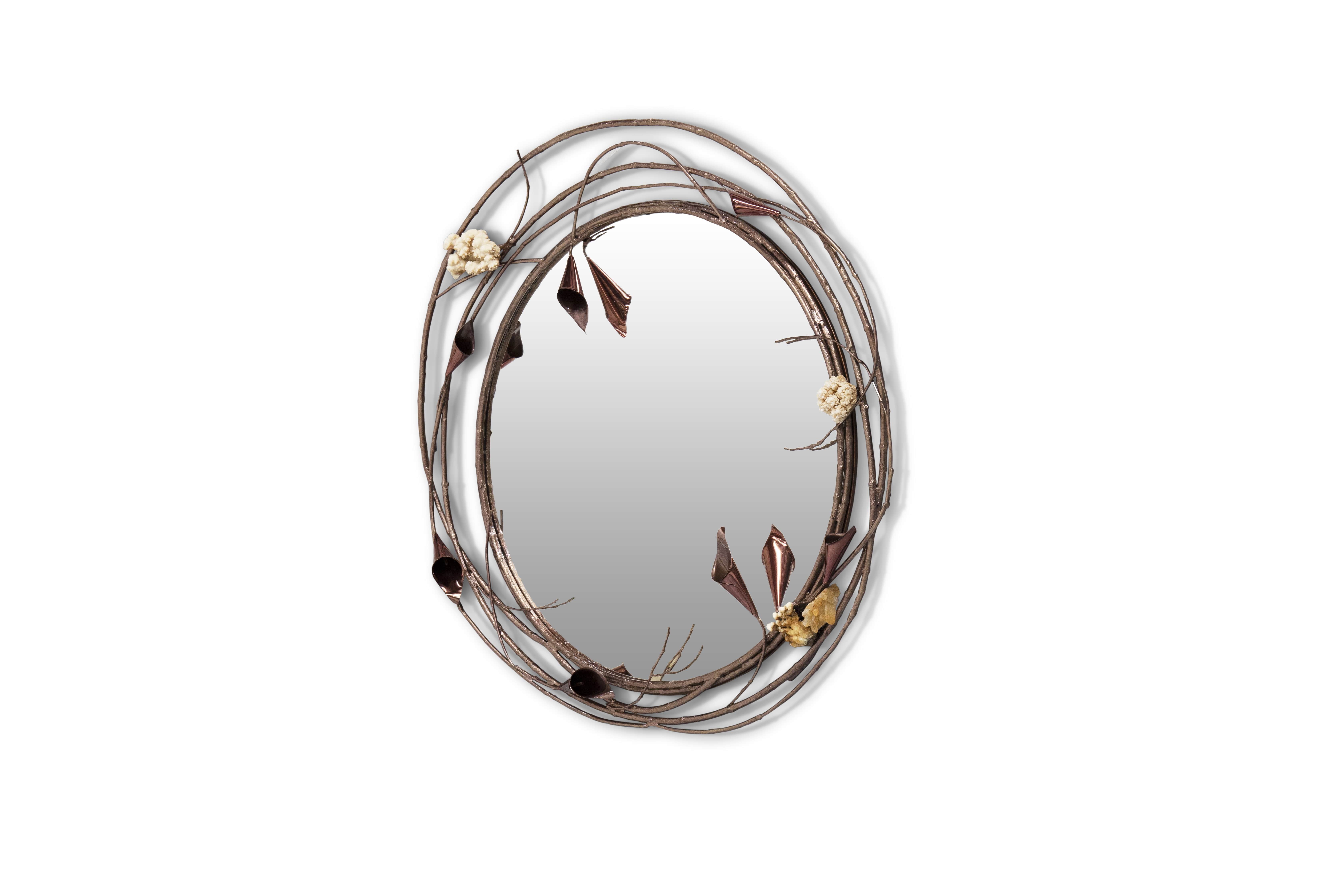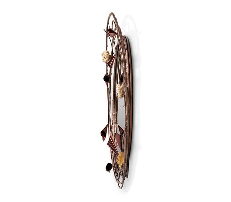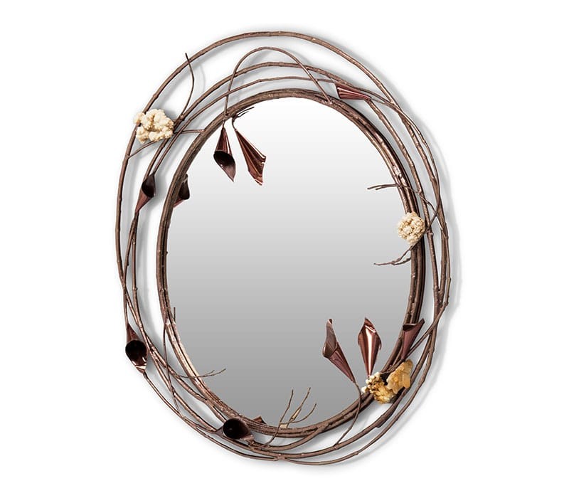 Cherish the beauty of every passing glance or intimate encounter with the flawless mirrored glass and exotic floral frame of the Stella. Fanciful stems and ethereal calla lilies accented with crystals create a charmed halo around anything that is captured by its radiant reflection.