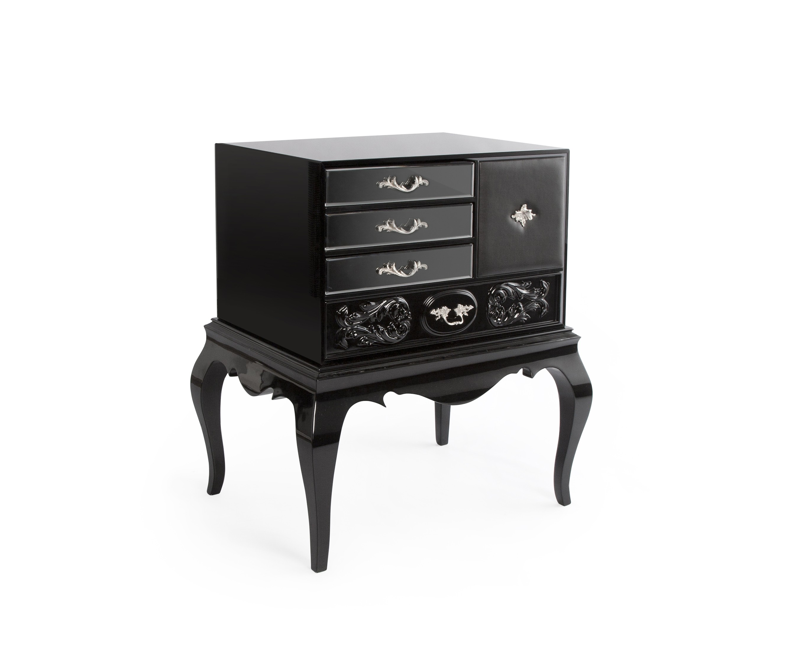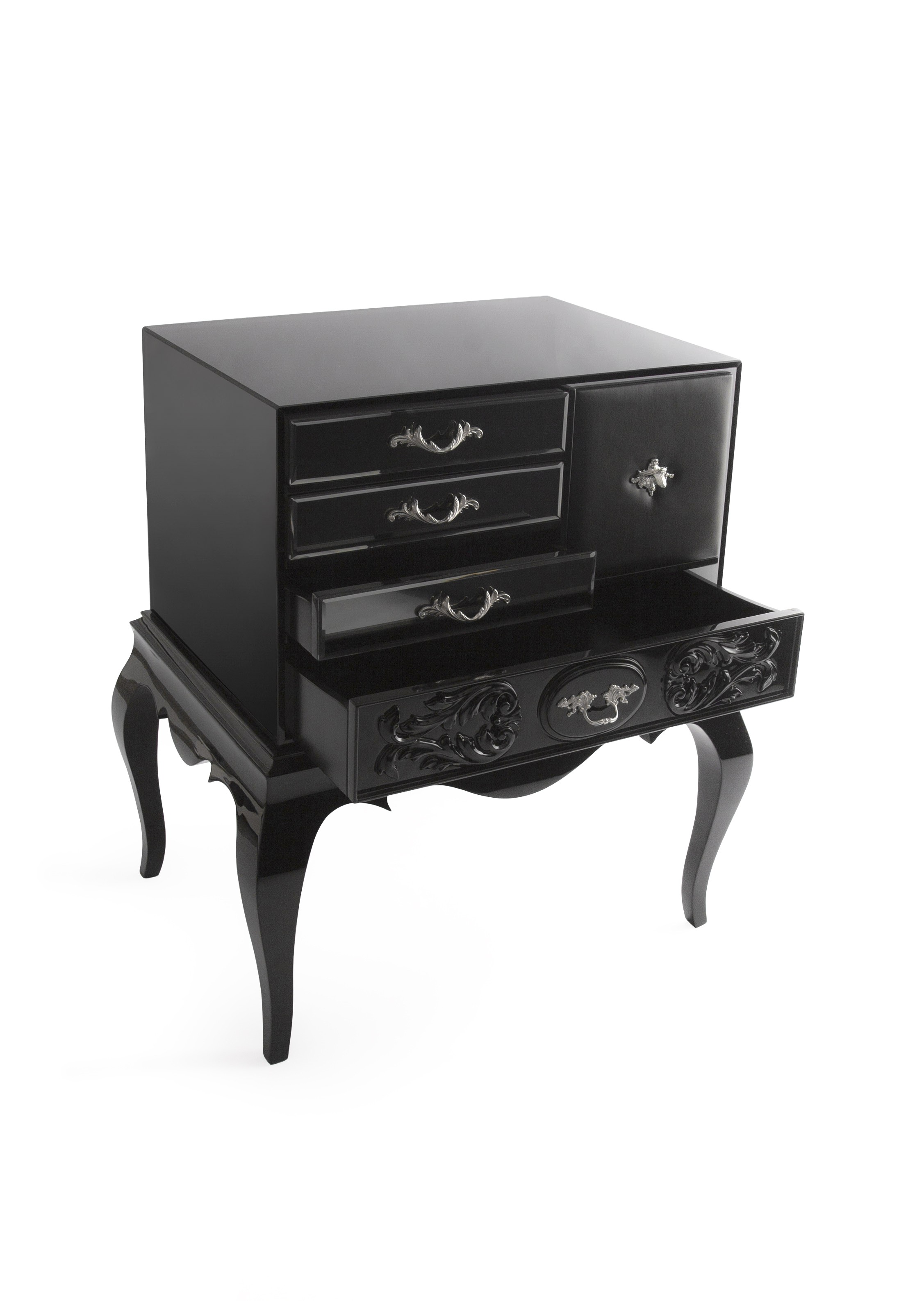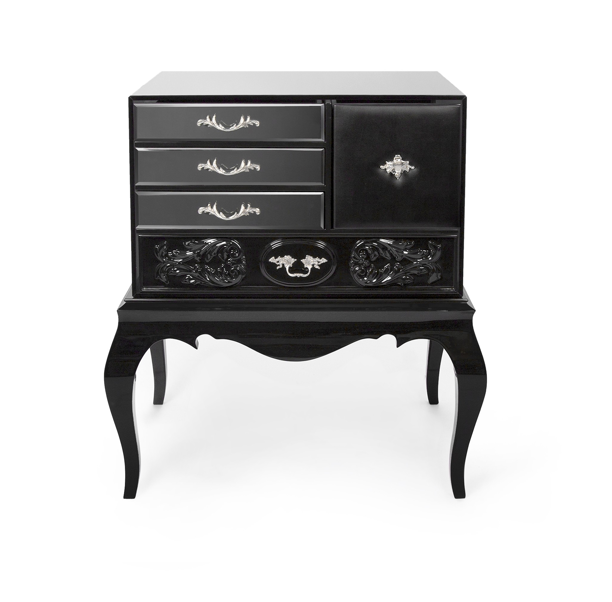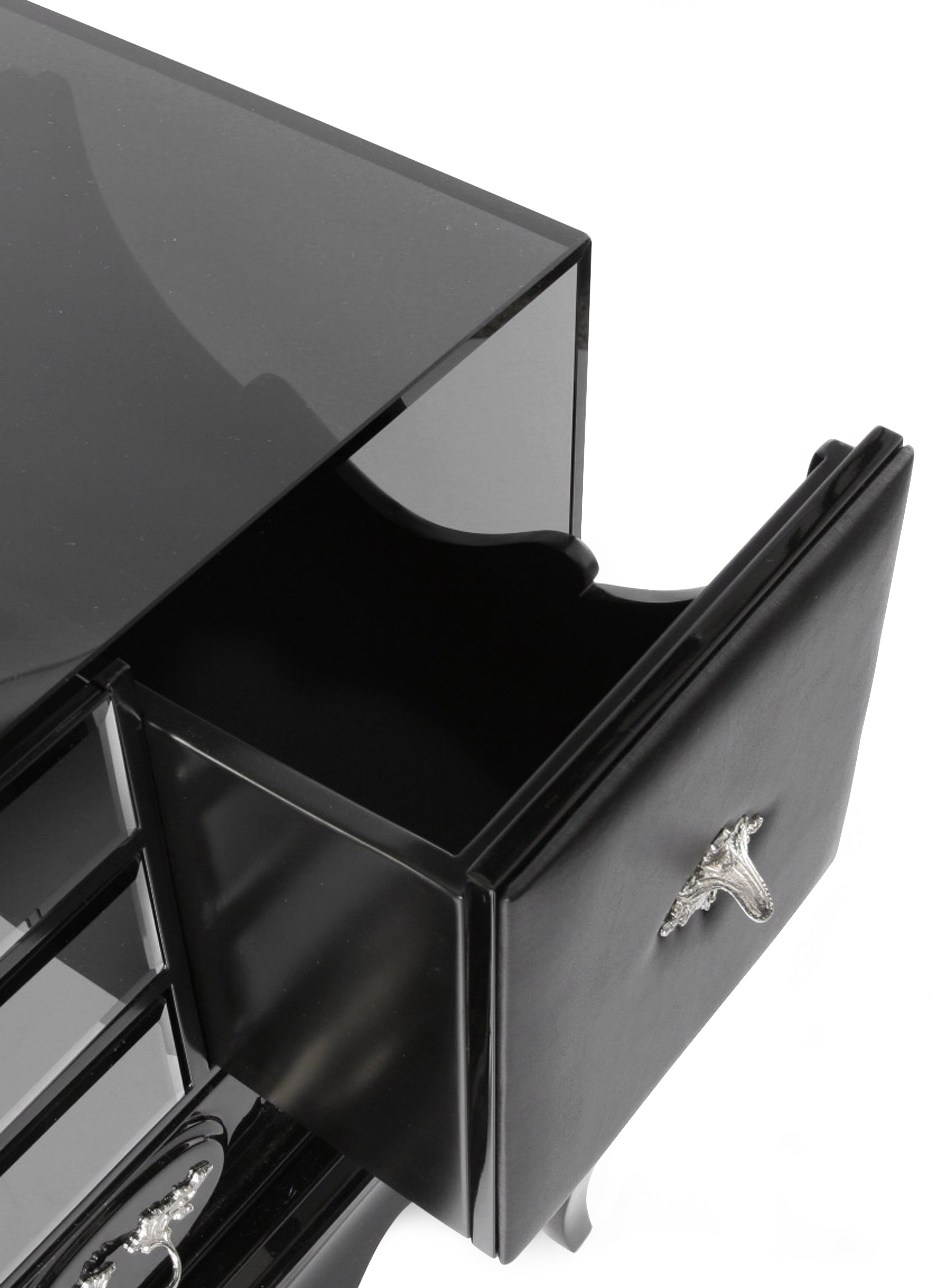 Drawing inspiration from the iconic Mondrian Sideboard, the Brooklyn Nightstand embraces Boca do Lobo’s design philosophy to the fullest. Picking up classic design elements, and resorting to the use of traditional artisan techniques, the Brooklyn Nightstand fully re-interpretes the way materials, patterns and functionalities are combined. Integrated within Boca do Lobo’s quintessential Soho Collection, the Brooklyn is urban chic in nature, yet with aristocratic qualities. It features high-gloss black or white lacquer finish, with subtle leather accents fitted with detailed handles, adding to the privileged Boca do Lobo experience.