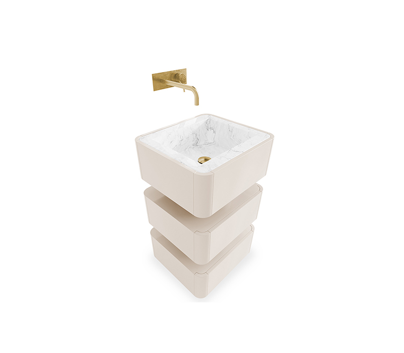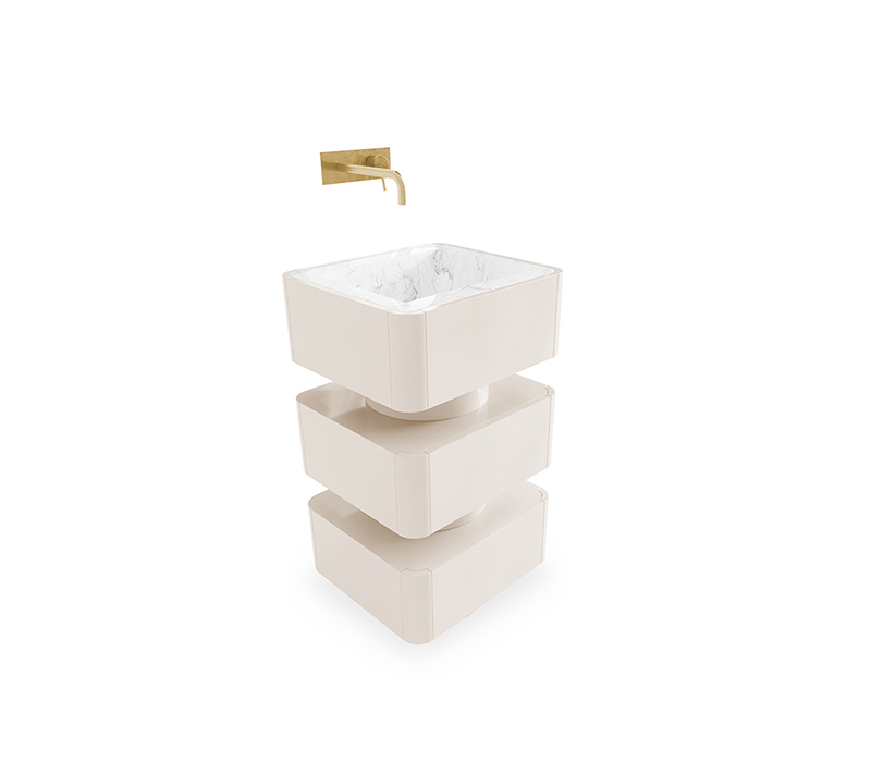 Shinto shrines are places of reverence and the abodes of the 'kami' Gods, where sacred objects are stored in the innermost chamber of the altar, not seen by anybody. The Shinto Freestanding was designed with a gloss black lacquered structure and Nero Marquina marble sink that will award your bathroom design a unique style.