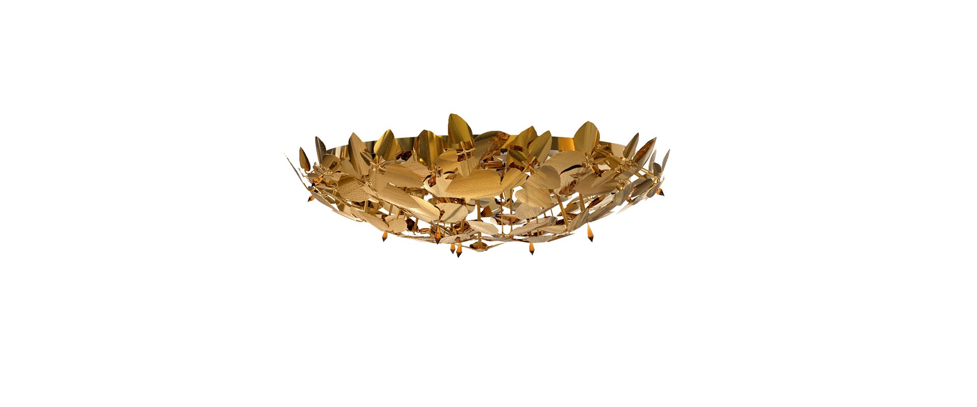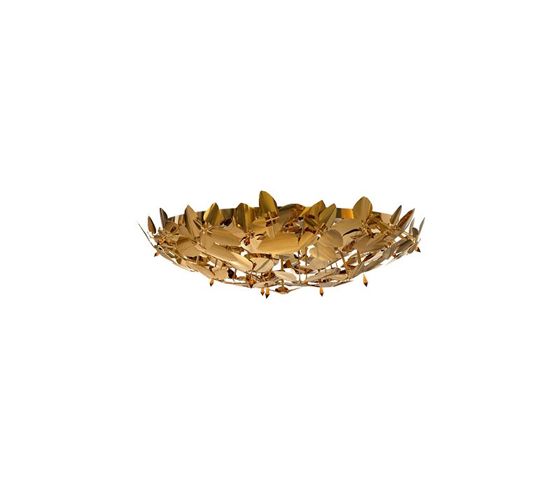 The McQueen Collection continues to grow. Combining the most luxurious design with exquisite handmade materials, this gold-plated, hammered brass and amber crystal Plafond evokes a dramatic and feminine sensation of beauty. The McQueen Plafond is a meticulously designed beauty object, perfect to complement the boldest of projects. It is a powerful and harmonious approach to contemporary luxury.