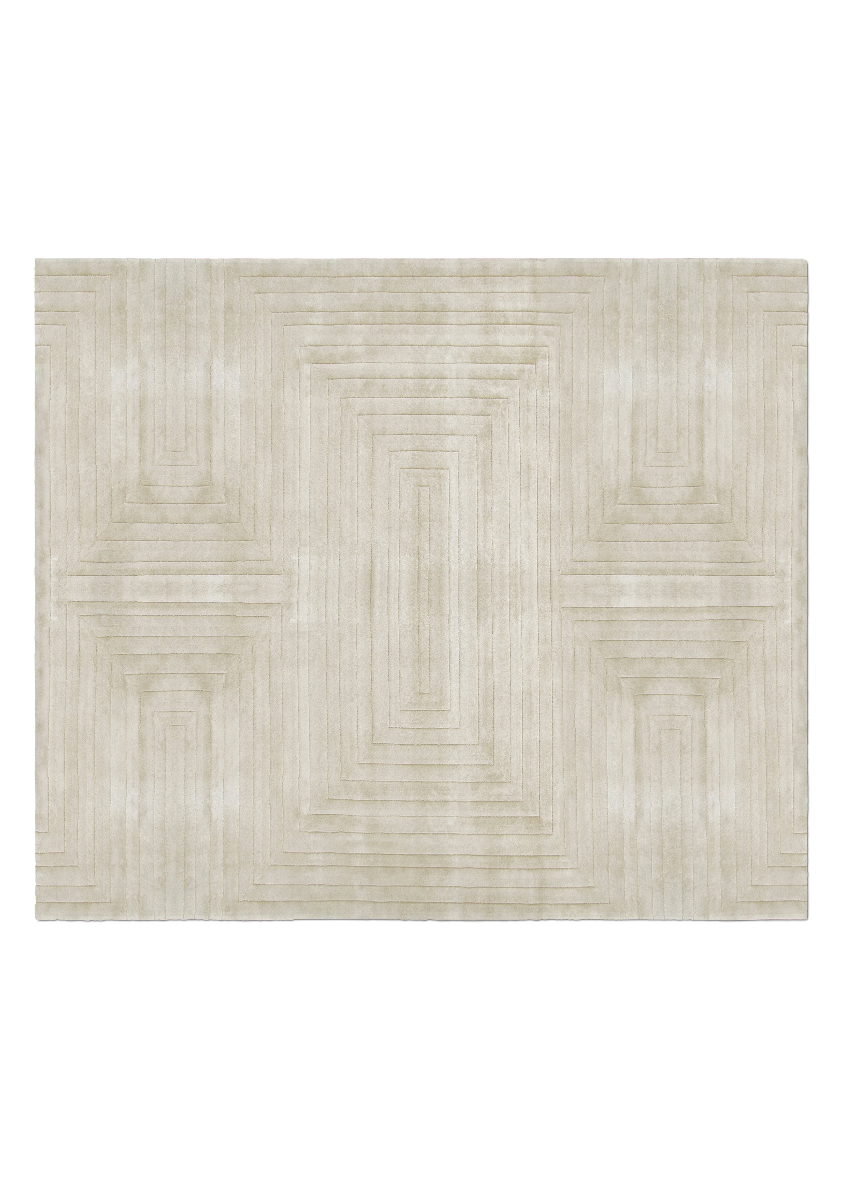 White Garden is a square-shaped area rug that elegantly blends multiple shades of white, making it a versatile addition to any space. Inspired by the timeless appeal of neutral tones and geometric design, this 100% handmade rug is crafted from botanical silk, offering both comfort and a warm, inviting ambiance.