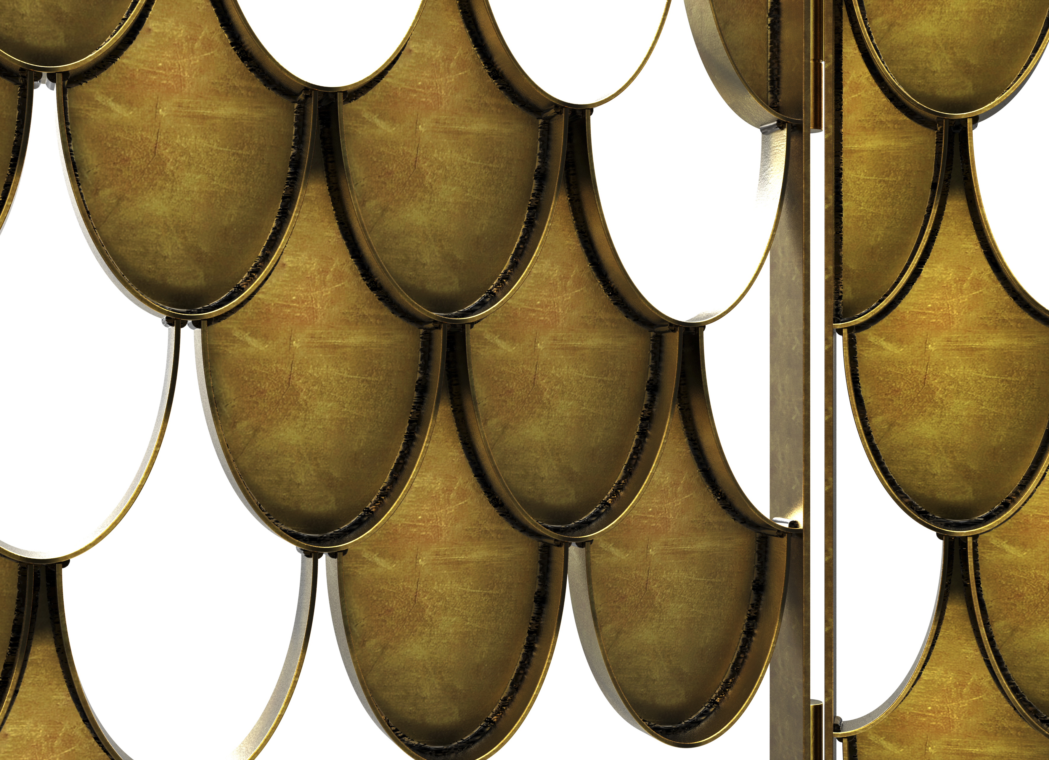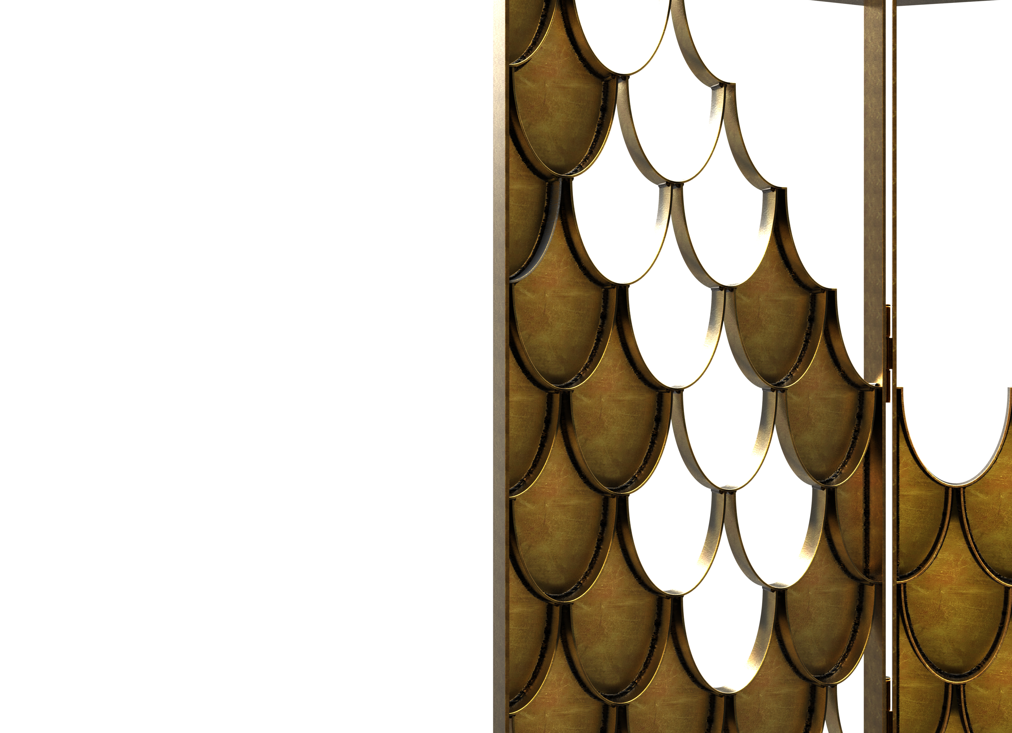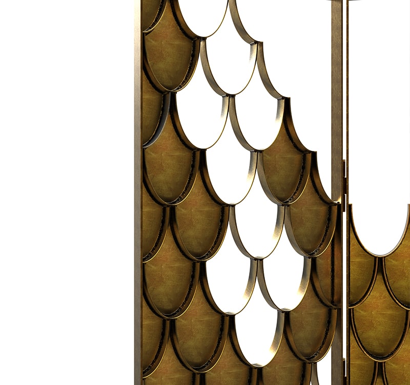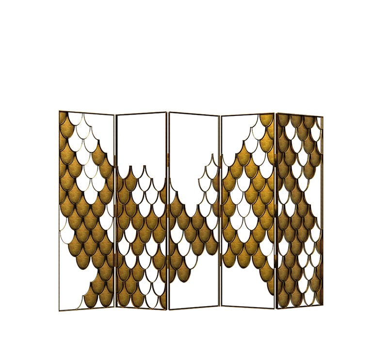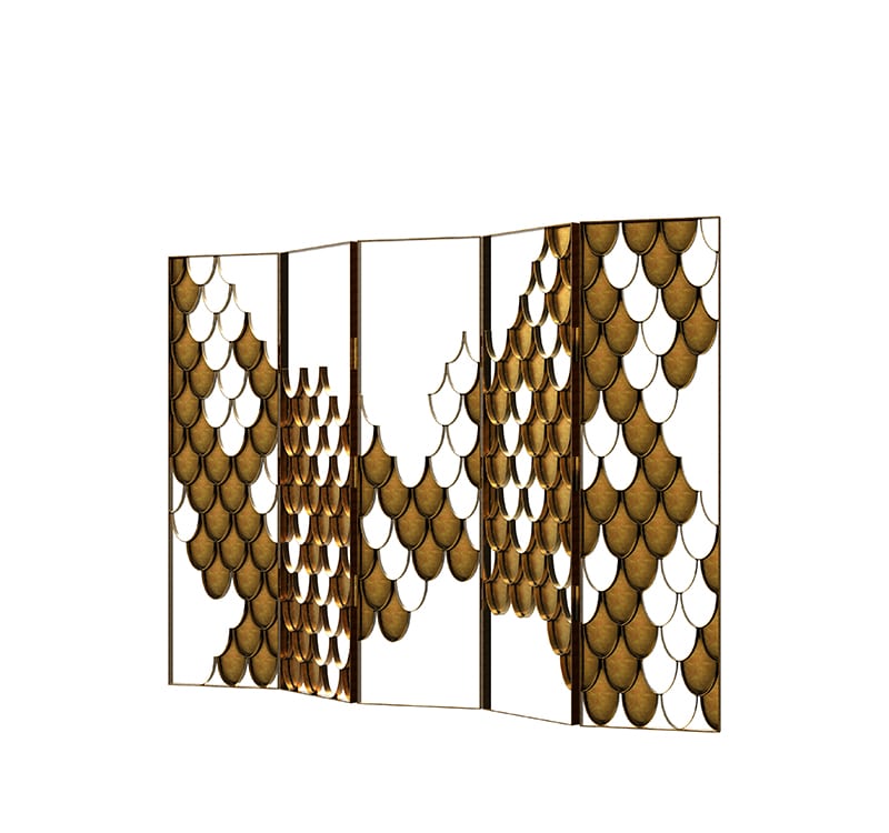 Koi screen is based on the carp that is a recurring symbol of Japanese culture. Its natural color mutations reveal their capacity to adapt, just like the Koi Folding Screen which fits in any modern home decor. The Koi scales from the sides of the folding screen shine and reflect the sun on its brass surface. Koi s a statement item that improves one's modern bathroom decor.