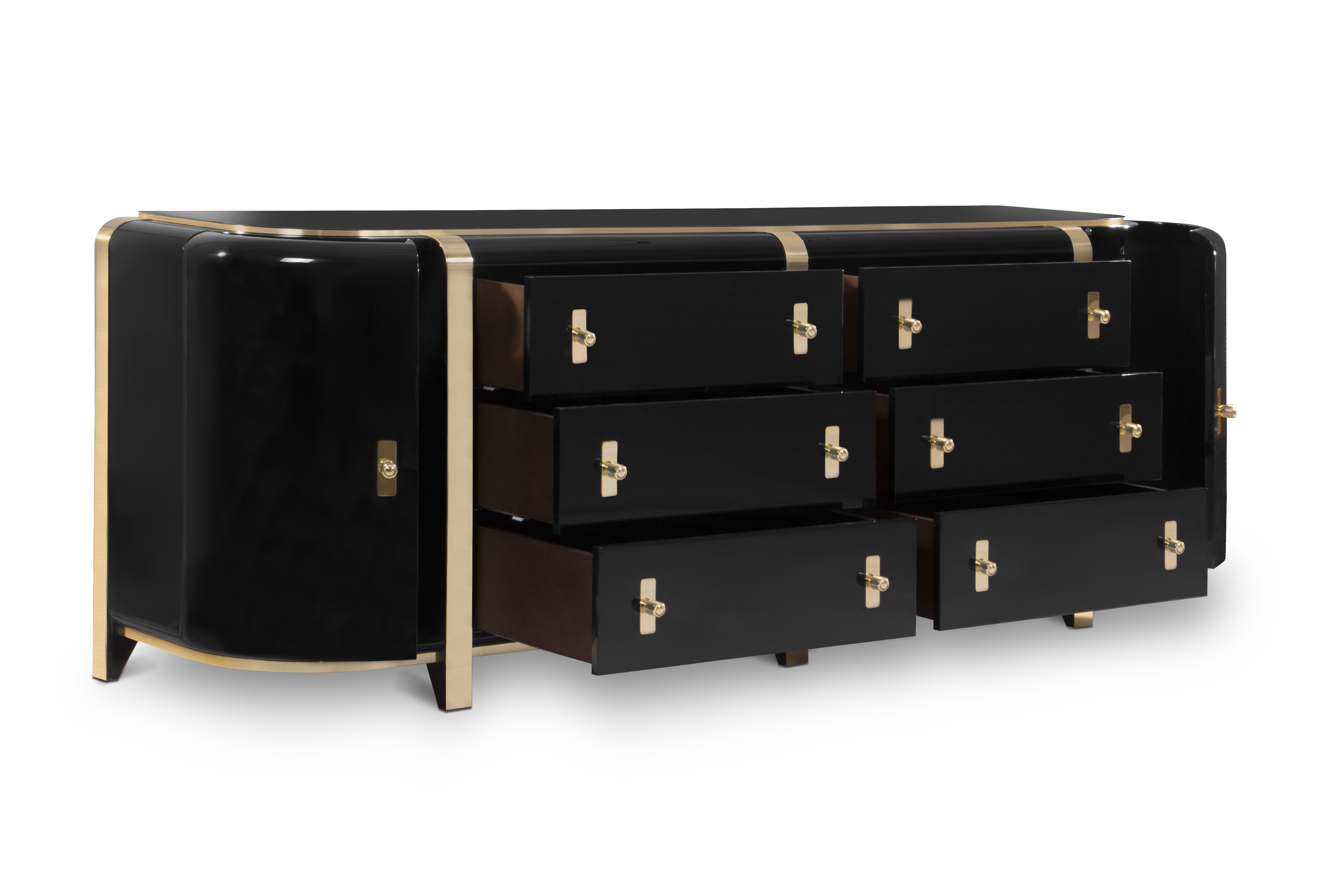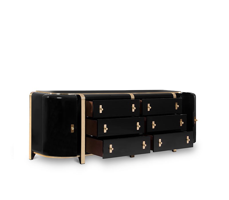 Inspired by the monumental and monolithic style of Louis Kahn, this is a sideboard that will bring a strong presence to your room with its dark and luxurious look. The perfect modern sideboard for any luxury interior that surprises with a gorgeous high gloss varnish over black lacquered wood.
