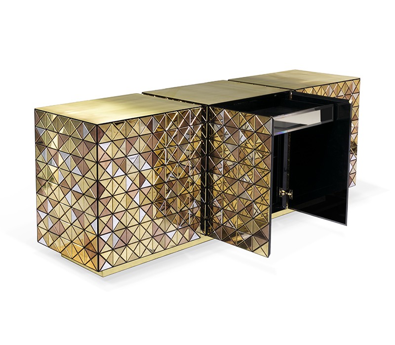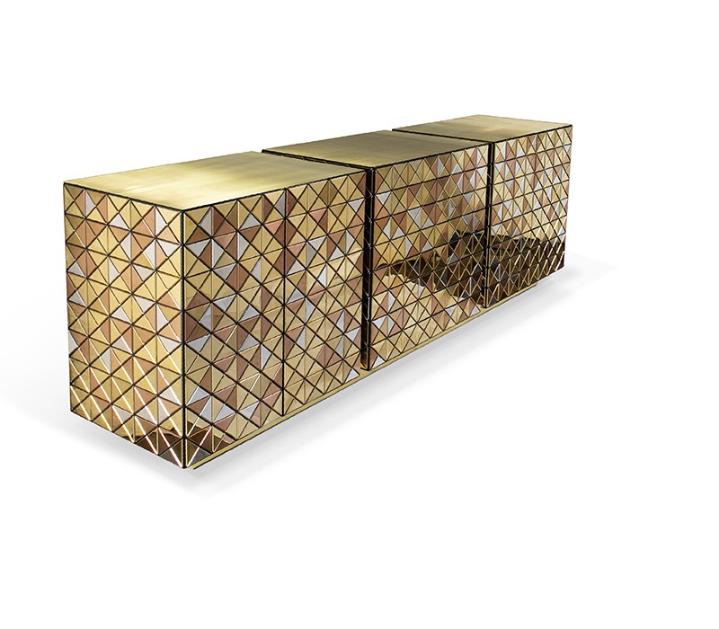 Iconic and unparalleled, the Pixel Sideboard presents a ground-breaking work of pioneering modern design. This modern sideboard carries the dedication and art of those who built it, a variety of traditional craftsmanship techniques to create an item of avant-garde furniture that is authentic, joyful, and a perfect match for the digital age. Its playful character is captured in shape and color palette, challenging design, and finest craftsmanship. This entire metal sideboard plays with perception and combines exceptional materials with multicolored compositions to give this a unique, striking design.