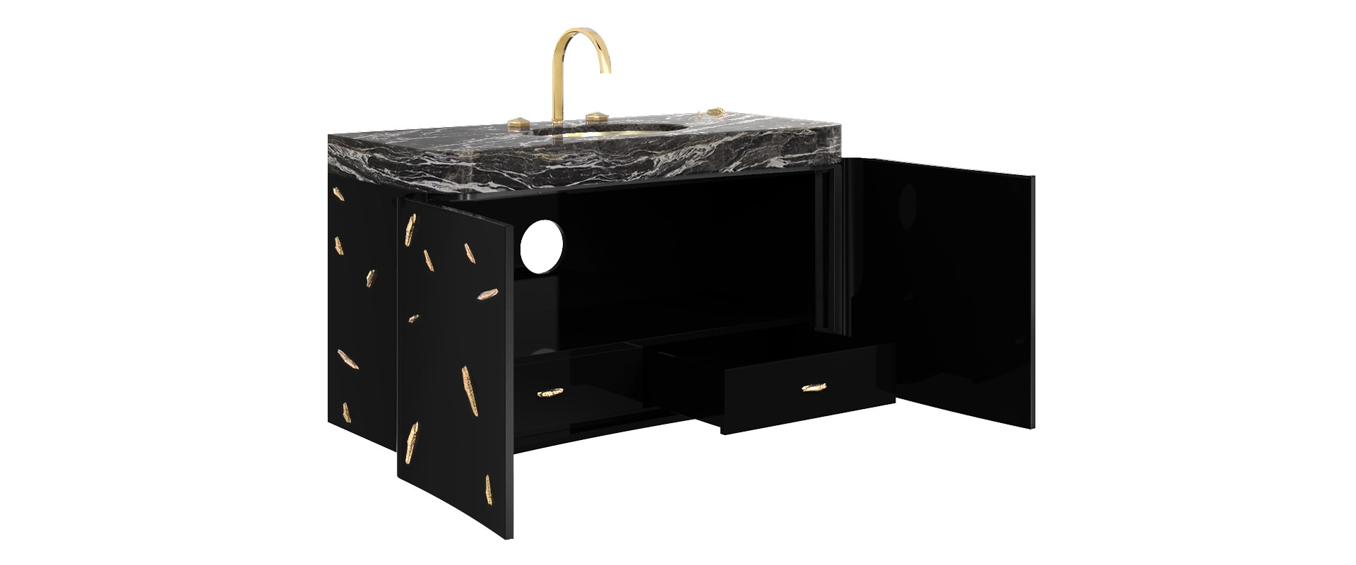 Baraka is an ancient Sufi word that means ''a blessing - the breath of life -, or essence of life'' from which the evolutionary process unfolds. Glamorous, beautifully realized and enhanced by never-ending contrasts between ancient and contemporary lines, the Baraka Single Suspension cabinet in Black Kenya marble is the perfect item to complete your luxury bathroom design look.