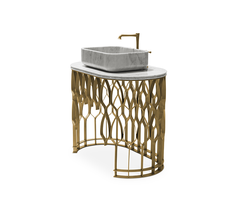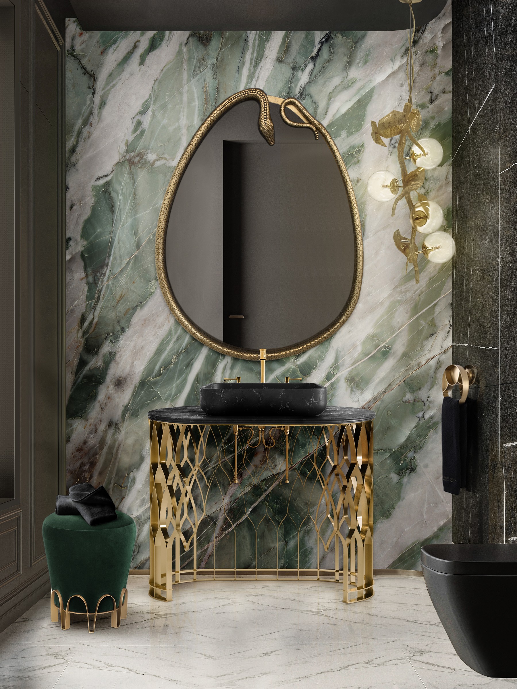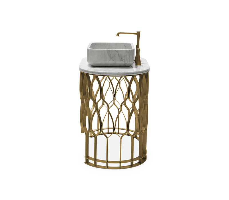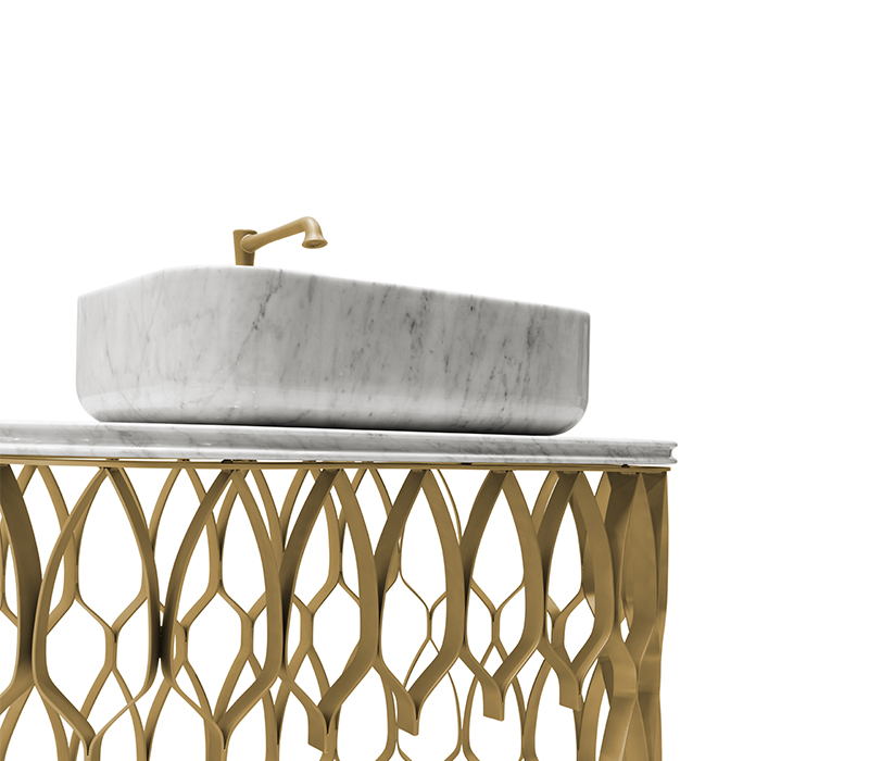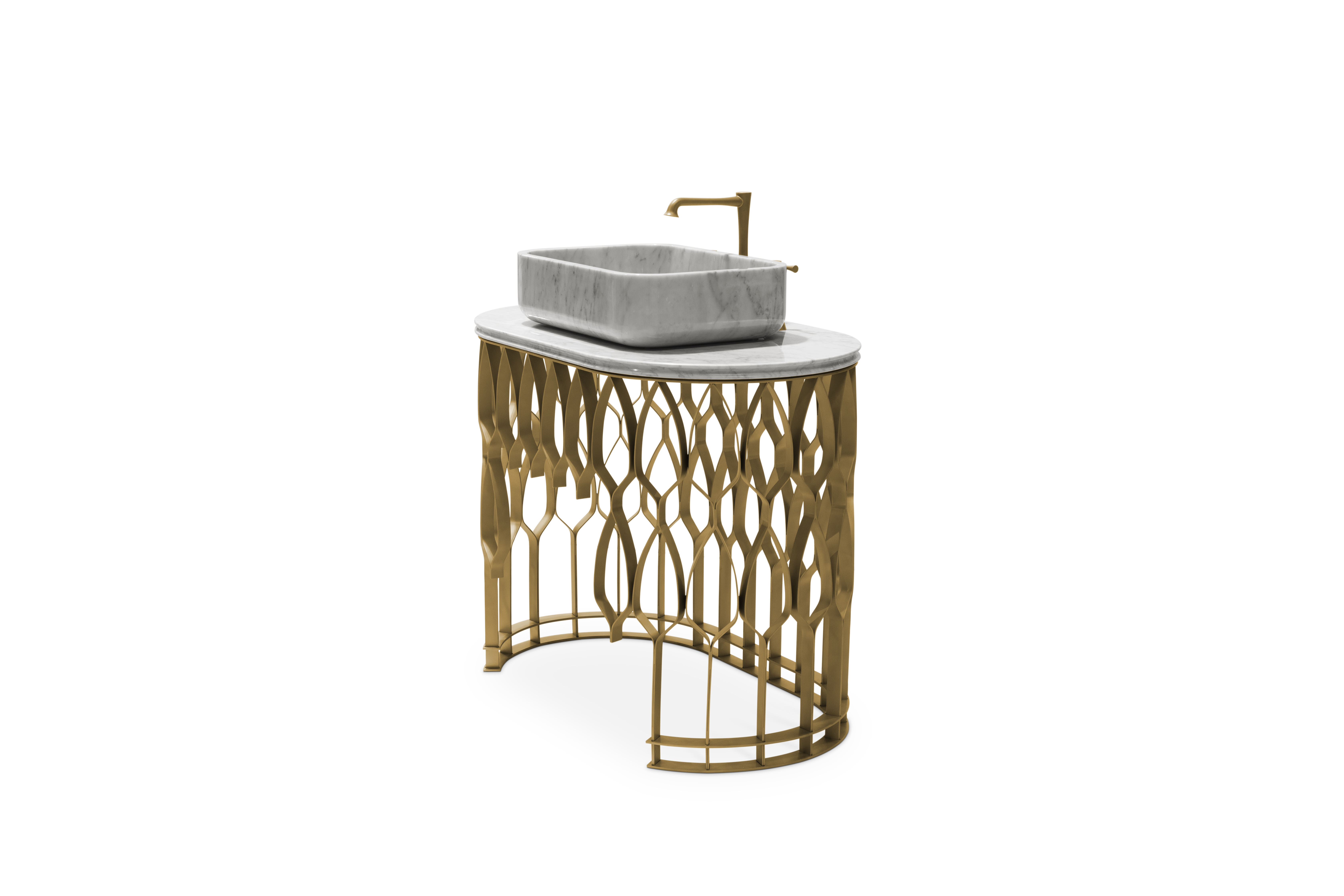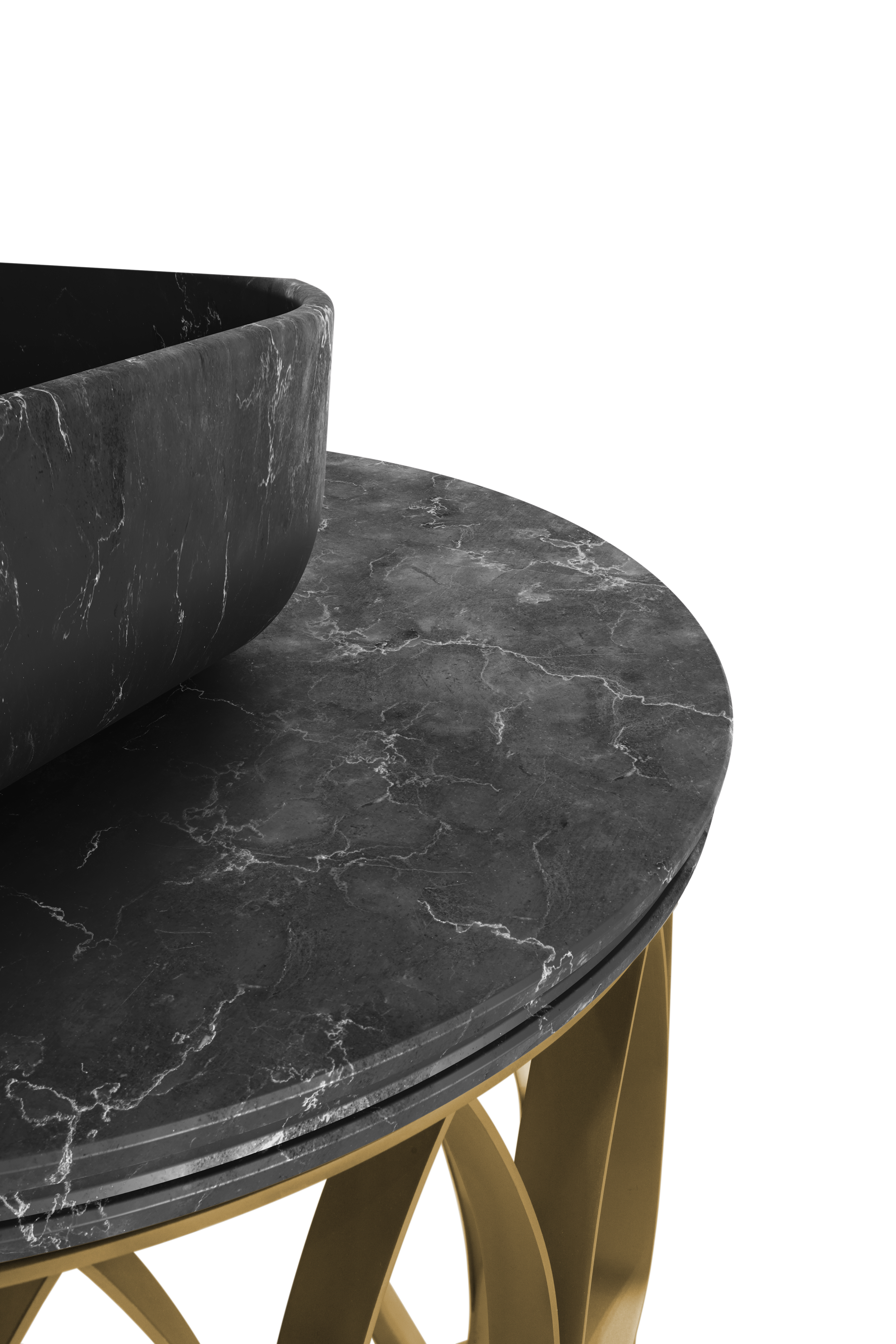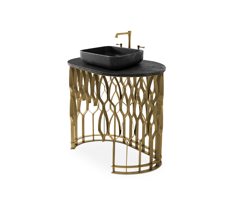 Beyond mere places of worship, mosques stand as magnificent feats of architecture. Drawing inspiration from their splendor, the Mecca Vanity Cabinet is a testament to this grandeur. With meticulous craftsmanship, it features brushed brass matte columns reminiscent of mosque architecture. The marriage of this intricate gold framework with the opulent Nero Marquina marble top and sink forms a stunning visual harmony, blending tradition with modern style. More than just a piece of furniture, the Mecca Vanity Cabinet embodies refined elegance, elevating any space into a luxurious sanctuary of luxury.