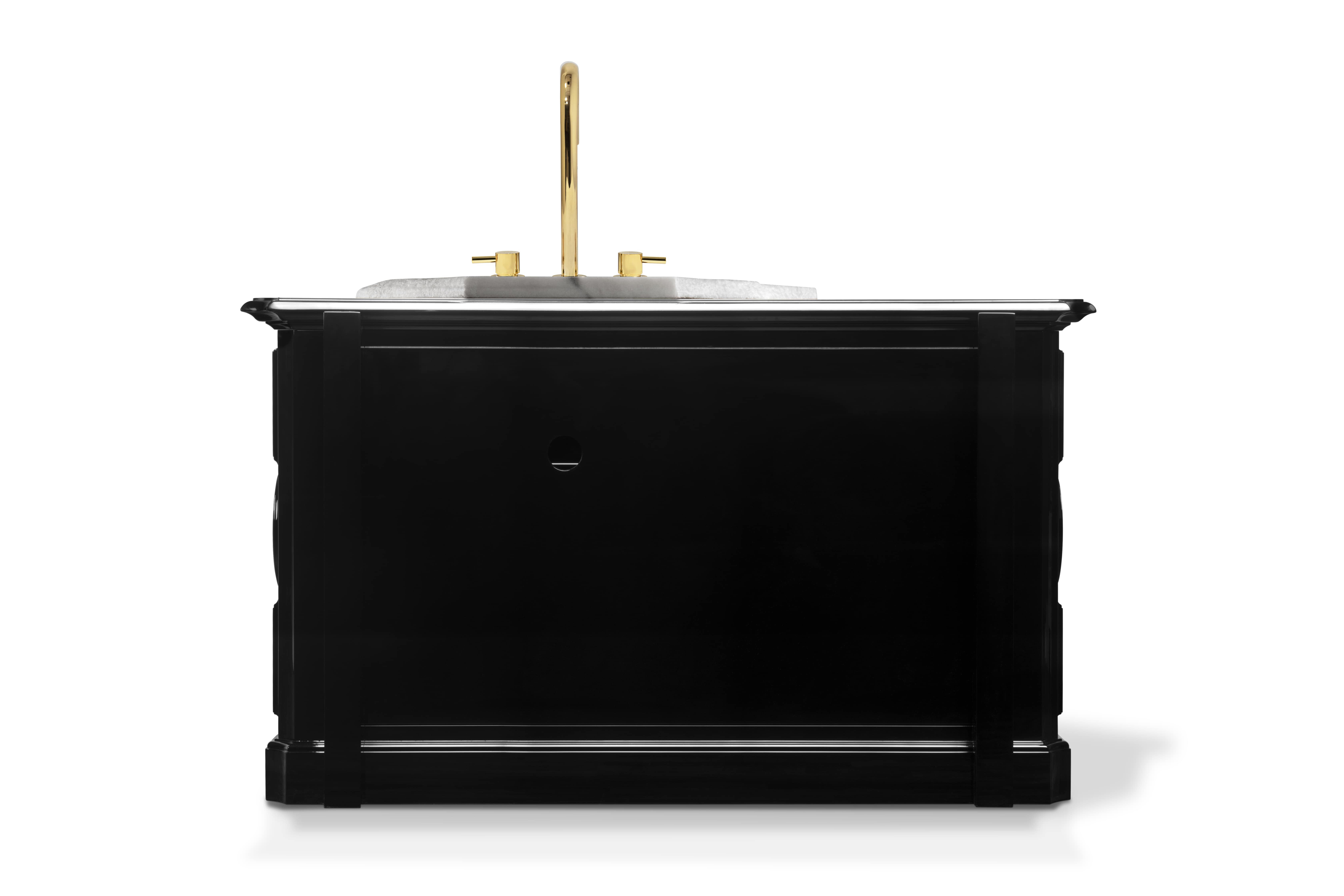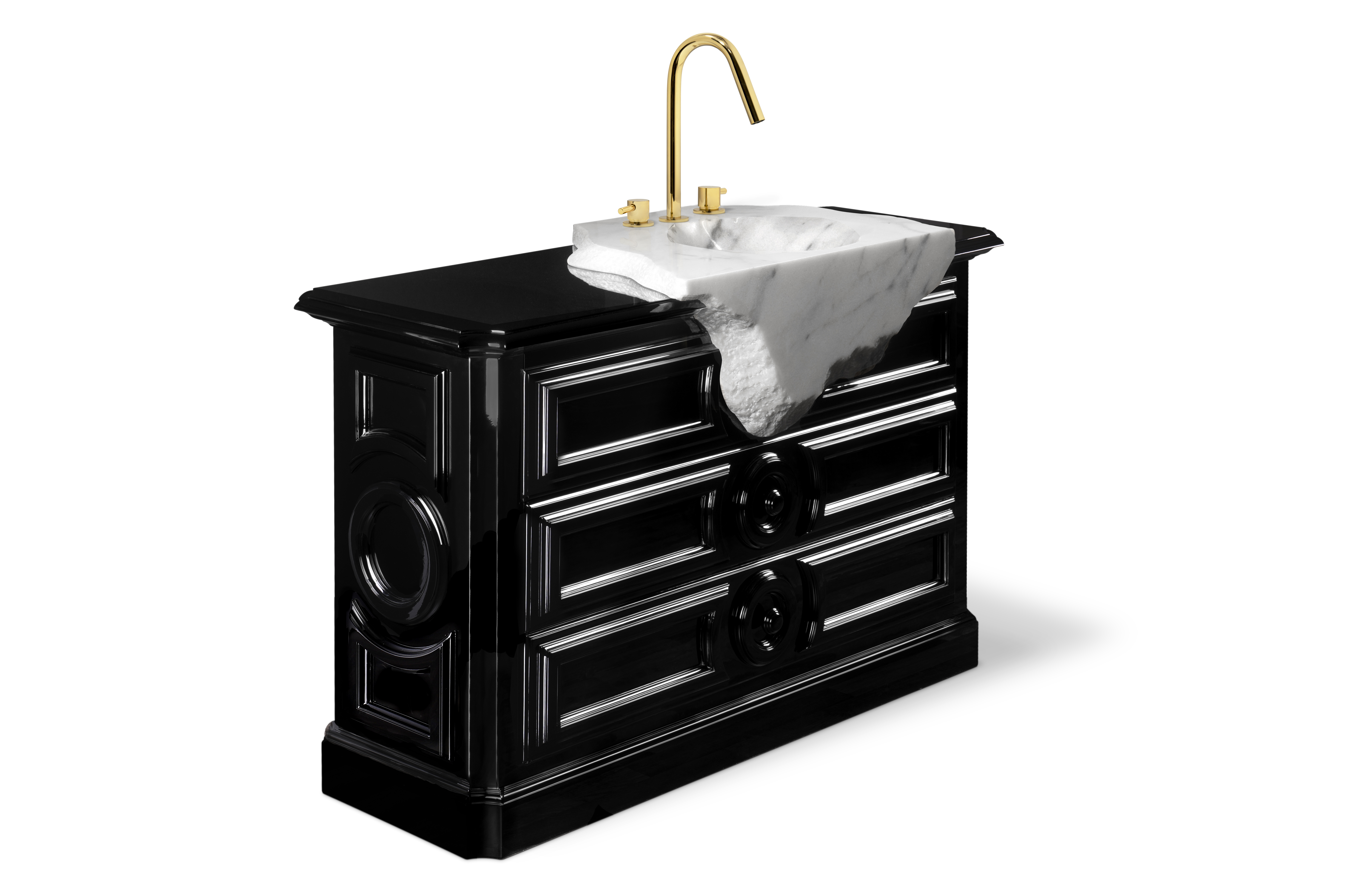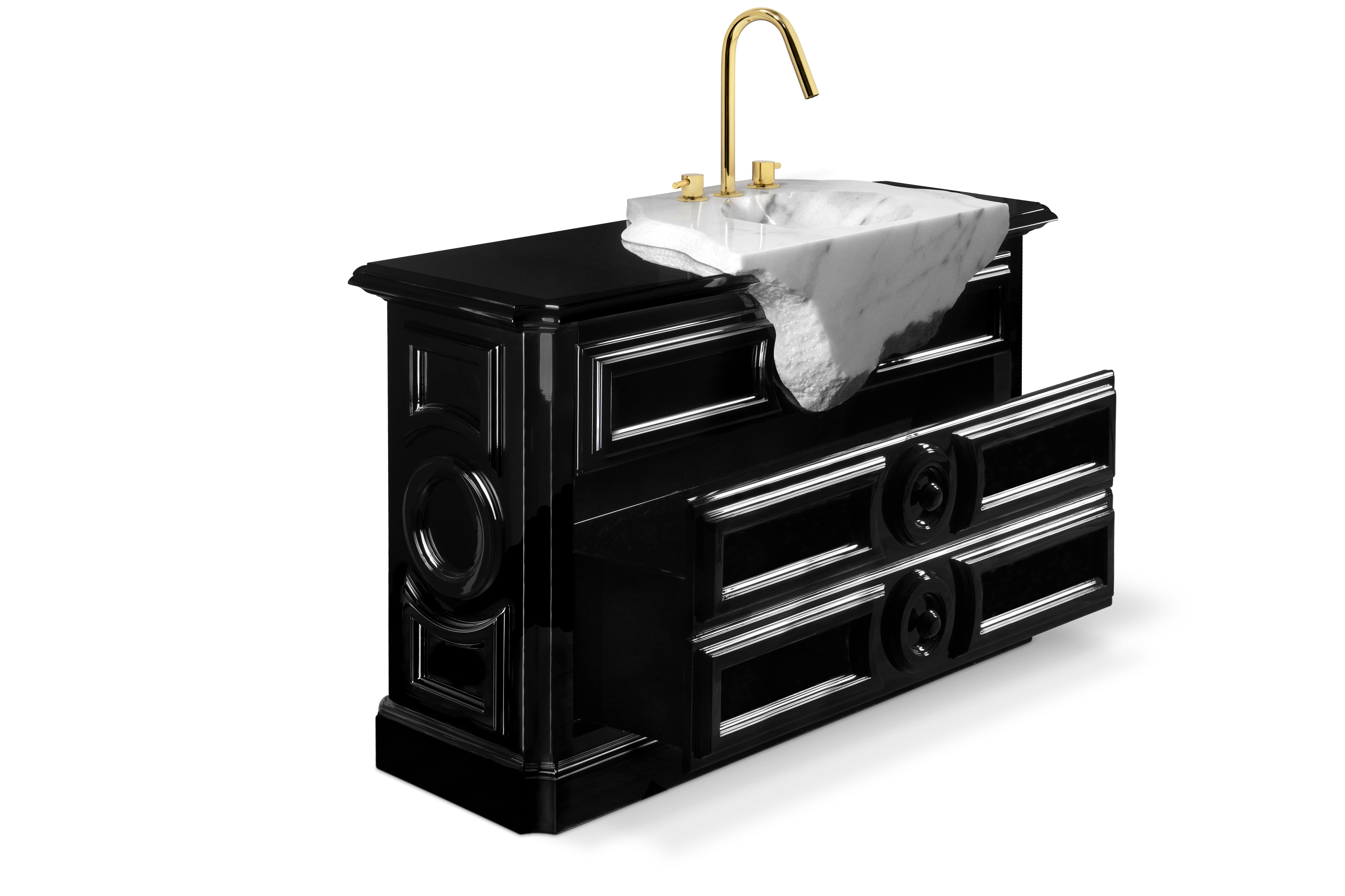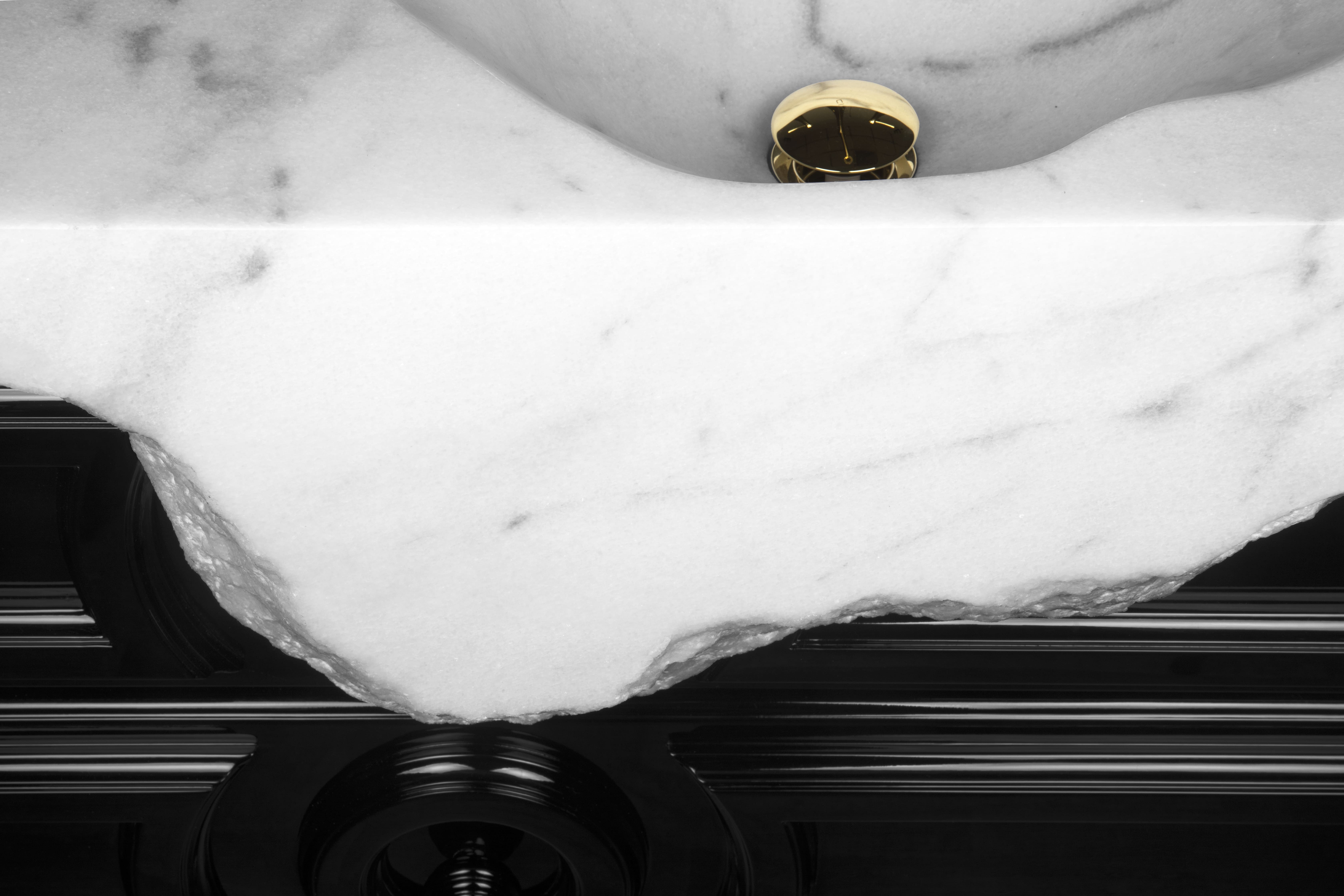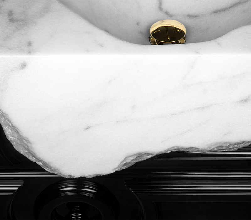 The melted marble look of the Petra Vanity Cabinet takes us to the City of Petra where buildings are carved directly into the stone cliffs. The Petra Vanity Cabinet features a high gloss black lacquered wood structure with a spacious and functional drawer on the front. It is finished with a carved melted vessel sink made entirely by one single block of Ibiza Marble. By adding this vanity cabinet to your bathroom, it is a sure guarantee of luxurious and exquisite environment creation.