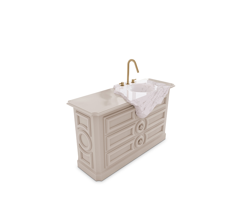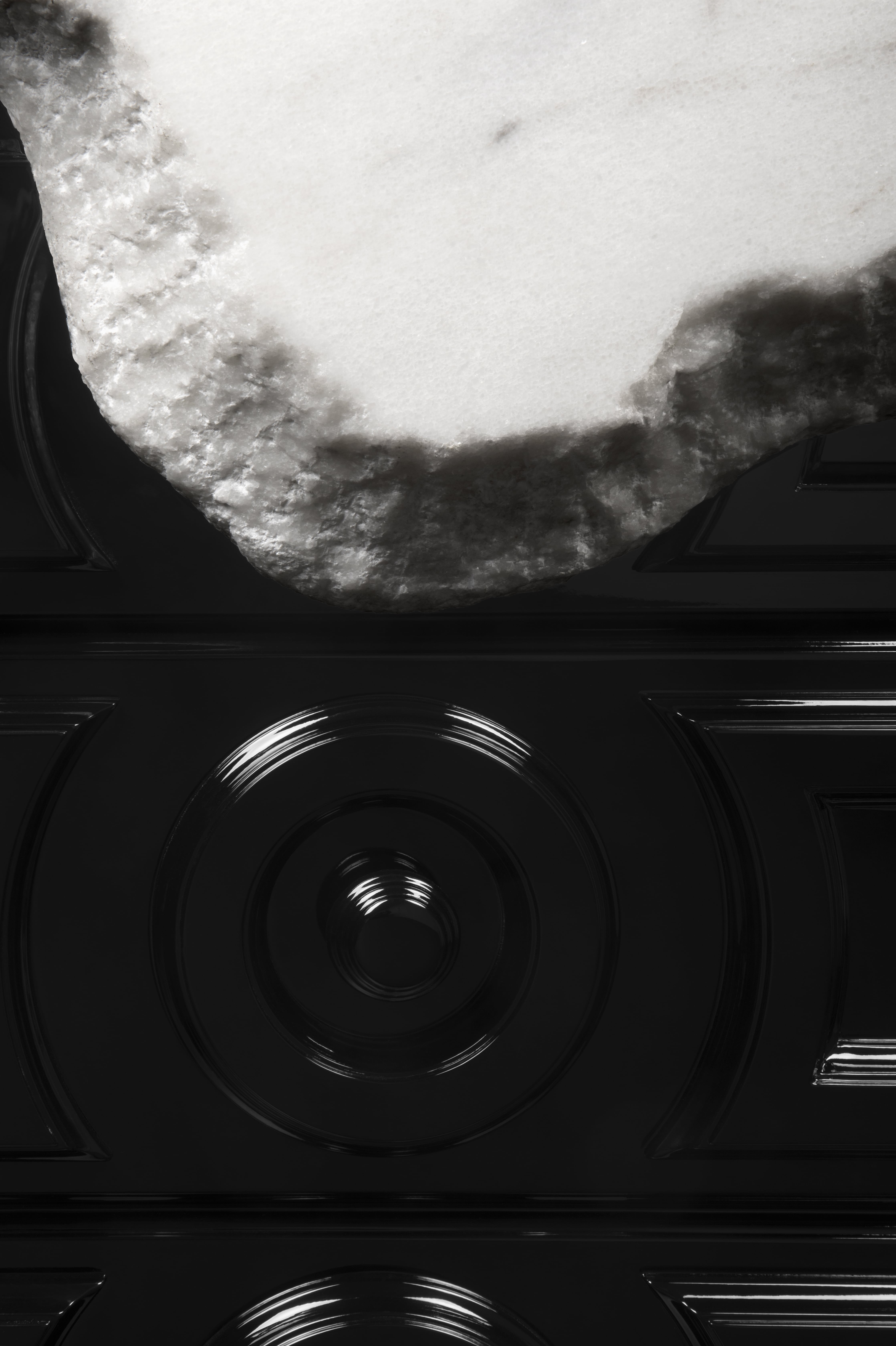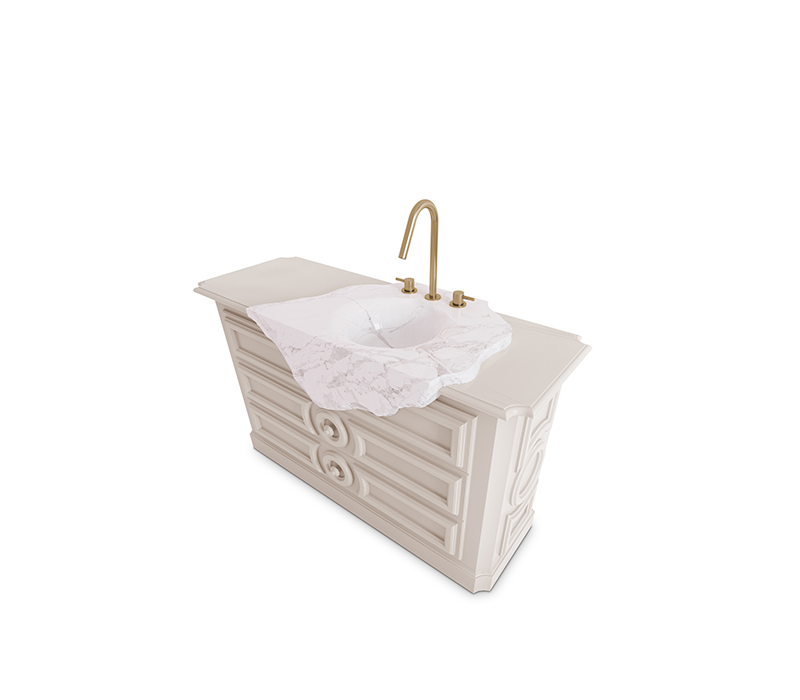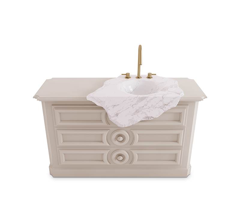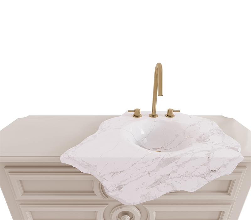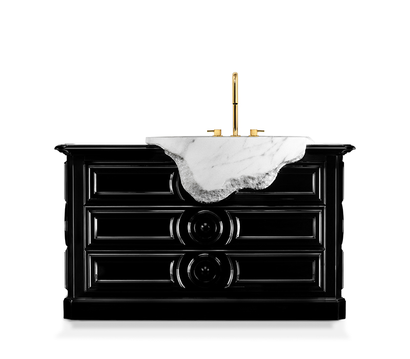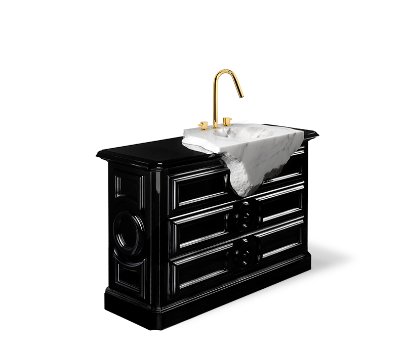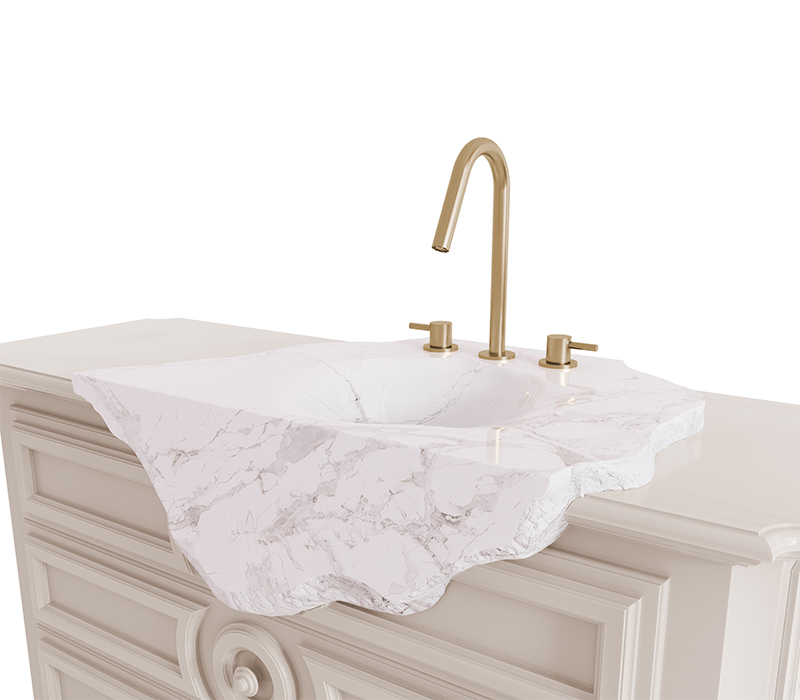 The melted marble look of the Petra Vanity Cabinet takes us to the City of Petra where buildings are carved directly into the stone cliffs. The Petra Vanity Cabinet features a high gloss black lacquered wood structure with a spacious and functional drawer on the front. It is finished with a carved melted vessel sink made entirely by one single block of Ibiza Marble. By adding this vanity cabinet to your bathroom, it is a sure guarantee of luxurious and exquisite environment creation.
