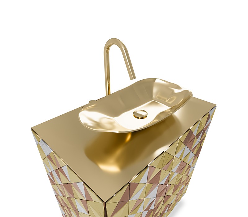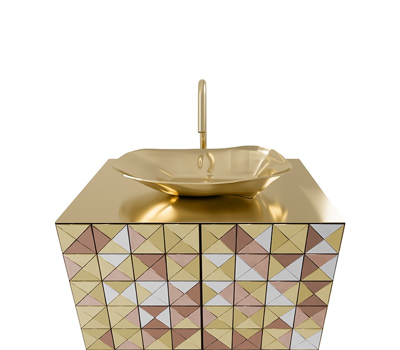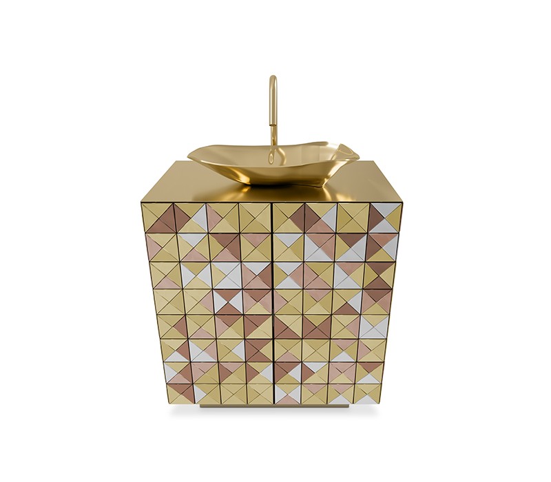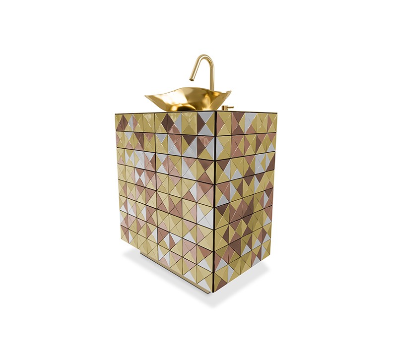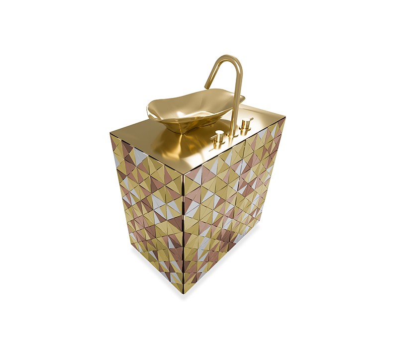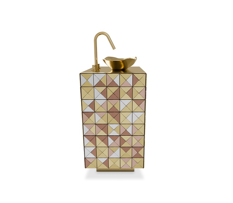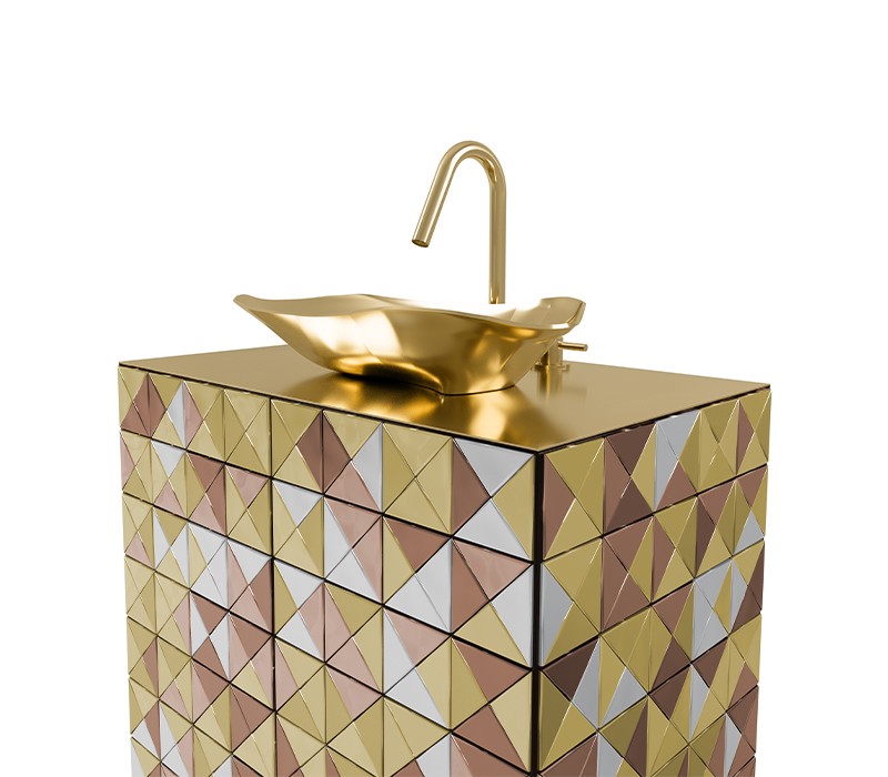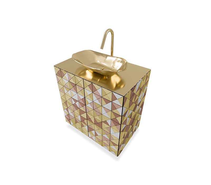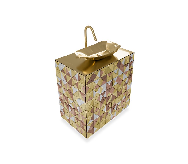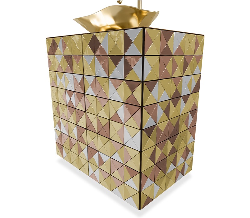 The Pixel Single Vanity Cabinet by Maison Valentina combines geometric elegance with premium materials. Featuring sleek metal finishes, anodized aluminum details, and spacious storage, this luxury bathroom vanity transforms interiors with sophistication and functionality.