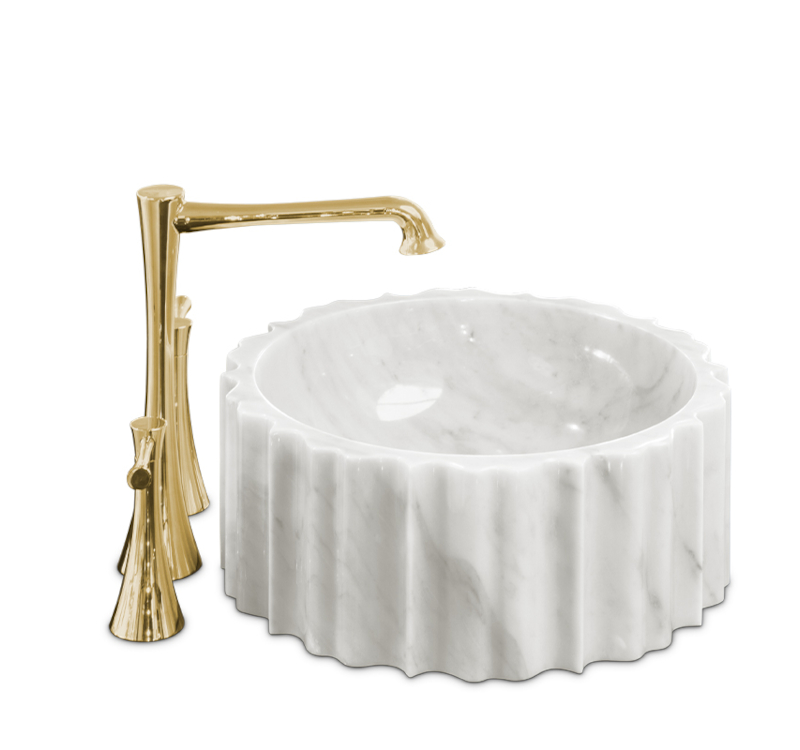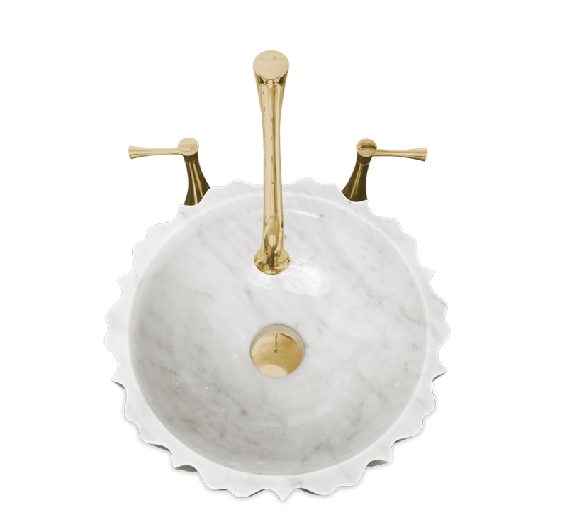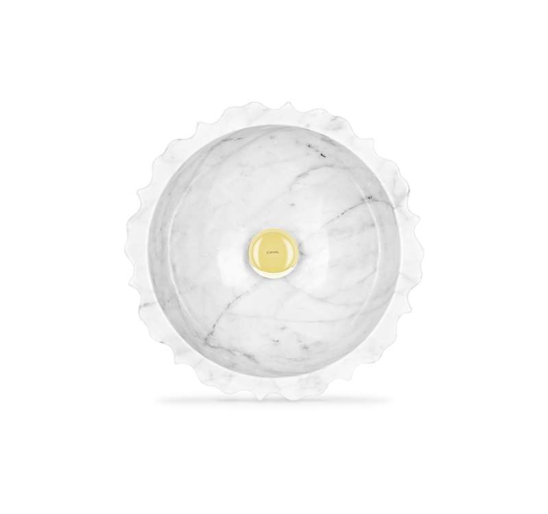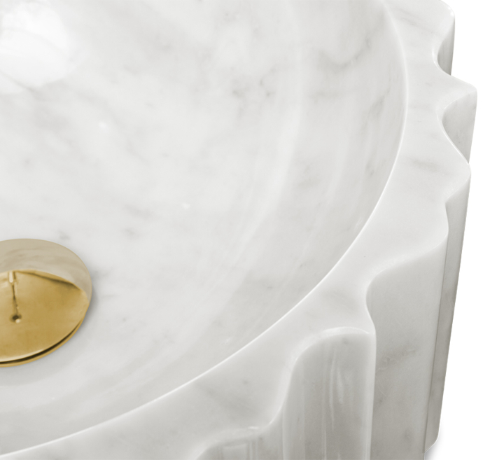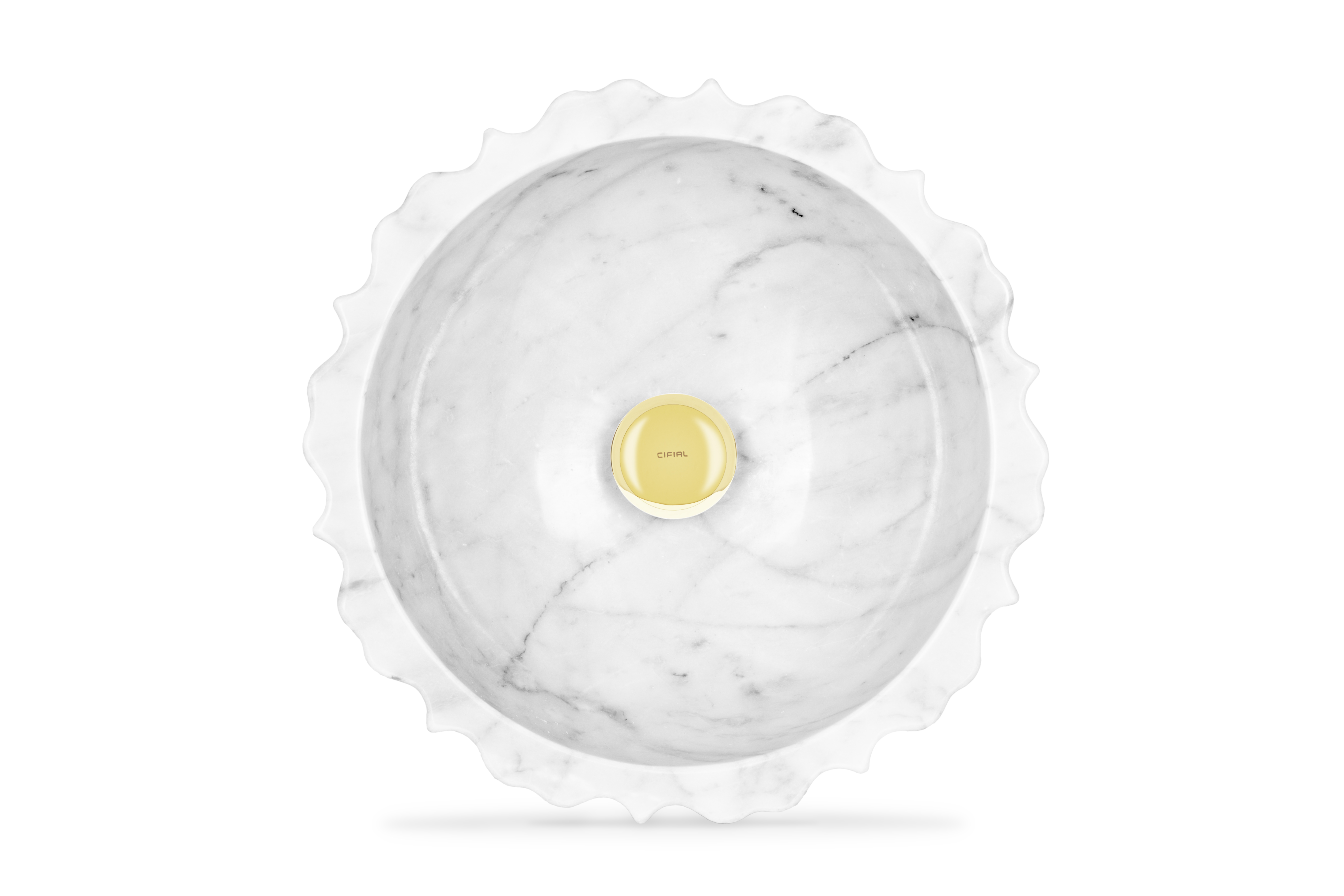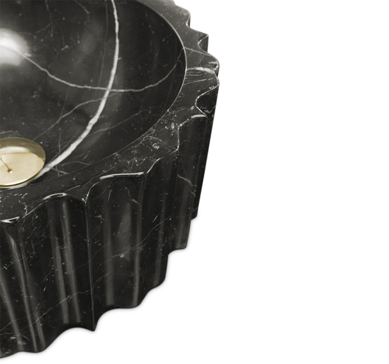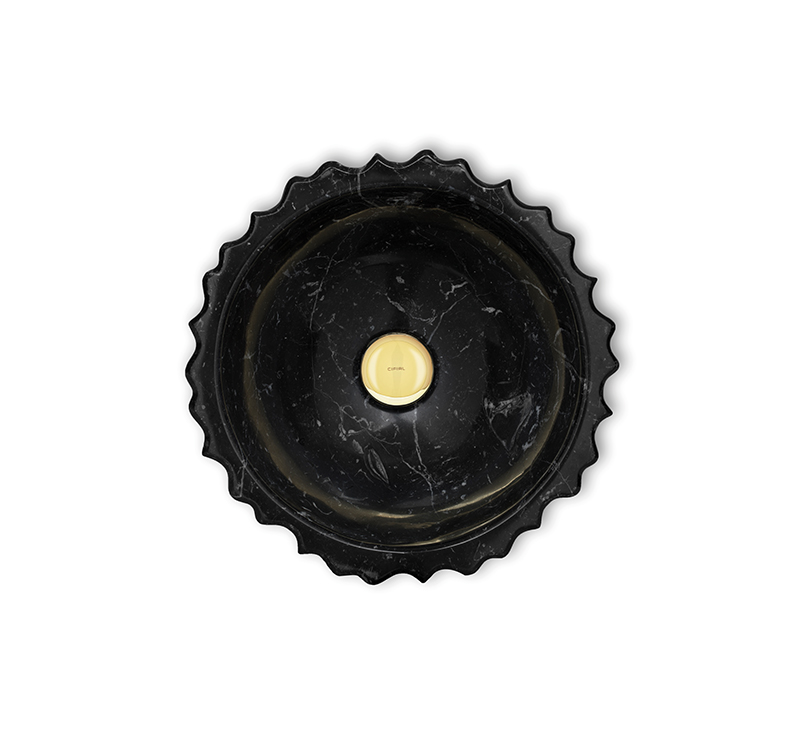 The cogwheel-shaped design of this vessel sink stands out for its contemporary design. Available in three different marbles, you are able to take your bathroom interior design to a completely new level by combining it with endless colors while adding a touch of elegance and mistery to an oasis you wish to build.