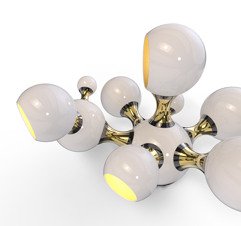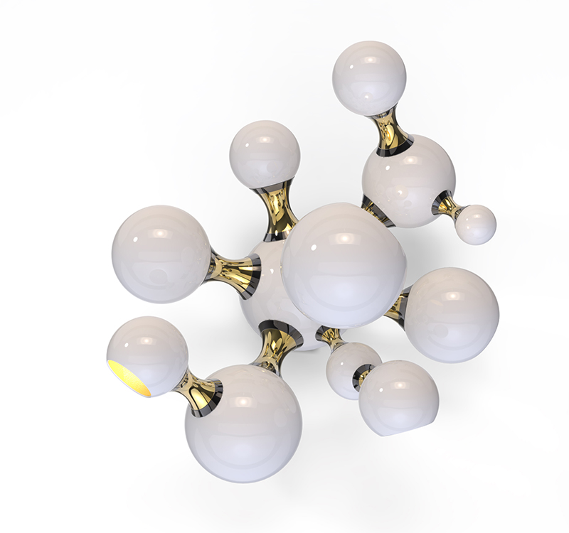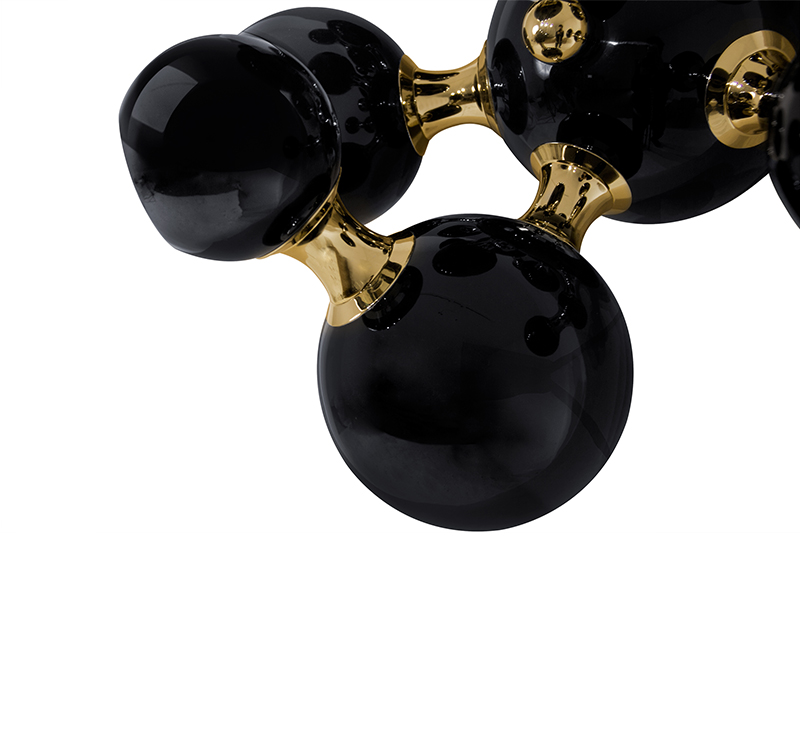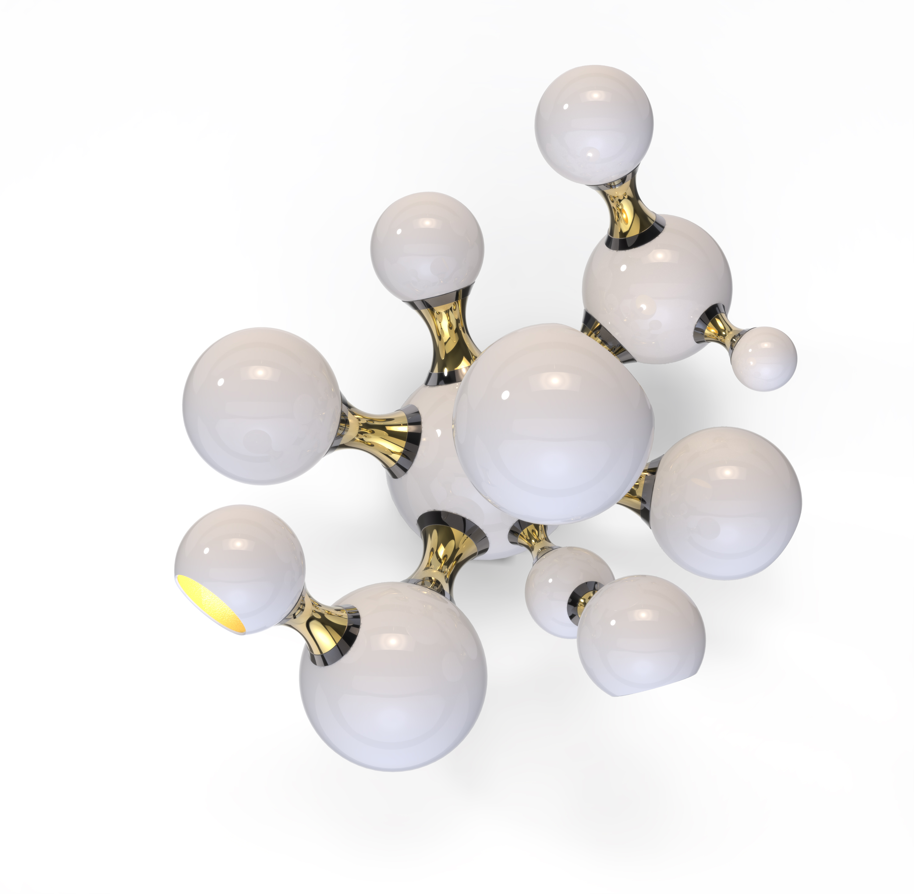 Atomic wall light is a mid-century modern lighting design inspired by the atomic discoveries of the mid-20th century. With multiple round shades that resemble the molecular composition of the atom, this interior wall light can give a fun twist to a contemporary home decor. Its body is handmade in brass and steel, with both a glossy black and a gold-plated finish. The lamp shades feature a glossy black lacquer on the exterior, while gold powder paint is used for the interior shade. It is with a modern vibe that this indoor wall light creates a statement of mid-century modern design in a contemporary living room, displaying each detail as a faithful reproduction of the glamorous 1950s.