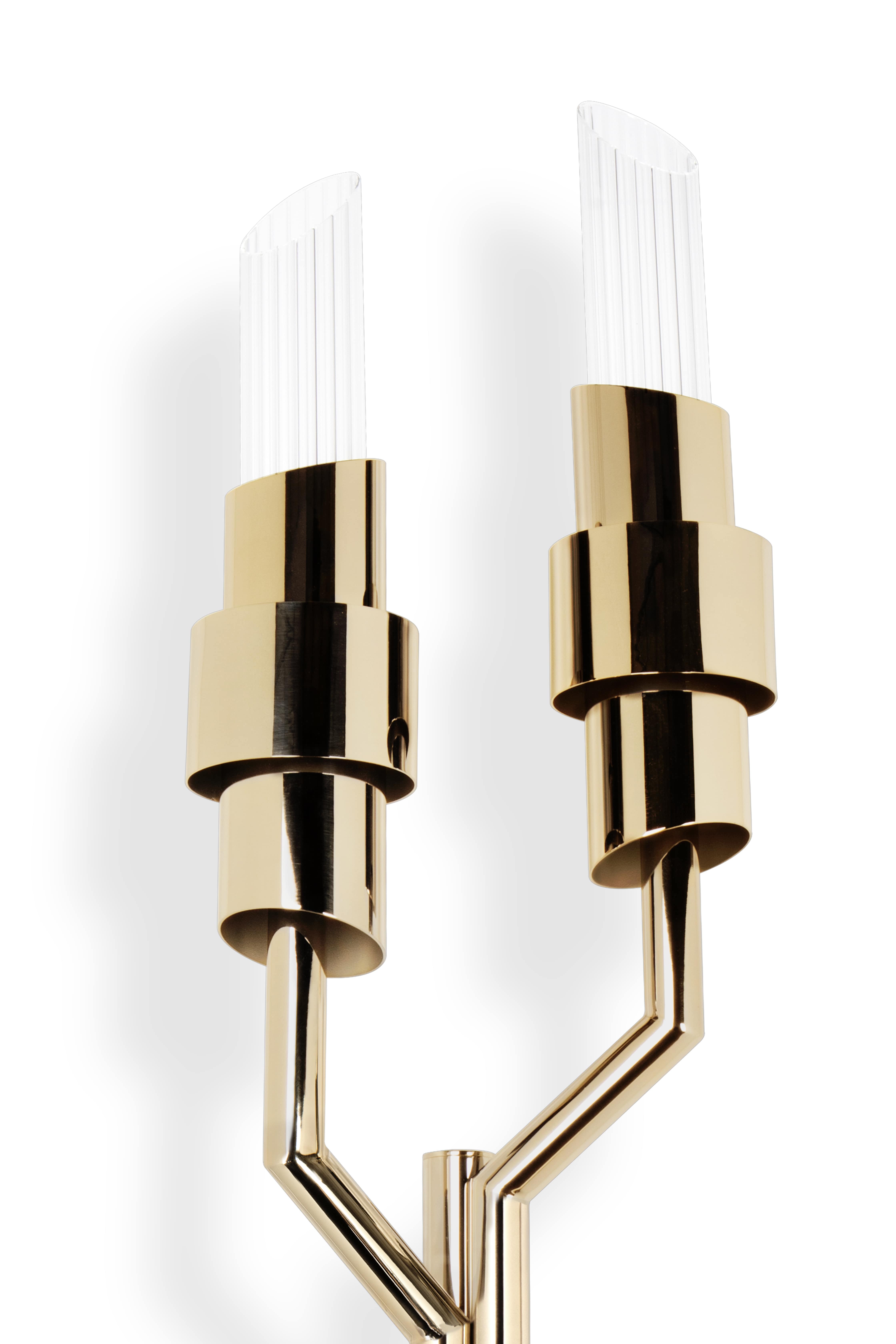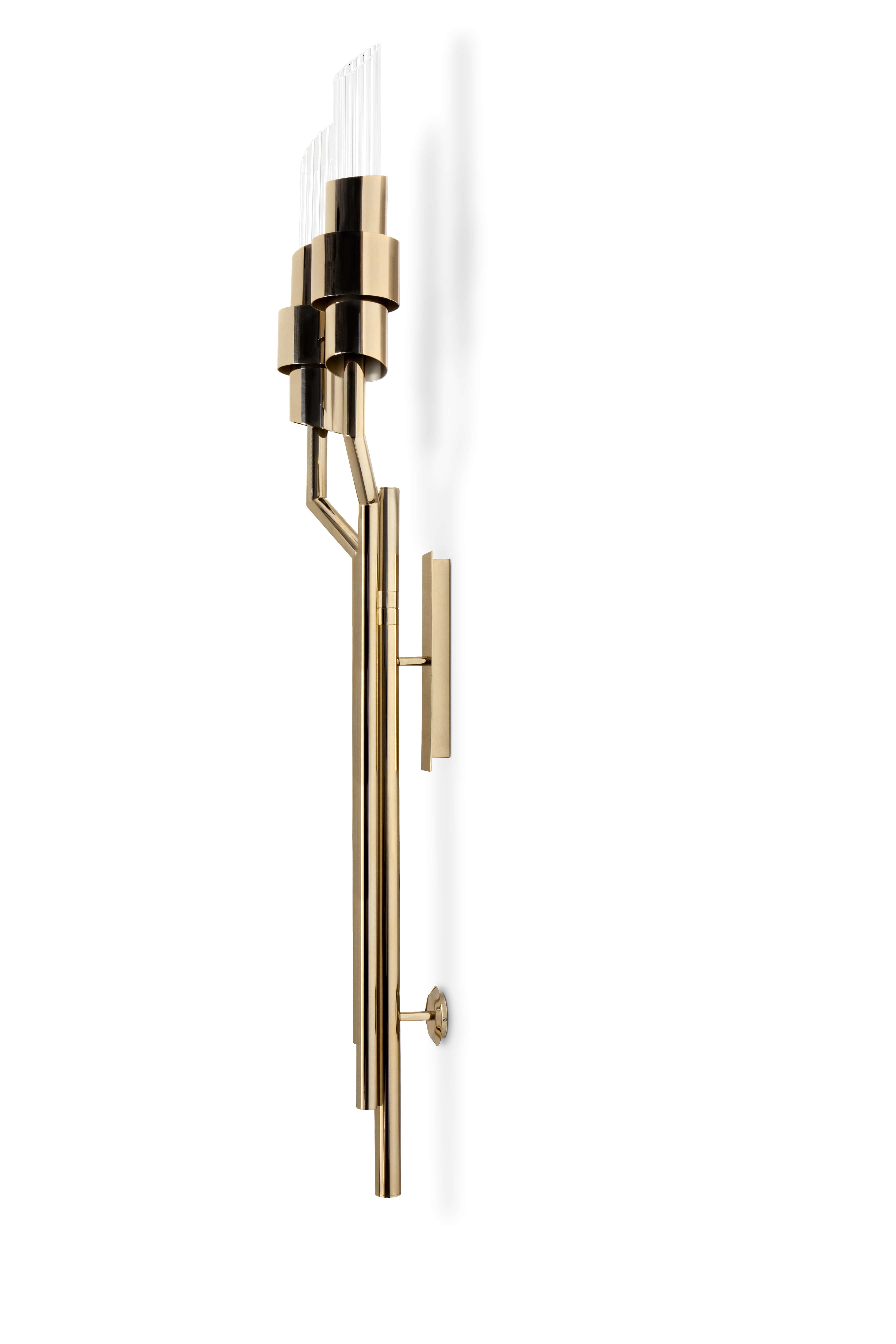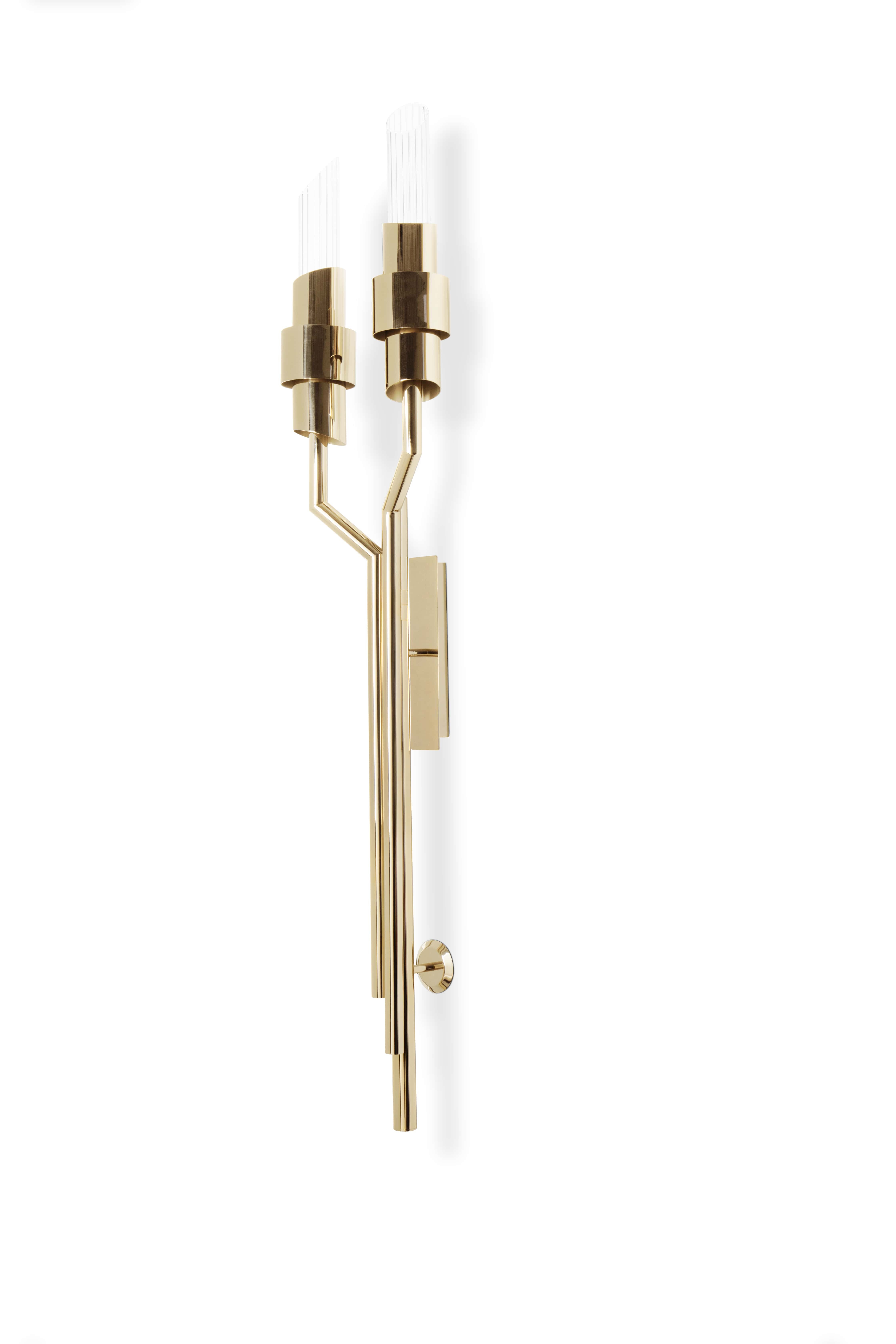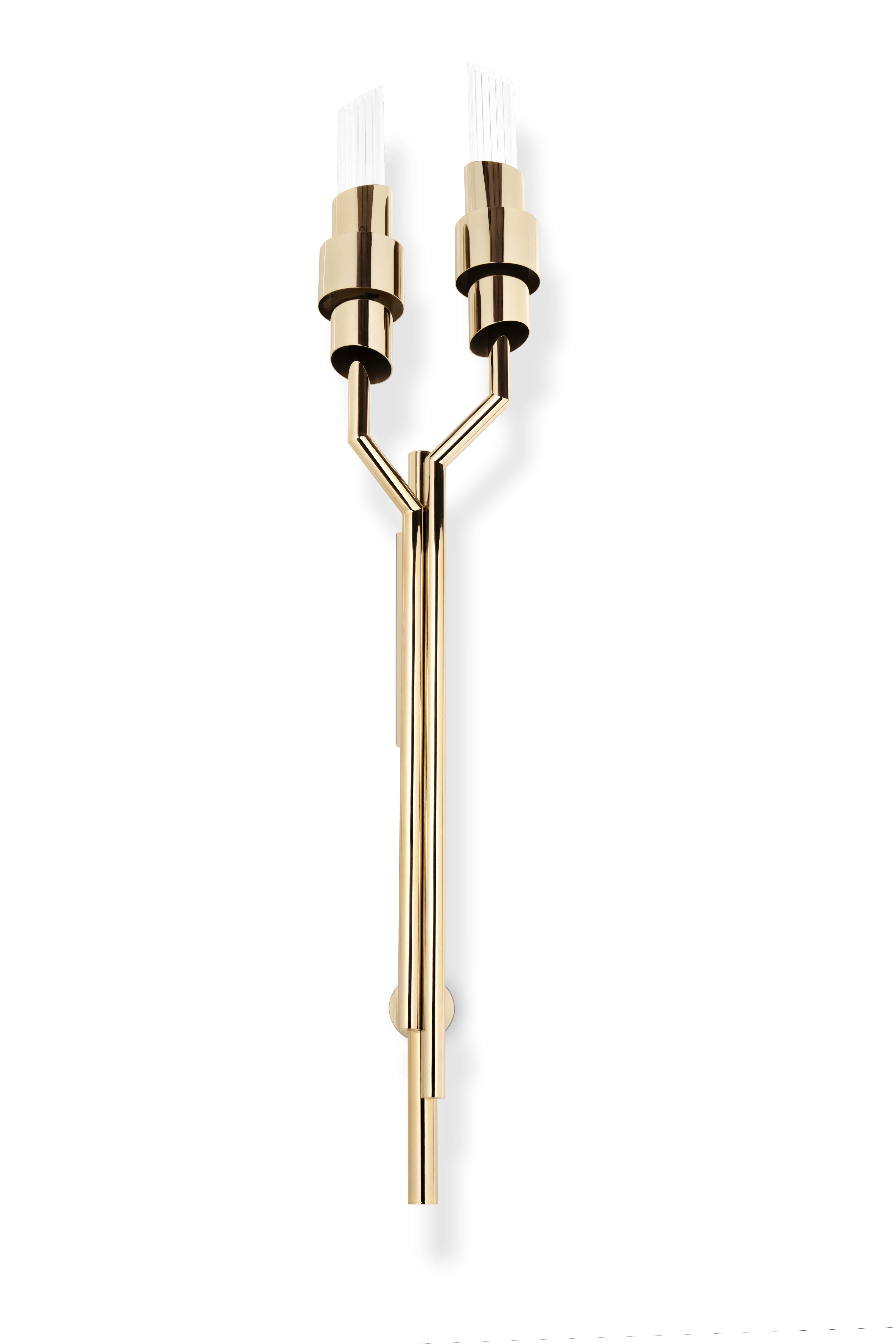 From the classical to the most contemporary ambience, this torch wall version of our Tycho is the epitome of elegance and distinctiveness. A perfect fit for both hospitality and residential projects, the combination of brass and ribbed crystal glass will bring to your project the final twist of medieval charm you were looking for.