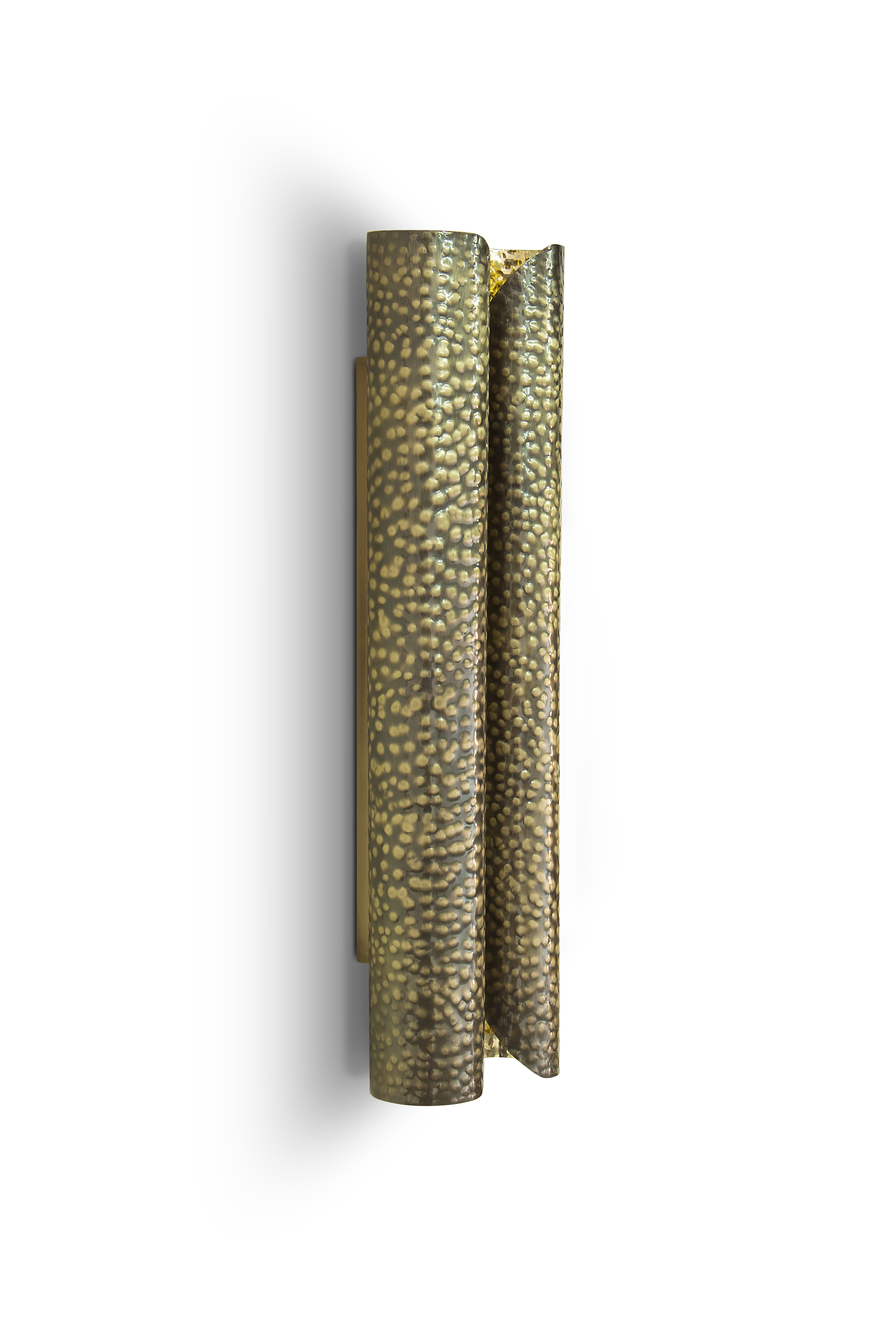 VELLUM is the elegance of nature transformed by the man’s hand. It comes from the ancient manuscripts, where messages were written in VELLUM, a fine and translucent material. VELLUM lighting brings to the bathrooms the warm light of written stories passed through generations. Composed by hammered brass, its elegance exhales the power of resistance through times as the written stories never dies. Every story you create in your bathroom will be written by the warm lighting words of VELLUM, just enjoy all these golden memories.
