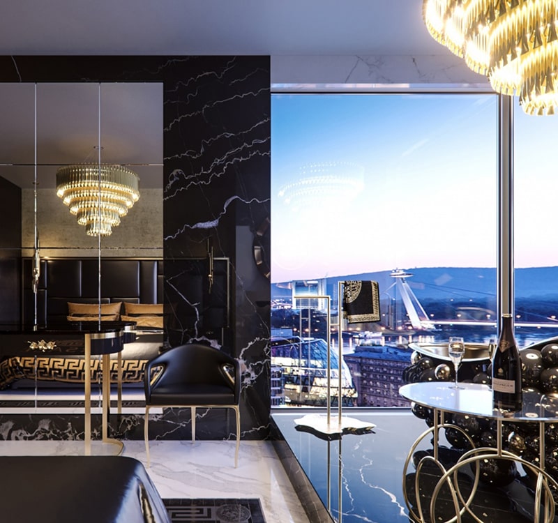 An impressive project made by Justyna Tatys featuring Maison Valentina products. Specially designed for the ZŁOTA 44 Tower in Warsaw, this apartment is made to amaze anyone who is lucky enough to step in it!
