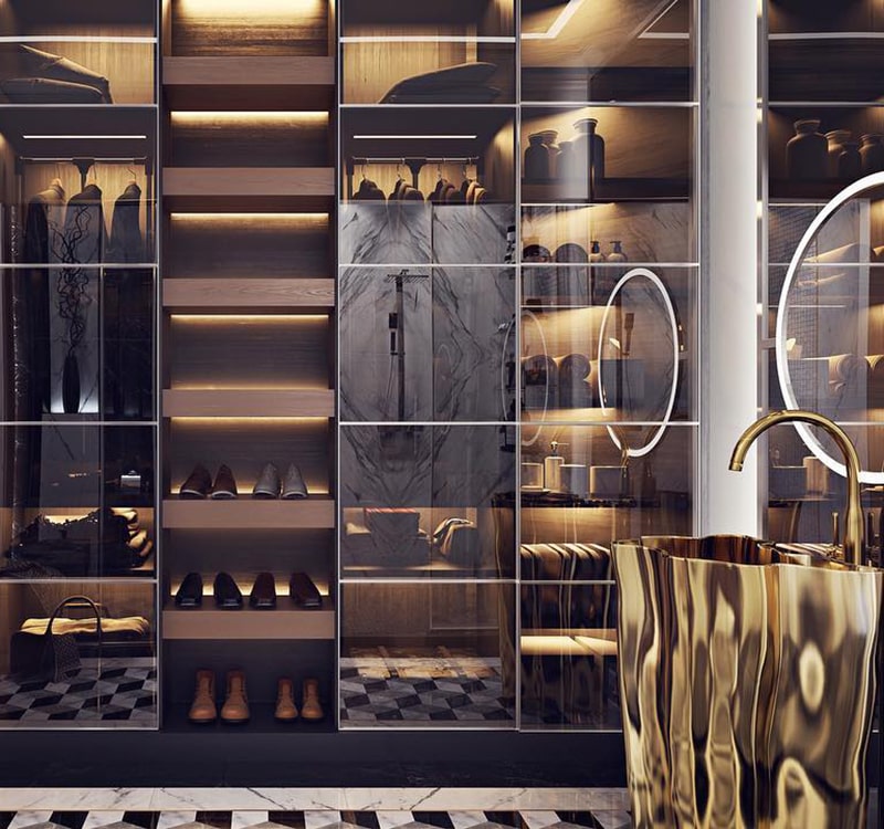 This project made by Philosophy Art Studio mixes the classic in the modern solution design. A master bedroom wardrobe in Prague, Czech Republic, where our Eden Freestanding stands out along with this intelligent use of light!