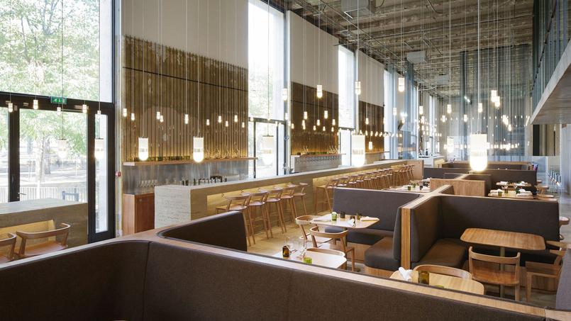 Located in the Palais de Tokyo, in which the Paris architecture firm Lina Ghotmeh designed the glamorous high-ceilinged contemporary dining room at Les Grands Verres. The American chef Preston Miller serves inventive Mediterranean-inspired dishes like a braised chicken shawarma or Berkshire pork shoulder with smoked eggplant and new potatoes.