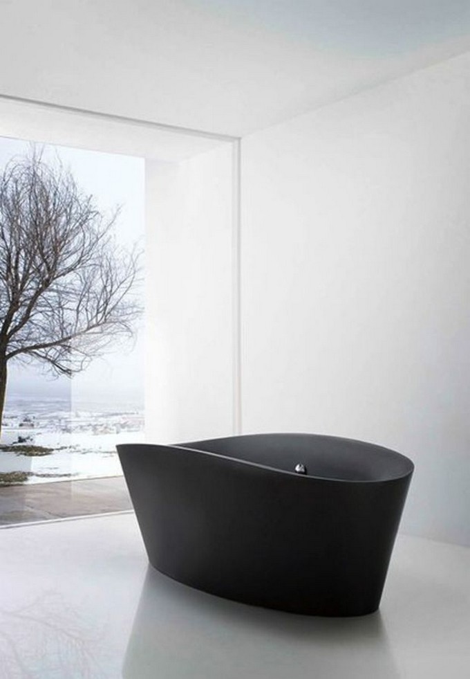 Black is black! Black will always be a modern and sophisticated color for every room in your home and a special color to give a luxury touch! Elegant and astonishing the dark color is a perfect way to go if you want to remodel your bathroom and gives a special luxury touch! With a black bathtub on the focus point, every bathroom goes to the next level of luxury!