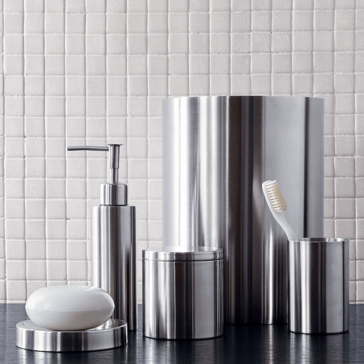 Coordinate your bathroom accessories, and be sure to purchase essentials such as a soap dispenser, a small trash can, a toothbrush cup, and a soap dish.