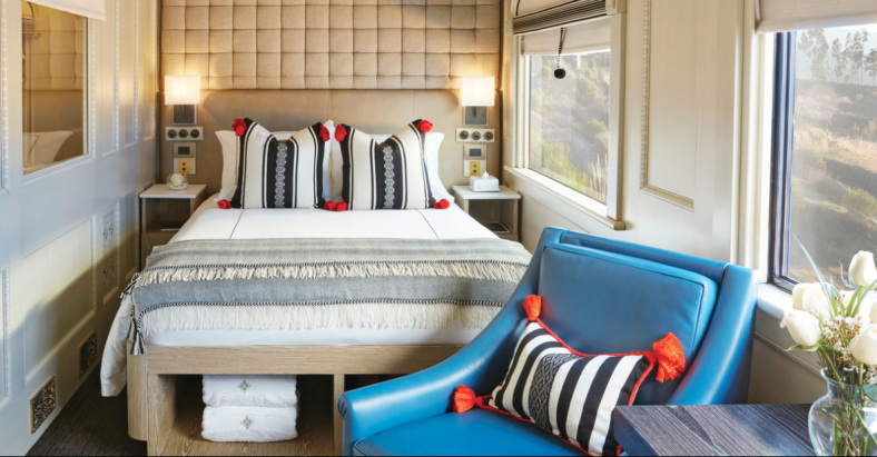 The train has four different styles of cabins, and all of them come with their own en-suite bathroom and shower.