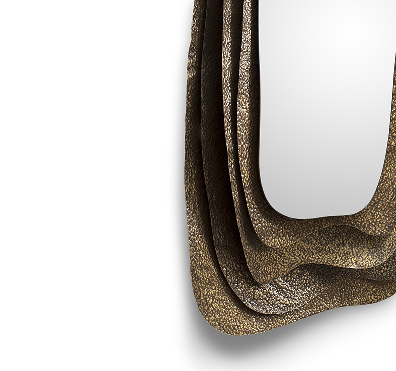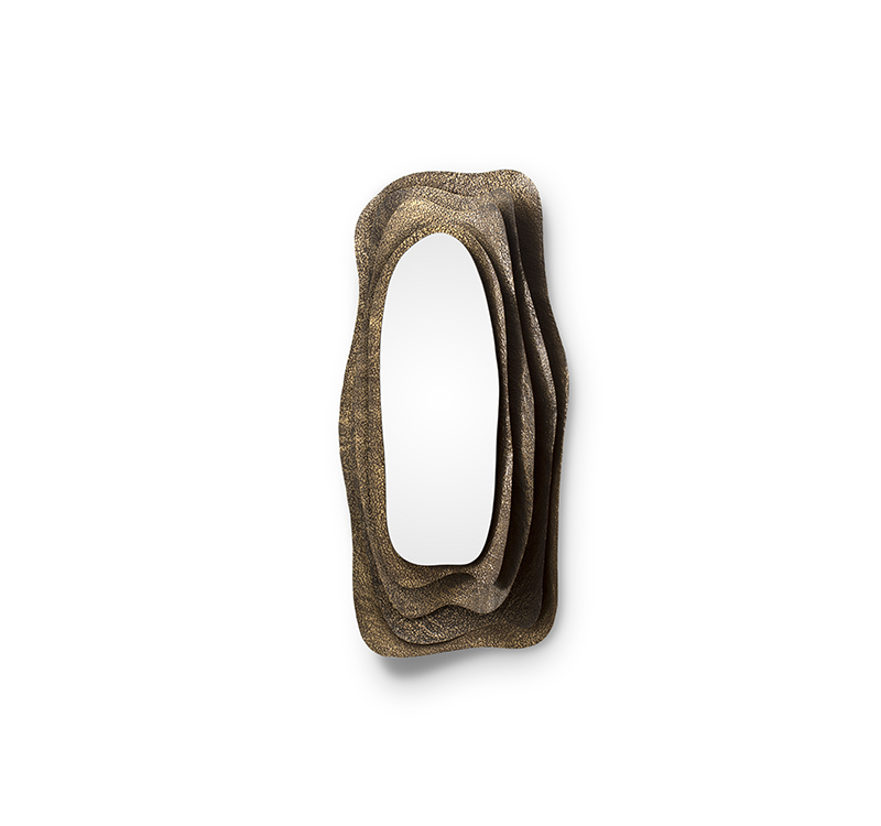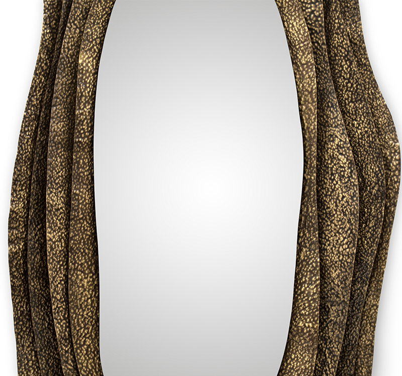 With origins in Japan, Kumi is an oyster with undeniable beauty. Kumi Mirror pays tribute to its allure through its glossy hammered aged brass, proving functionality and beauty can perfectly coexist. This decorative wall mirror is a treasure coveted by many and the most amazing and unique item to improve your home bathroom design.