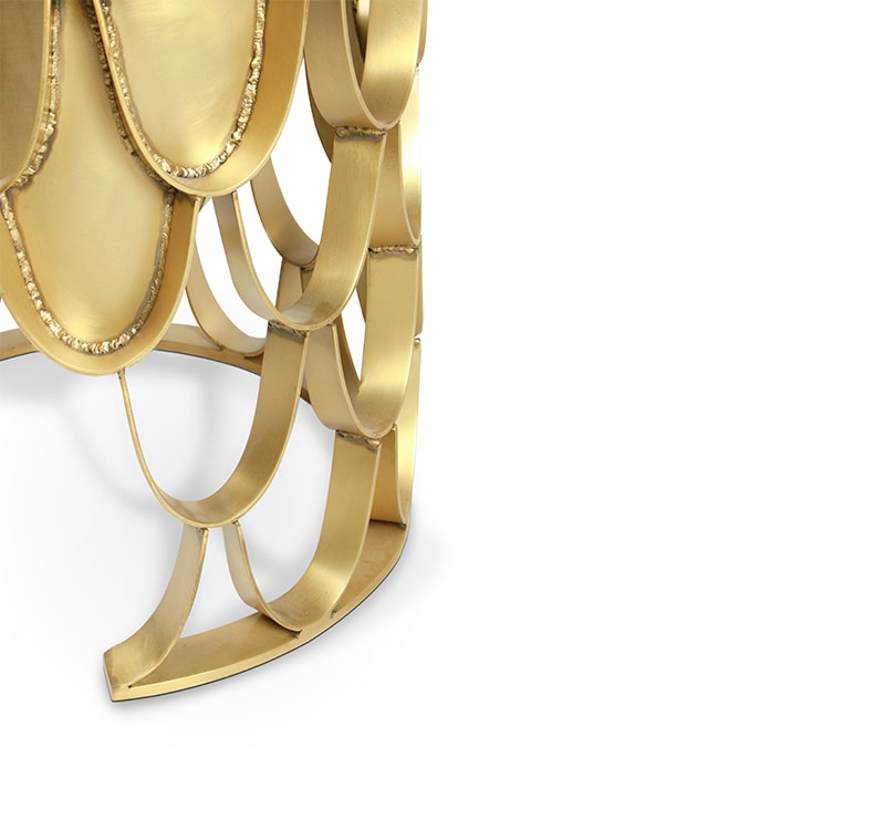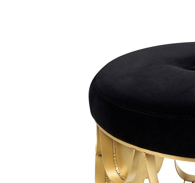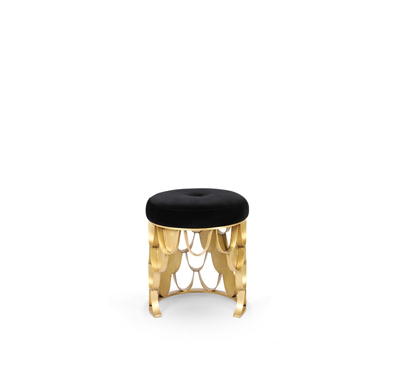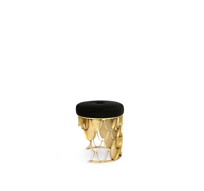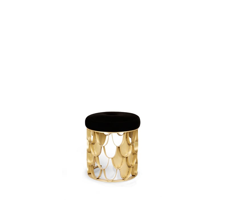 Koi carp is a recurring symbol of Japanese culture. Its natural color mutations reveal their capacity to adapt, just like the Koi upholstered stool which fits in any modern bathroom decor. The Koi scales from the sides of the upholstered stool shine and reflect the sun on its brass surface. This amazing item is truly a great expression of beauty in design.