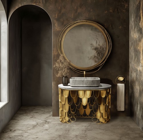 Inspired in the Japanese carp, this piece shines for its golden look and contemporaneous design.