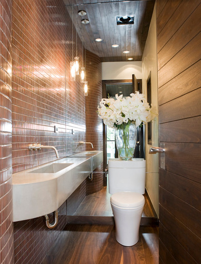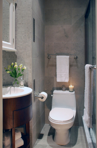Maison Valentina has been in some small bathrooms — you know, the kind that make you feel like you have to lose 5 pounds to enter them. But I really like working on this type of bathroom design. Trying to make everything fit in the available space is like doing a giant crossword puzzle.