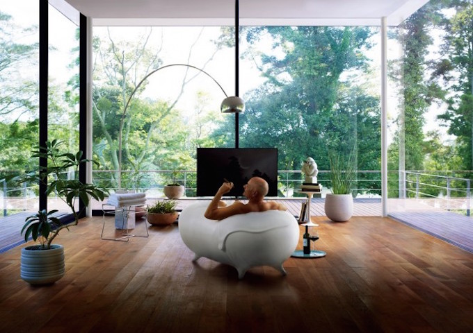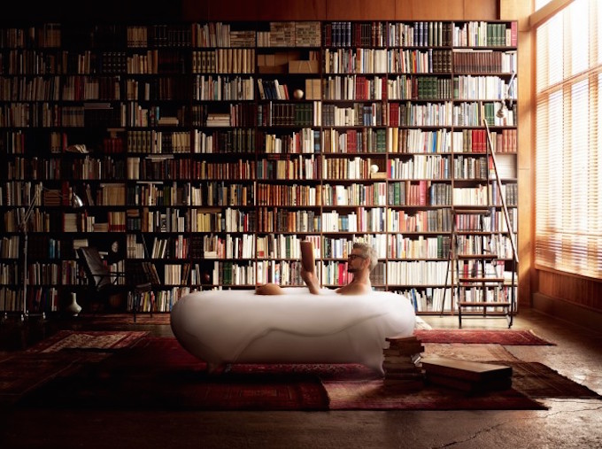 The concept of bringing the bathtub out into the open once more, or situating it within unexpected surroundings is back at the forefront, with bubble baths taking place in the middle of a home library. This is a nice quiet place to have a bath time read though we’re not sure the moisture from the steam would do your prized book collection much good.