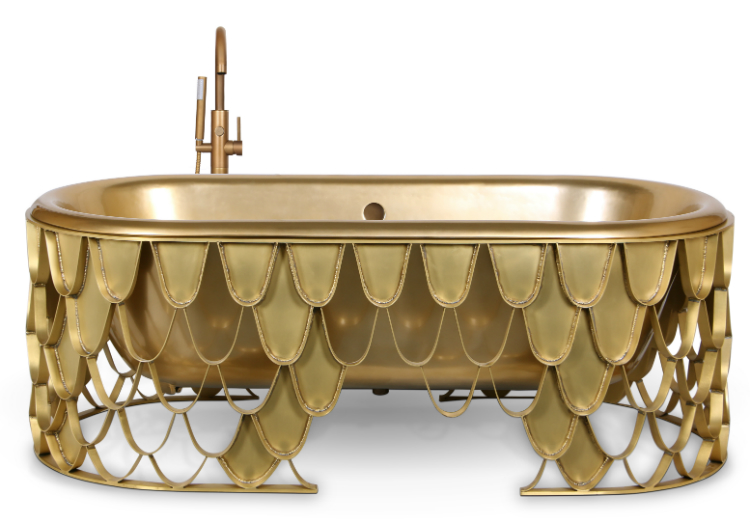 KOI carp is a recurring symbol of Japanese culture, highly appreciated by its decorative purposes, not only in water gardens but also in Irezumi practice or, most commonly, in tattoos. Its natural colour mutations reveal their capacity to adapt, just like the KOI bathtub that you can use to create a better sense of space division in your ambiences. The KOI scales that compose the panels of the bathtub shine and reflect – on its brass surface – the sun caught throughout the clear water. KOI and the Japanese word for love or affection are homophones, making the carp also a symbol of love and friendship.
