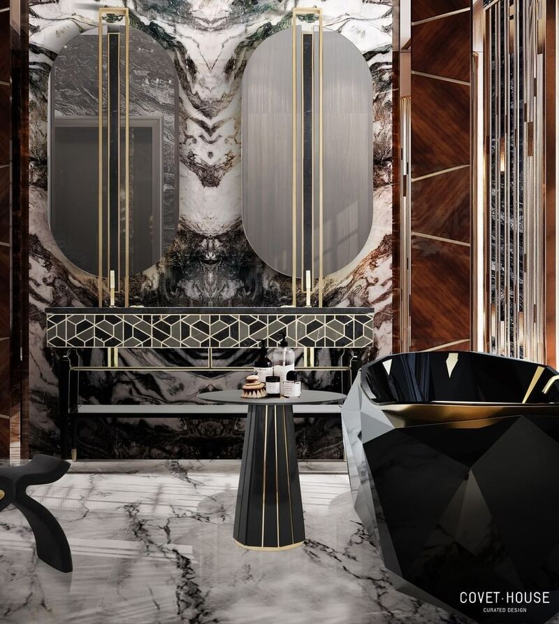 How can a bathroom be a perfect example of luxurious glamour? Well, this bathroom proves that with the best moody lighting, golden details and intense designs that are unique, one can truly ascend the bathroom to perfection.