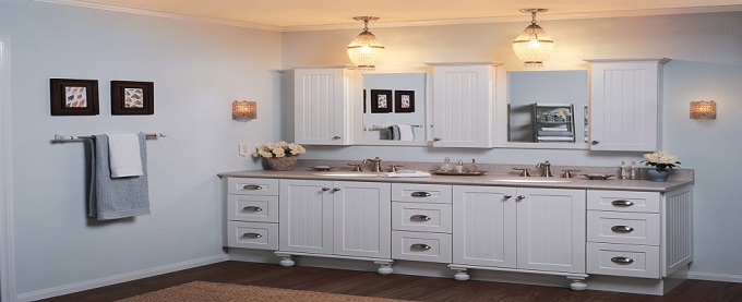 Beadboard, again, provides an only partial covering for the wall. But beadboard can be painted with semi-gloss or glossy paint, which thoroughly protects the lower parts of the walls against moisture. You can buy panels of beadboard that are eight feet long and four feet wide (panels are installed lengthwise – so the beadboard will come up 48″). Beadboard gives your bathroom a more traditional look.